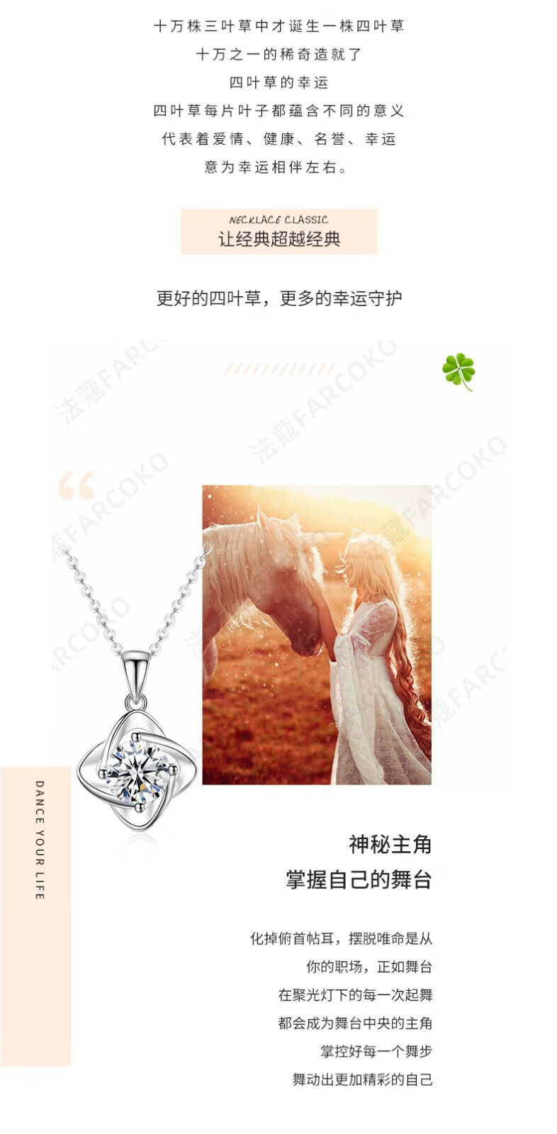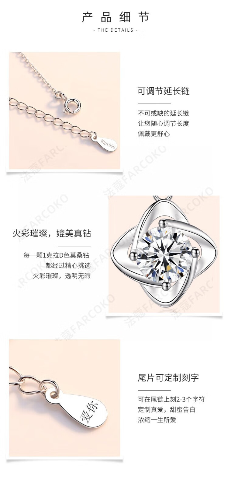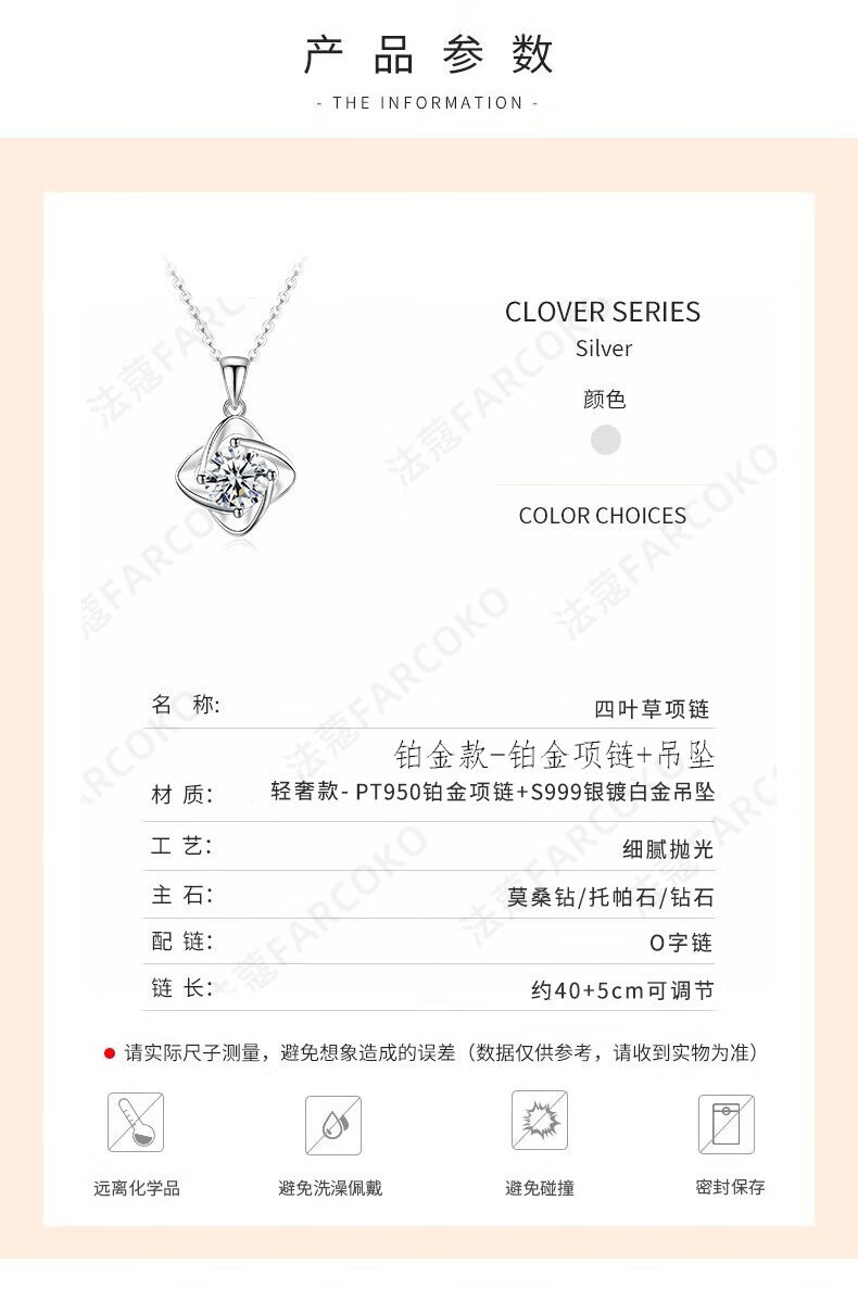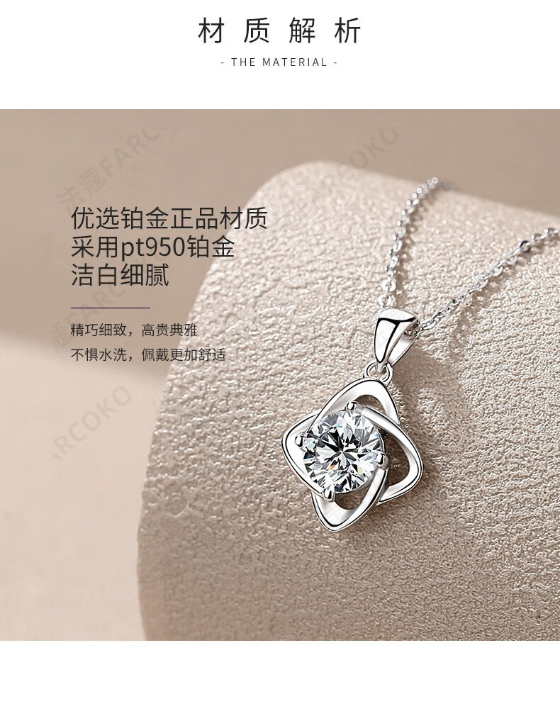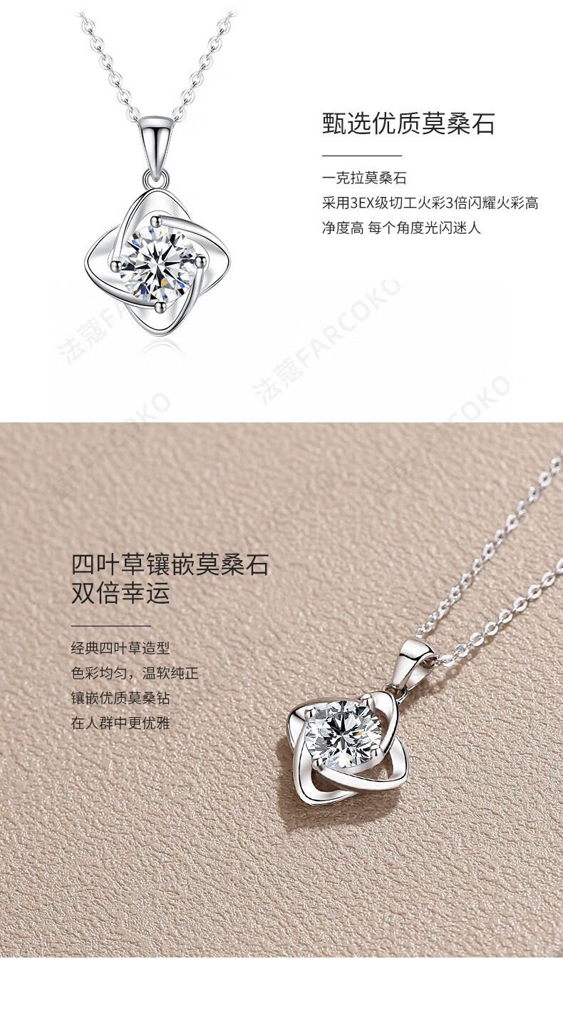 Farcoko pt950 platinum four-leaf clover necklace, feminine and simple clavicle chain, Christmas, Valentine's Day, birthday gift for girlfriend, PT950 platinum necklace + set with one carat moissanite