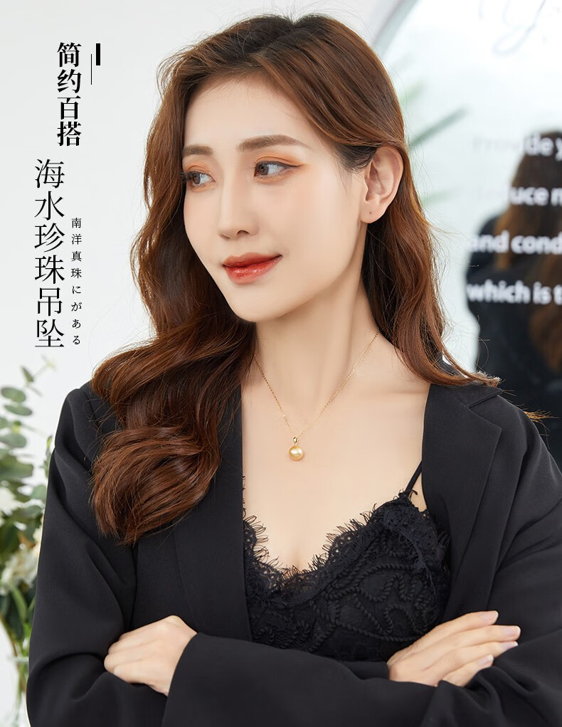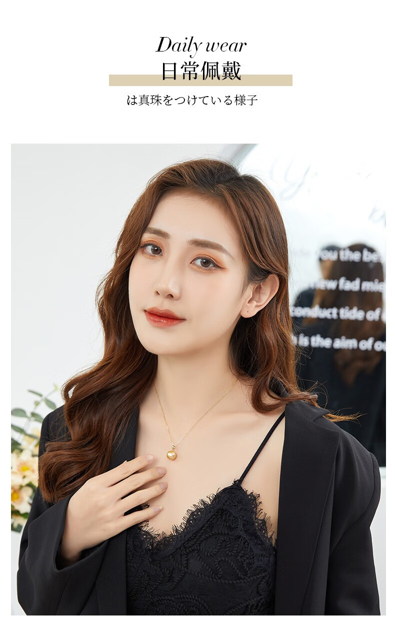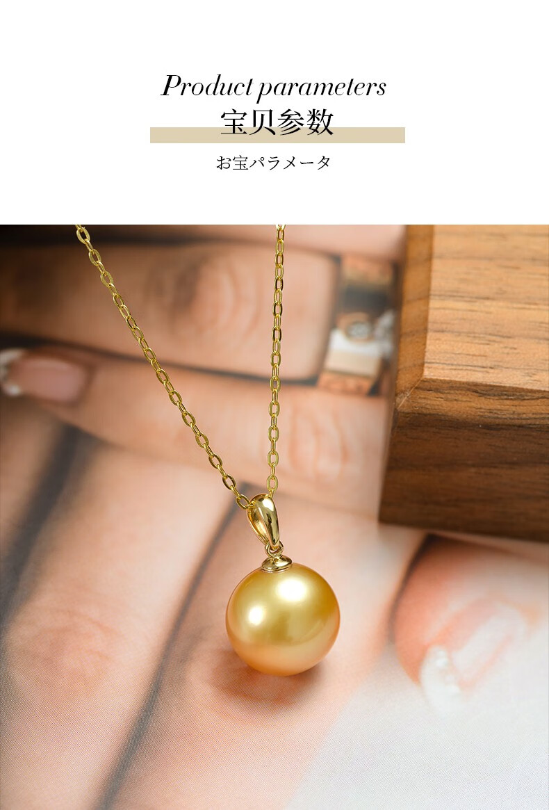 WEIYAN South Sea Gold Pearl Pendant, Round 18K Gold Seawater Pearl Pendant, Single Women's Pearl Necklace, Gift for Wife, Thickened Gold Holder, S925 Silver O-shaped Chain, 14-15mm
