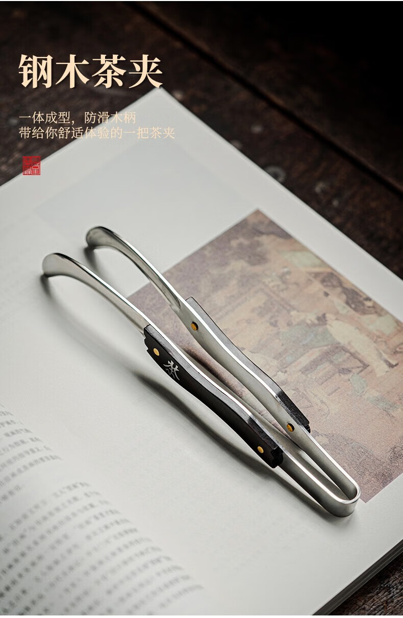 Tang Feng Practical Cup Clip Home Stainless Steel Solid Wood Cup Washing Tea Clip Kung Fu Tea Drinking Tool Tea Tweezers 2025 New Zen Tea Cup Clip ()