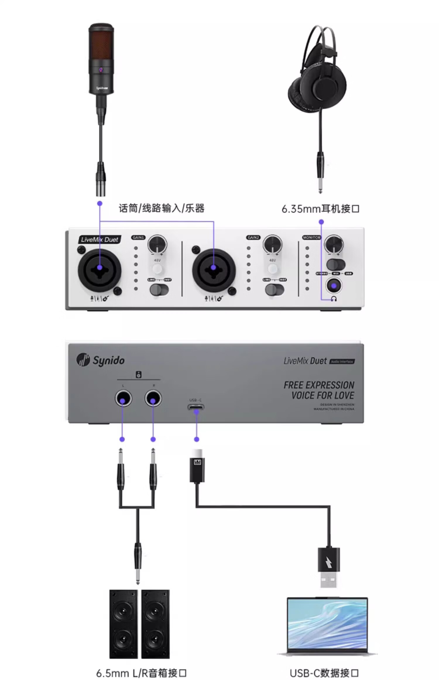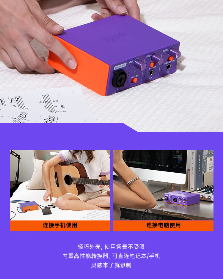Synido forest island mobile phone tablet professional recording sound card LiveMix Solo arrangement dubbing audiobook recording USB interface external standard early adopter-Peninsula Silver Box entry-level recording sound card