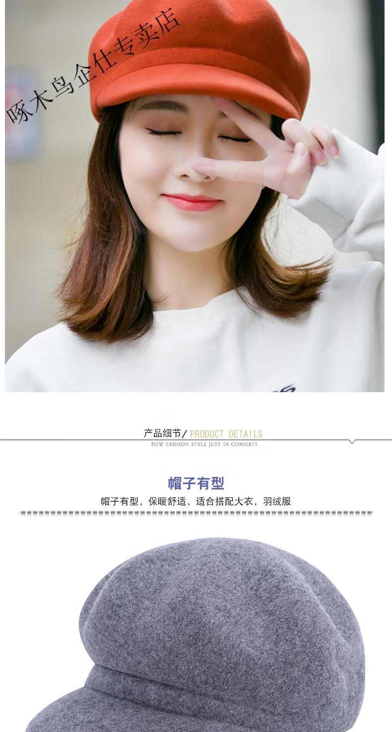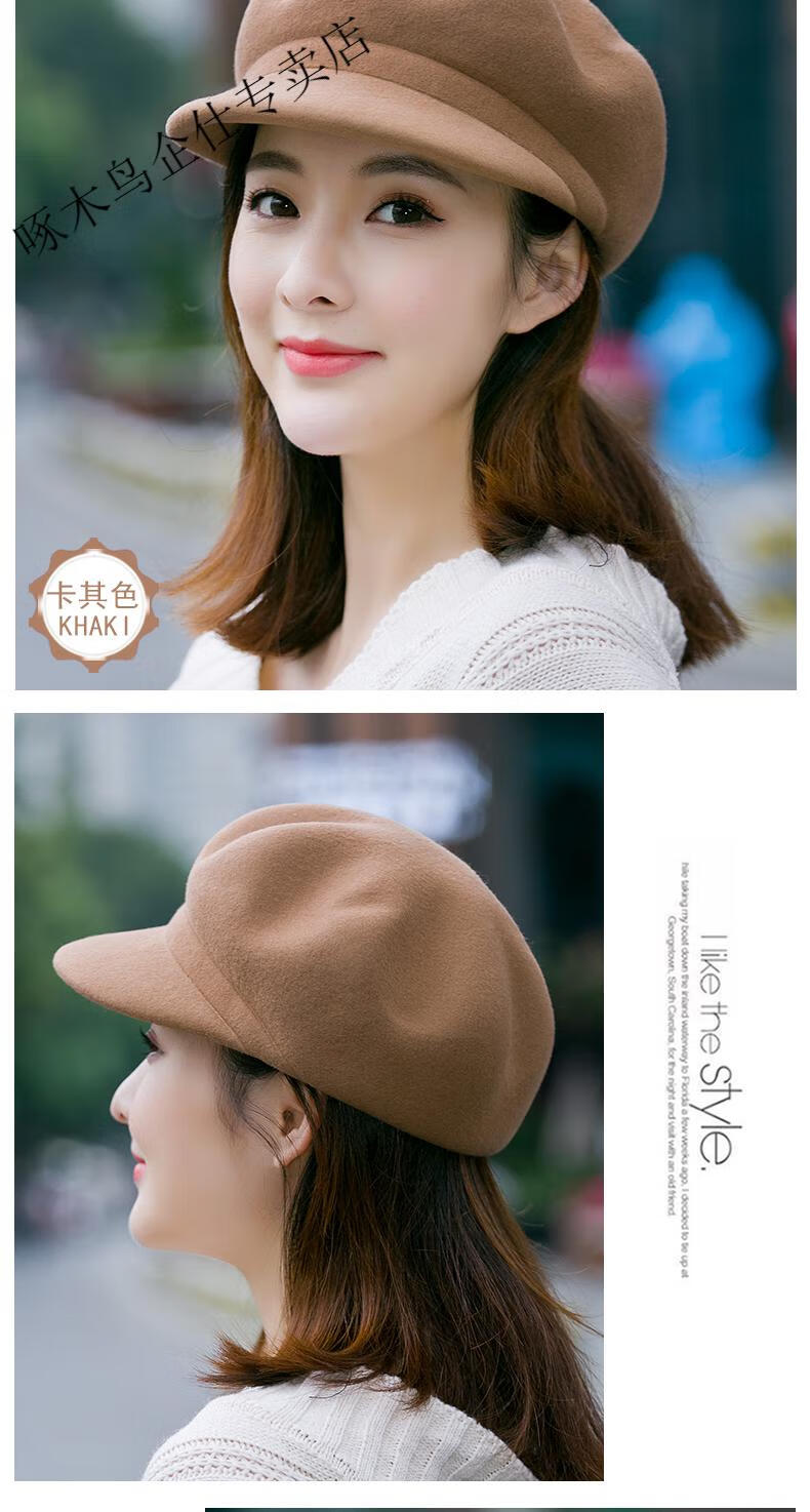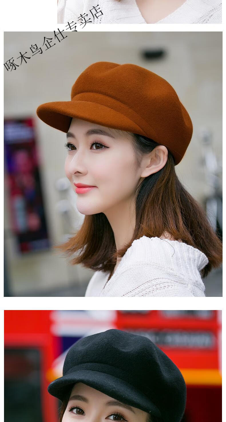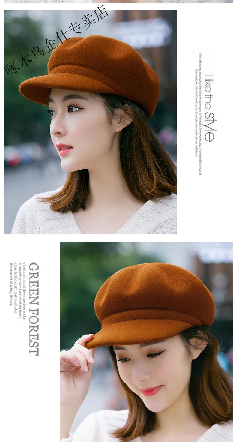 Woodpecker Hat Women's Korean Style Autumn and Winter Woolen Beret British Style Fashion Versatile Duck Bill Octagon Hat Caramel Color M Adjustable (54-59c)