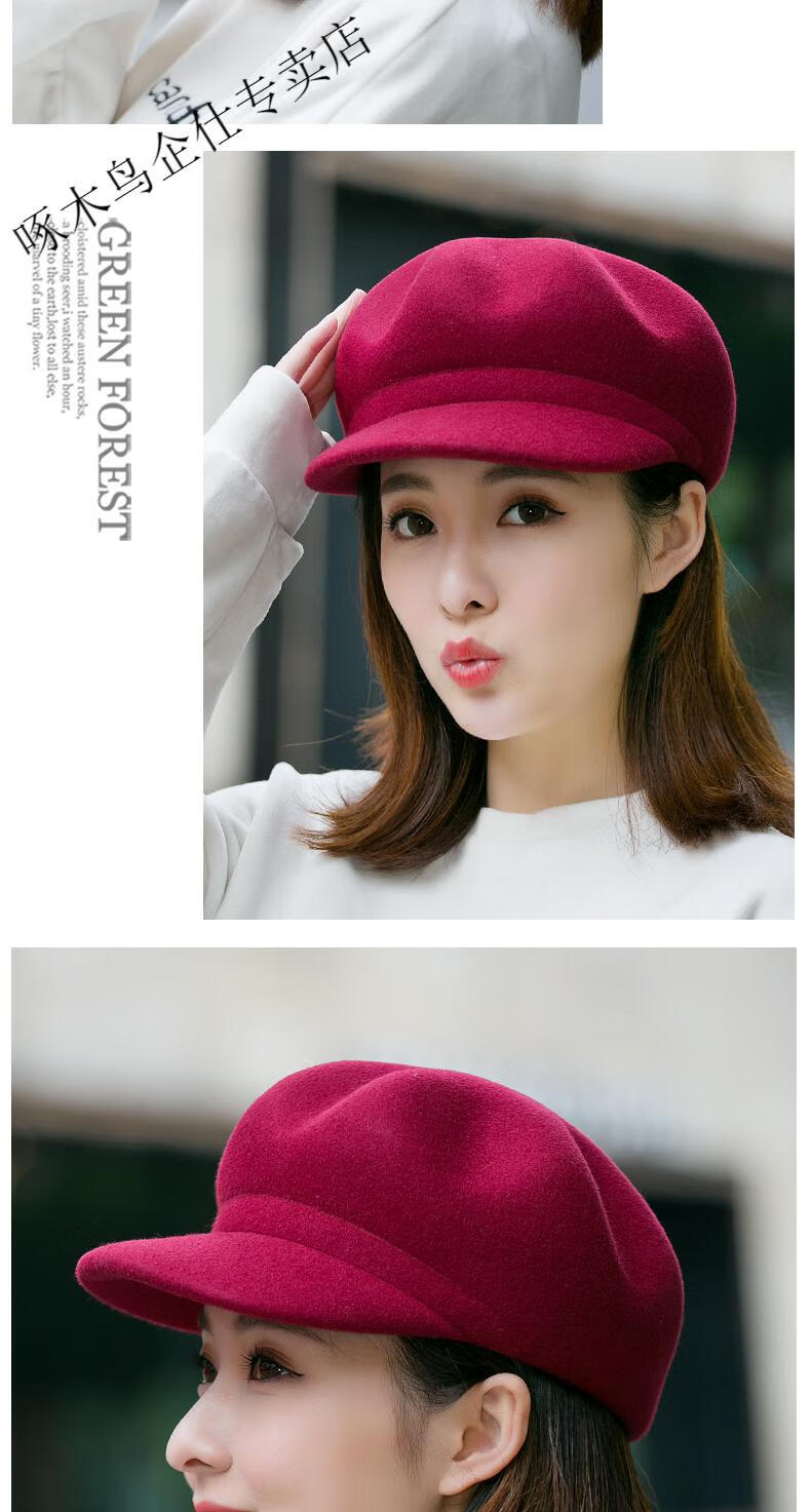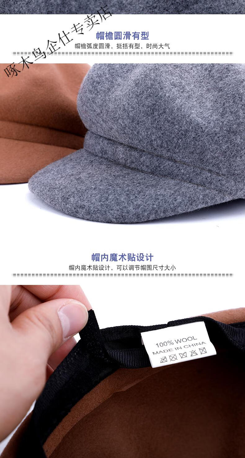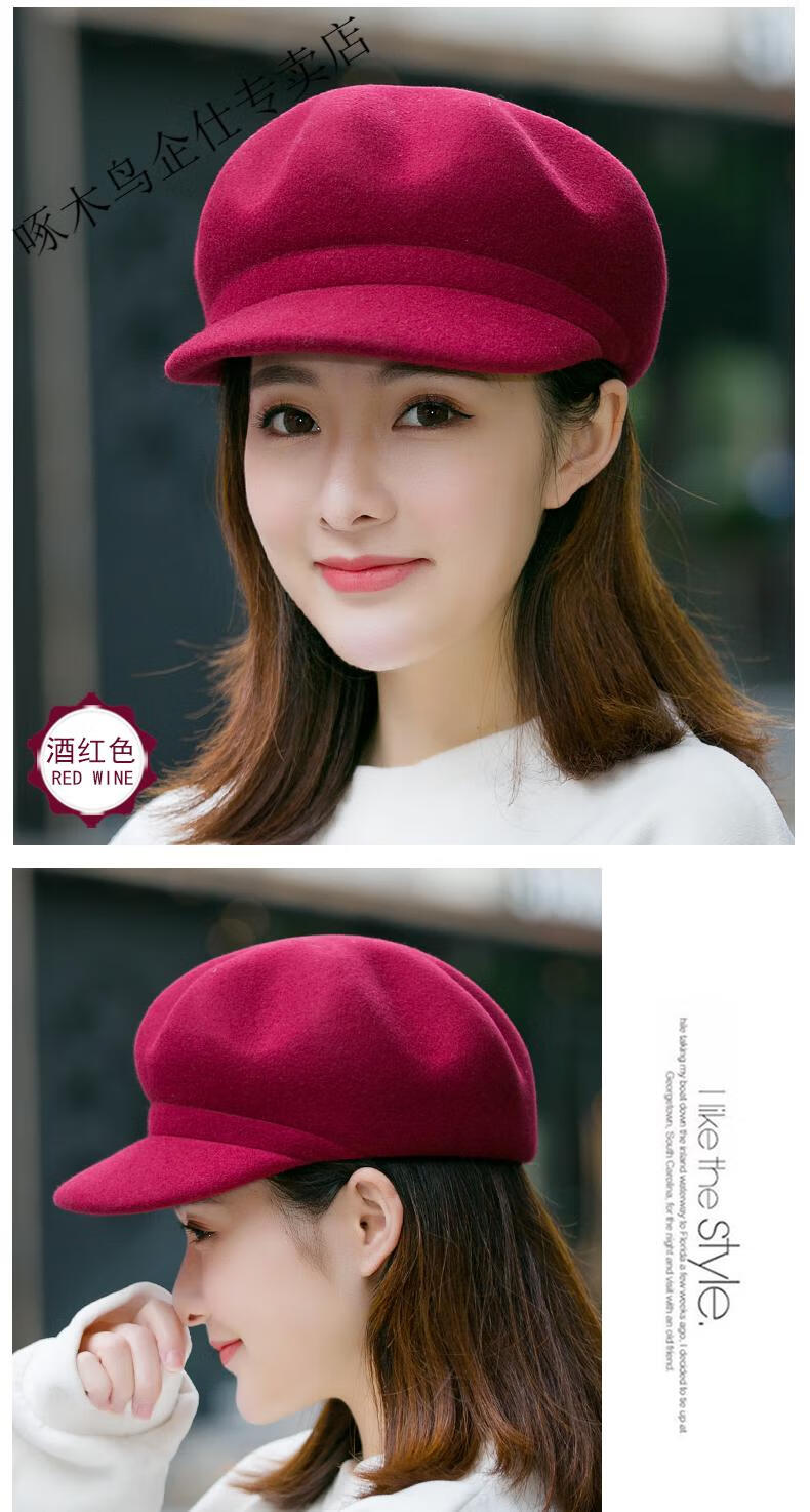 Woodpecker Hat Women's Korean Style Autumn and Winter Woolen Beret British Style Fashion Versatile Duck Bill Octagon Hat Caramel Color M Adjustable (54-59c)