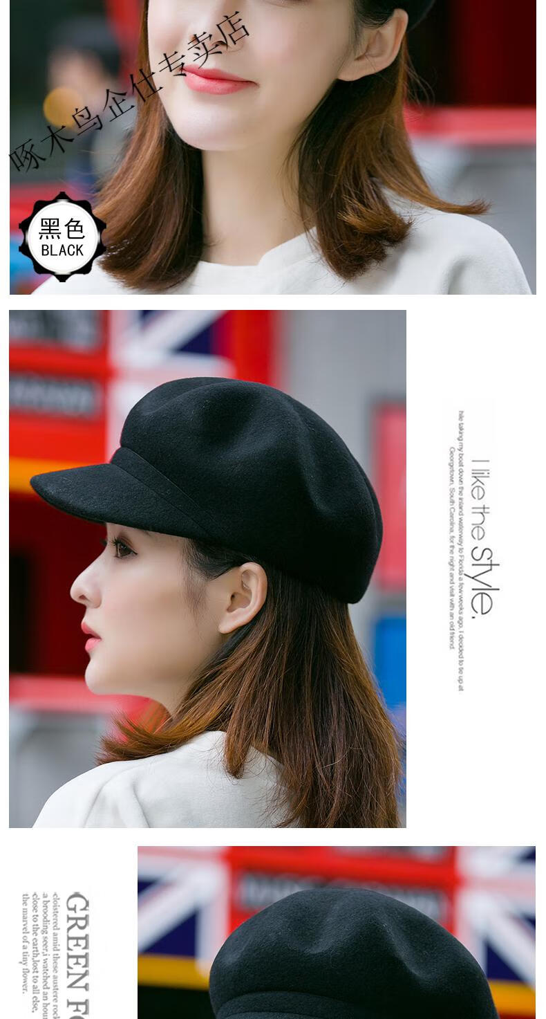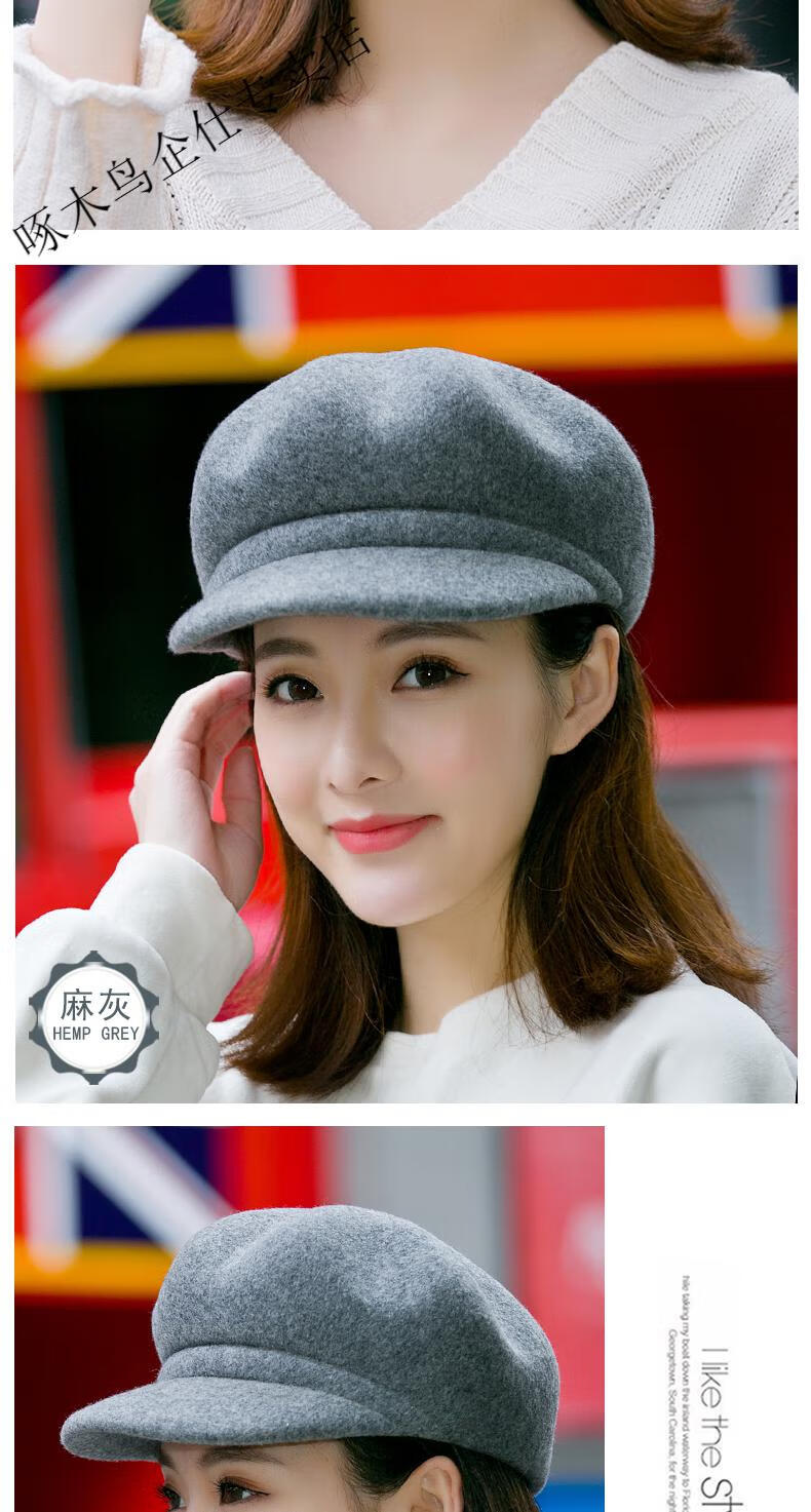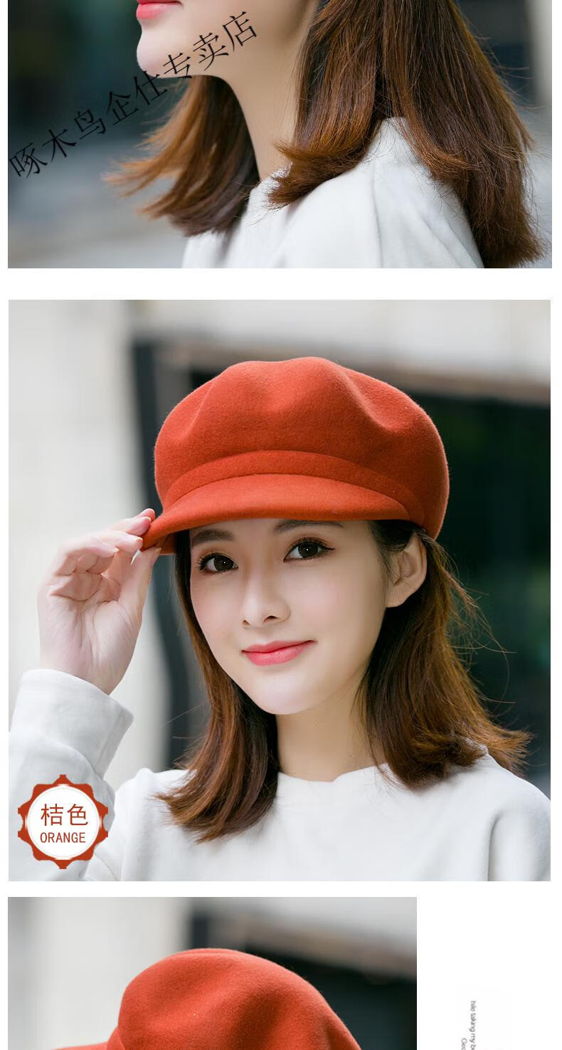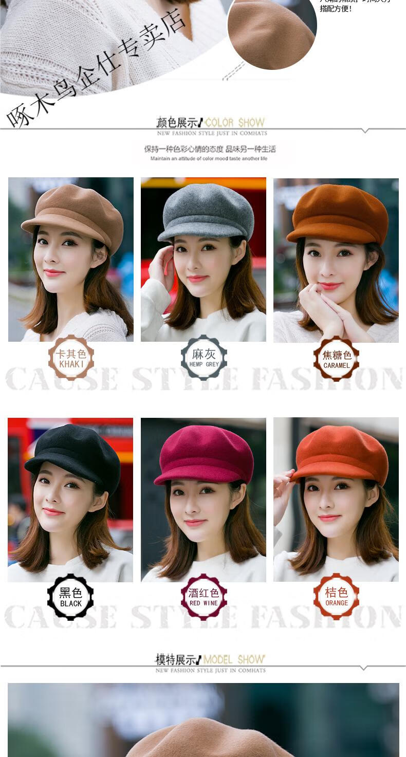 Woodpecker Hat Women's Korean Style Autumn and Winter Woolen Beret British Style Fashion Versatile Duck Bill Octagon Hat Caramel Color M Adjustable (54-59c)