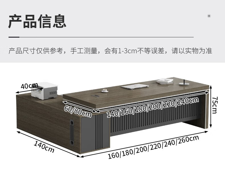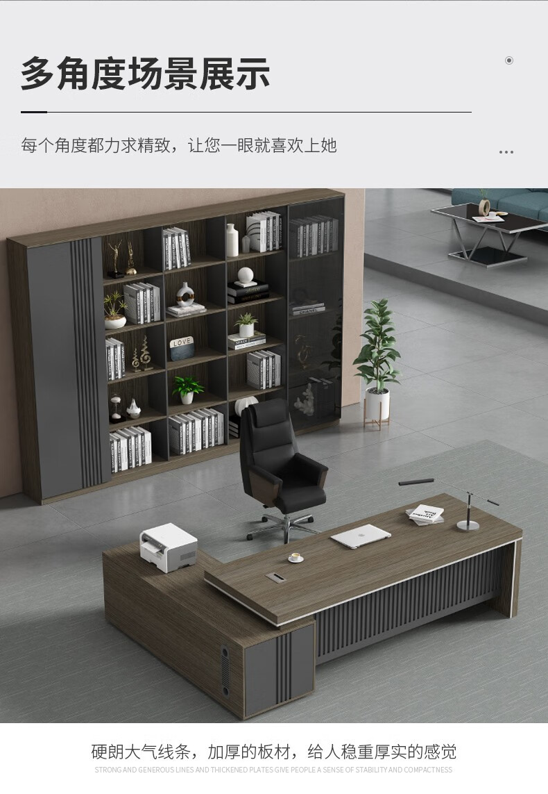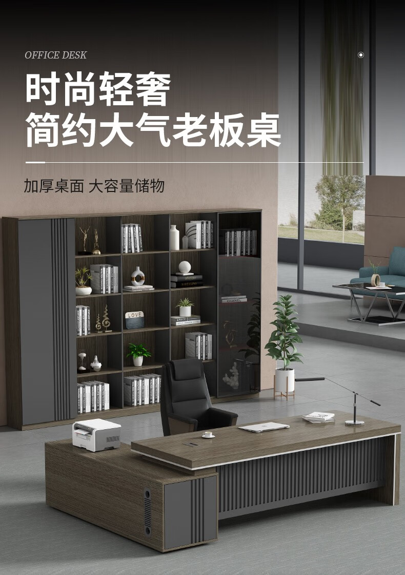 Zimulin simple modern office desk and chair combination boss desk elegant desk manager supervisor computer desk single desk desk total length 1.6 meters gray oak color