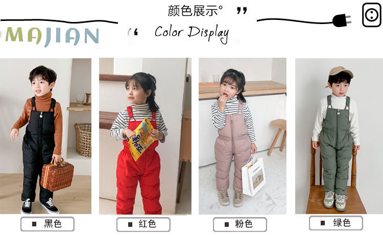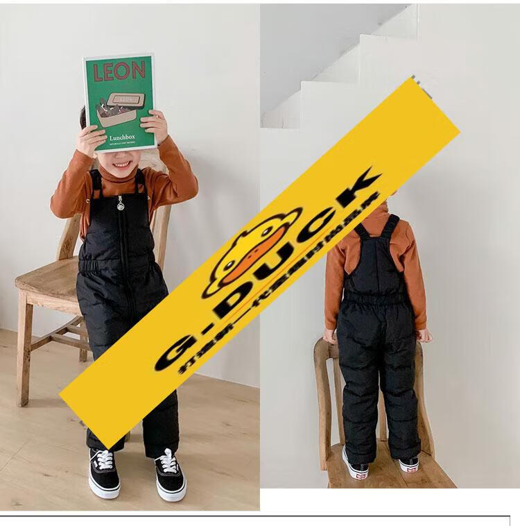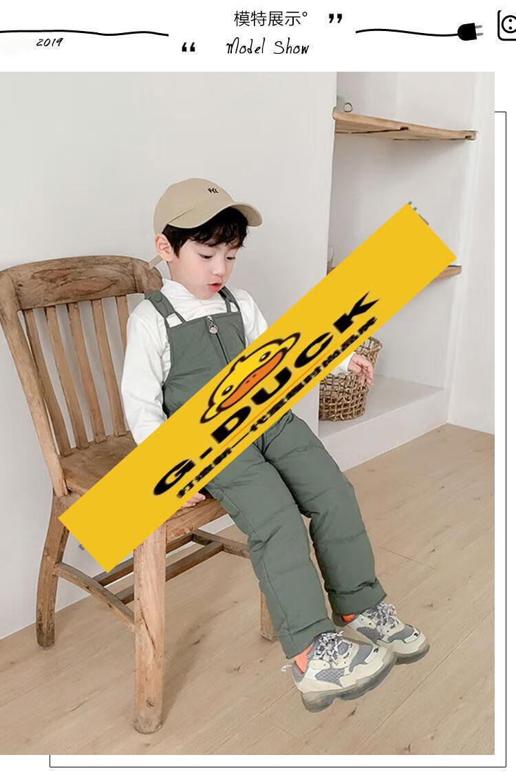 G.DUCKKIDS children's down cotton overalls baby thickened cotton pants baby winter pants boys and girls outer wear crotch pants black 90 cm