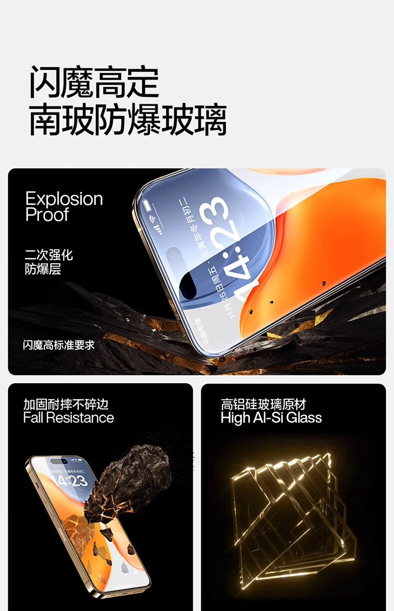 Flashmox is suitable for Apple 14promax tempered film, iPhone 14promax mobile phone film, dust-free chamber, full-screen, high-definition, explosion-proof, anti-fingerprint, dust-free diamond film set of two, 14promax super smooth feel dust-proof film, can be applied in one second