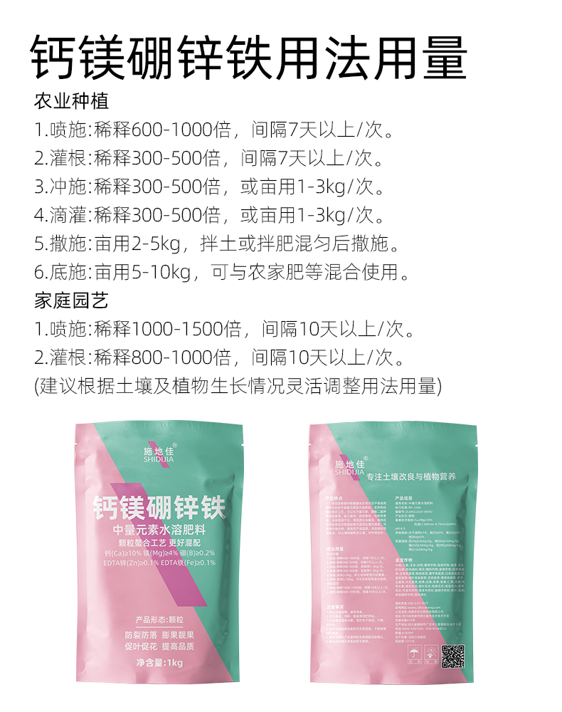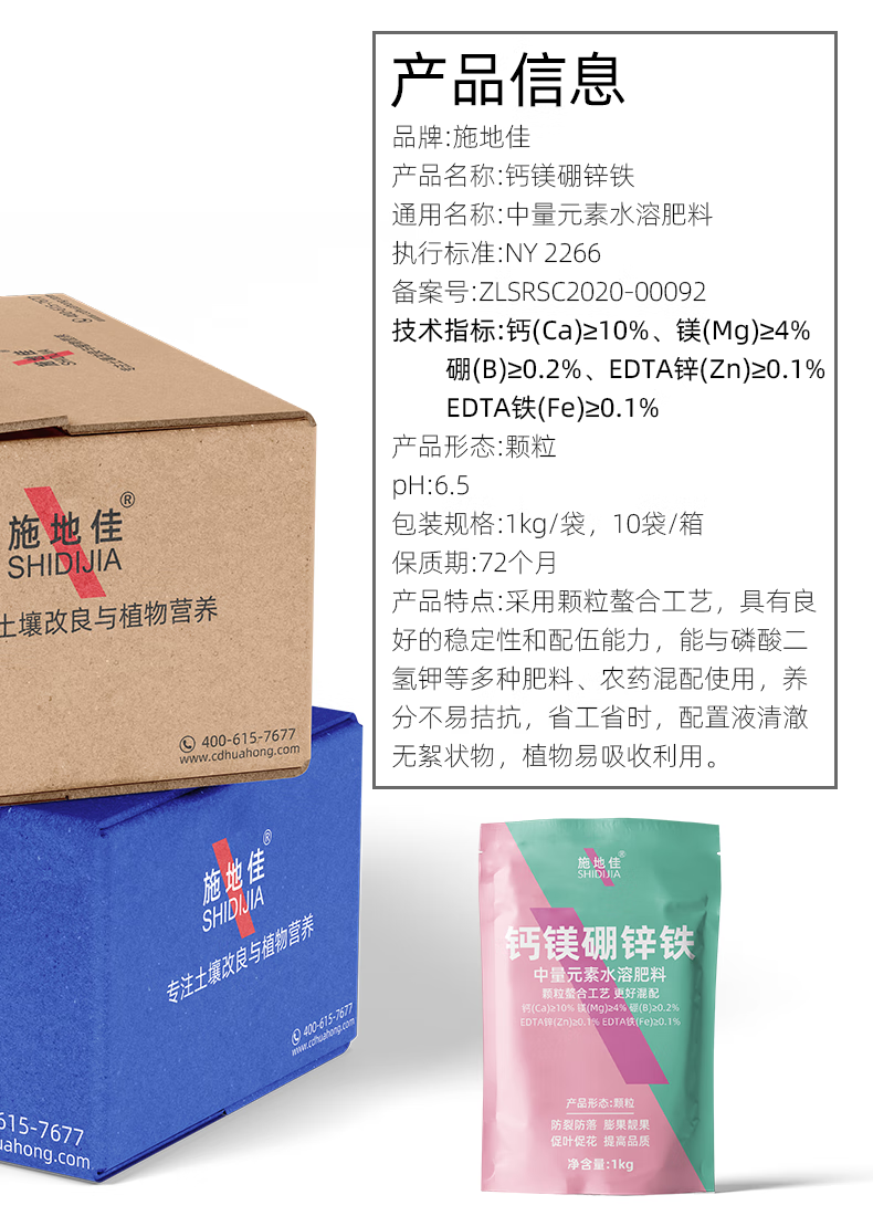 Shidijia agricultural granular calcium magnesium boron zinc iron chelated trace element water-soluble fertilizer apple tree vegetable anti-cracking foliar fertilizer calcium magnesium boron zinc iron 1kg*1 bag