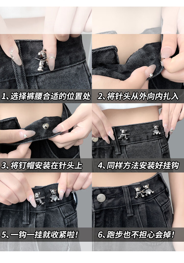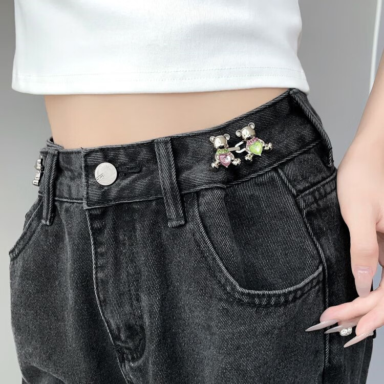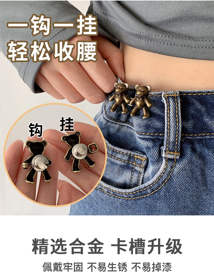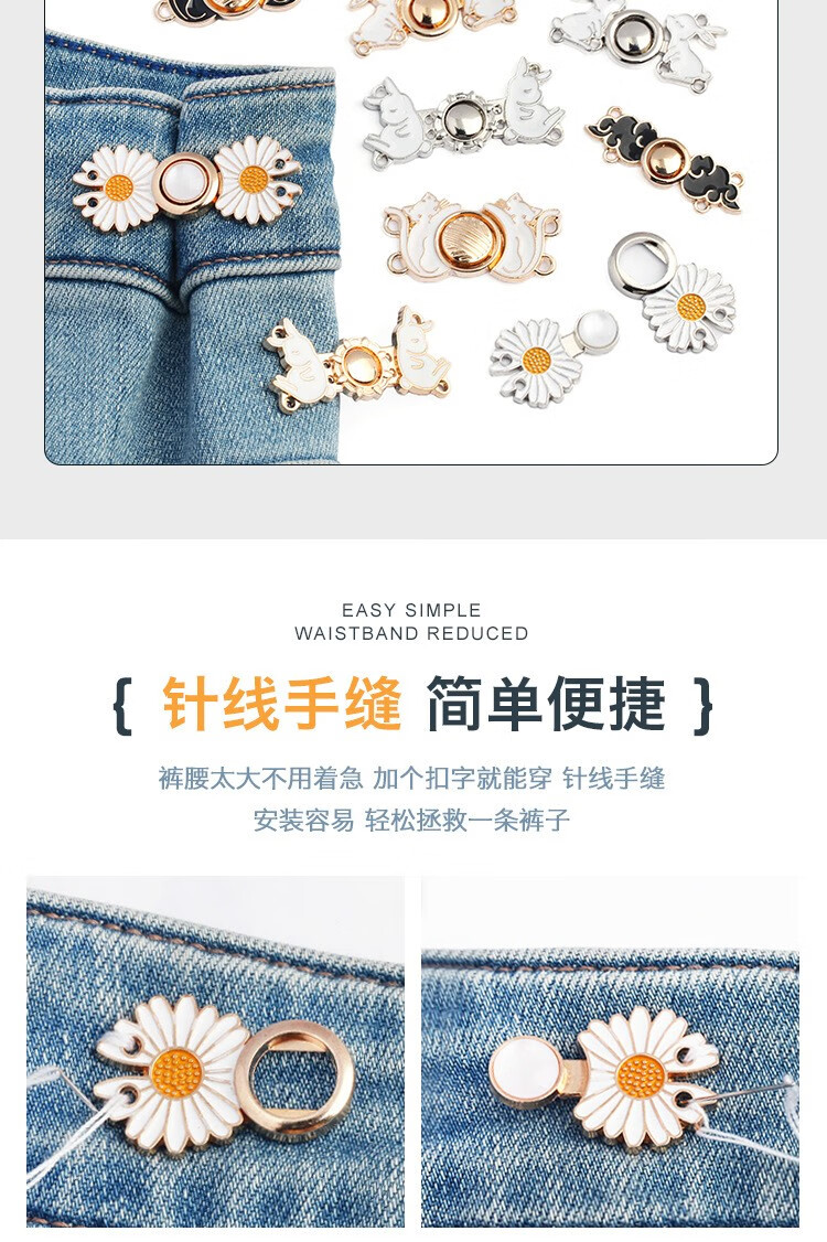 Haiyi Duo bear waist button jeans daisy pin waist metal buckle plate waist magic tool waist size change brooch waist button 4 pairs pack