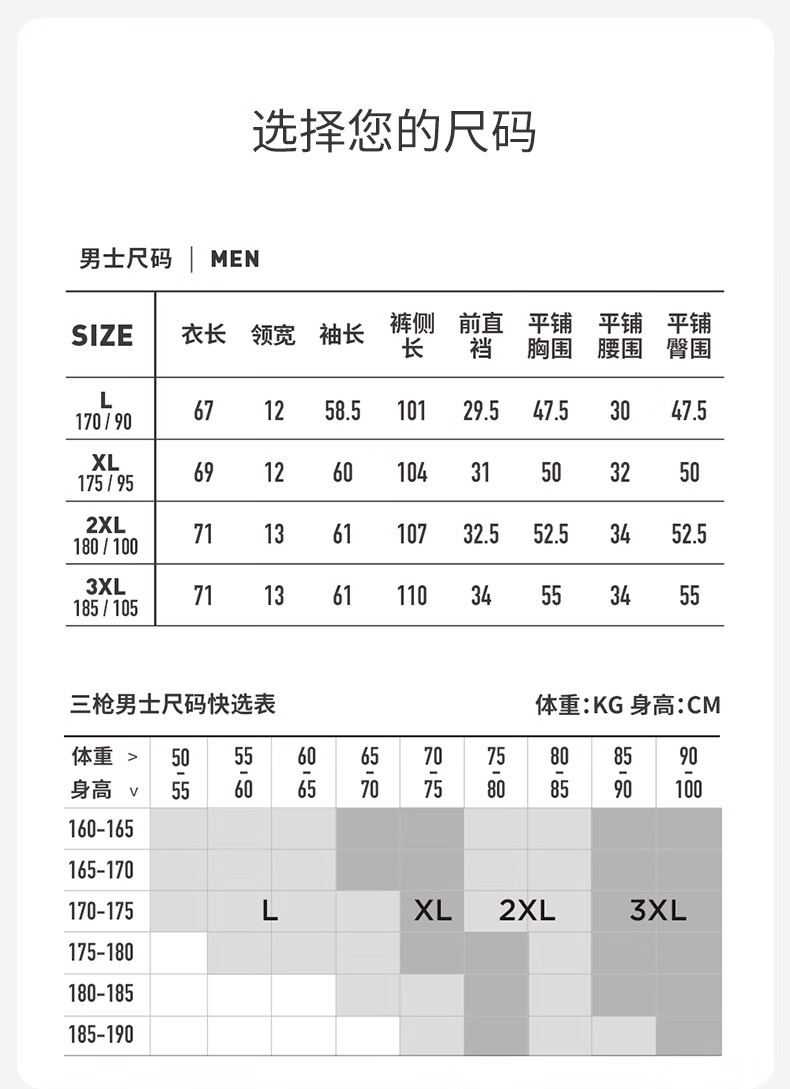 China (cm) 160-165/84-86 165-170 / 88-90 167-172 / 92-96 168-173 / 98-102 170-176 / 106-110