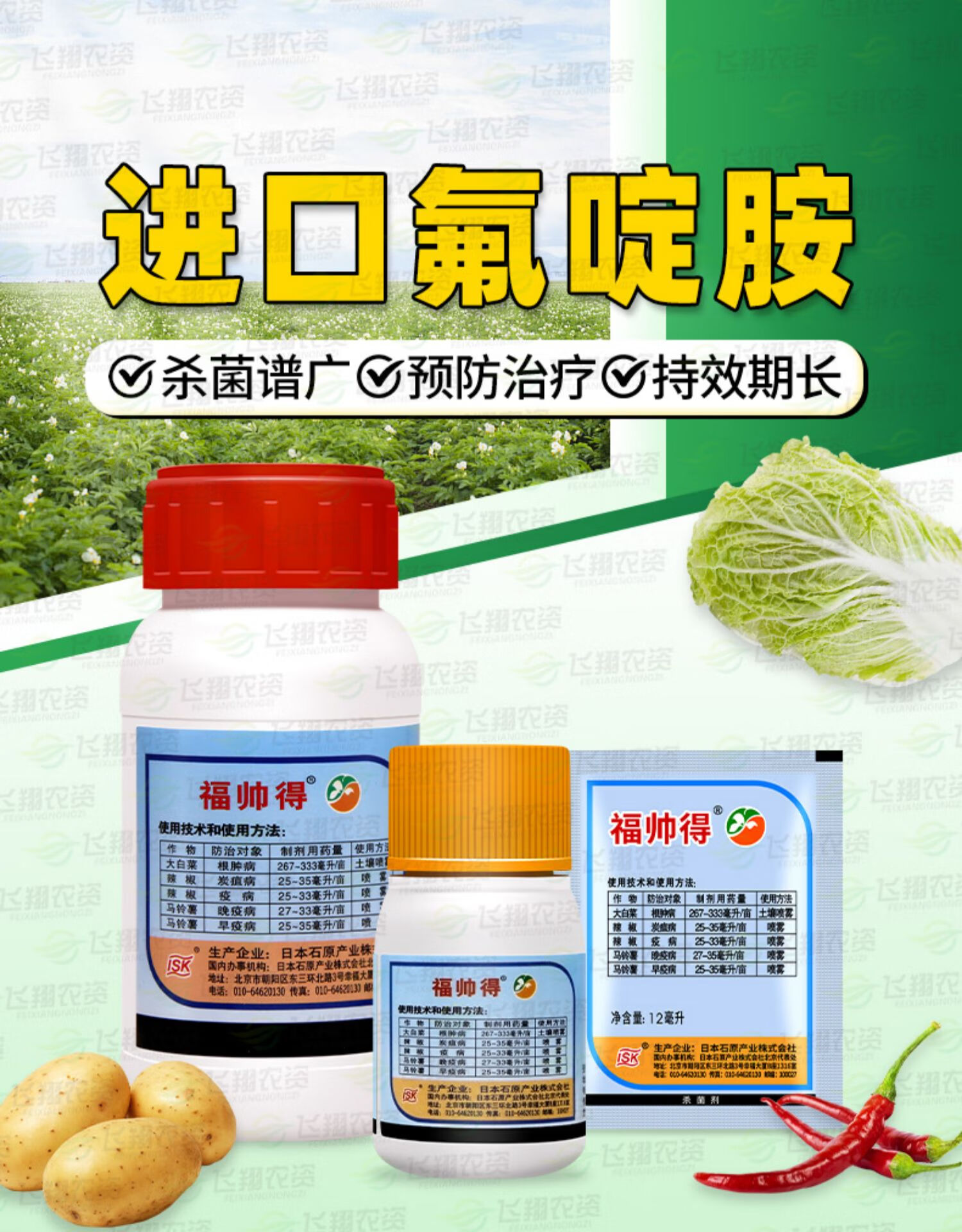 Fushuaide Japanese fluazimide Chinese cabbage clubroot pepper anthracnose potato late and early blight fungicide 200ml