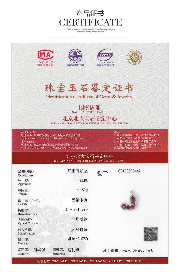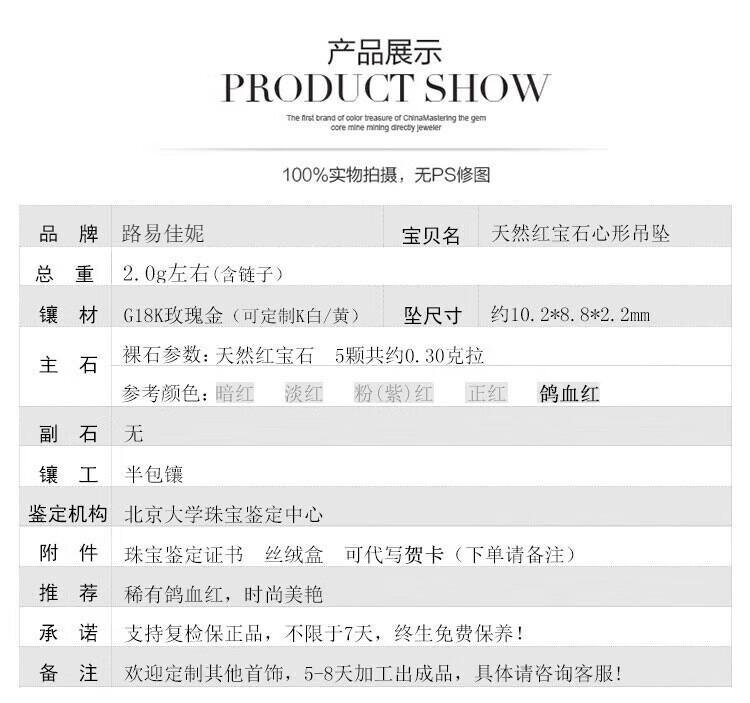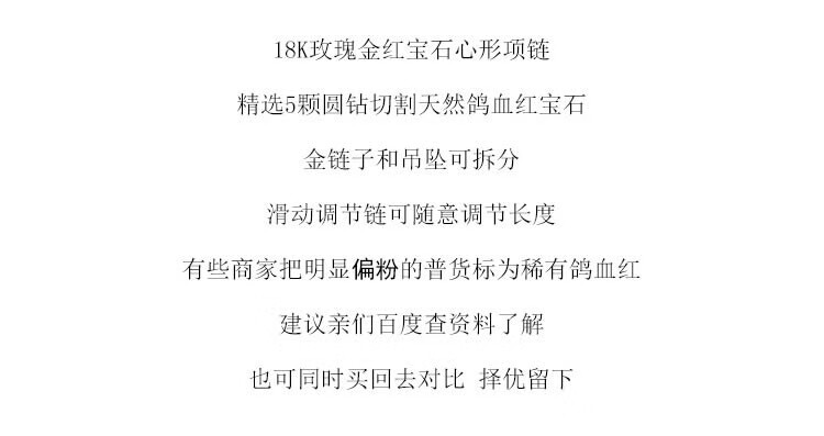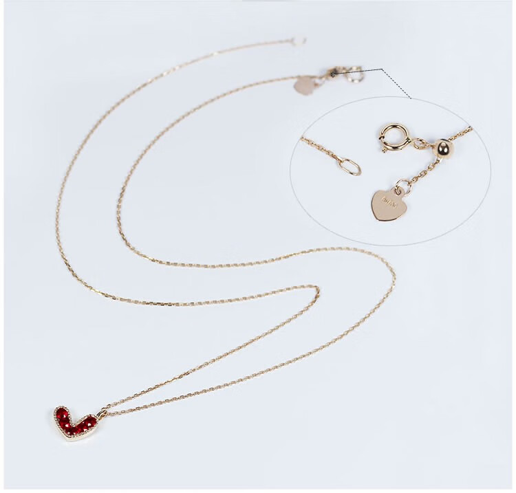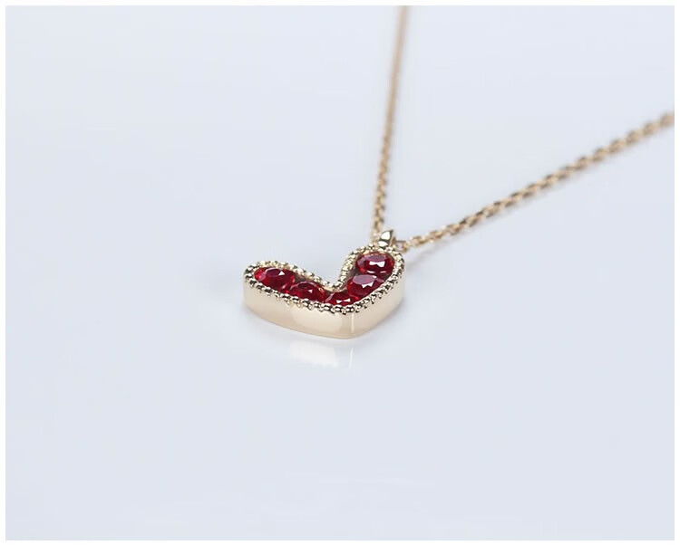Louis Garni pigeon blood ruby necklace for women 18K rose gold heart-shaped pendant girl heart love small fresh adjustable customization ruby pendant + 18-inch adjustable K gold chain