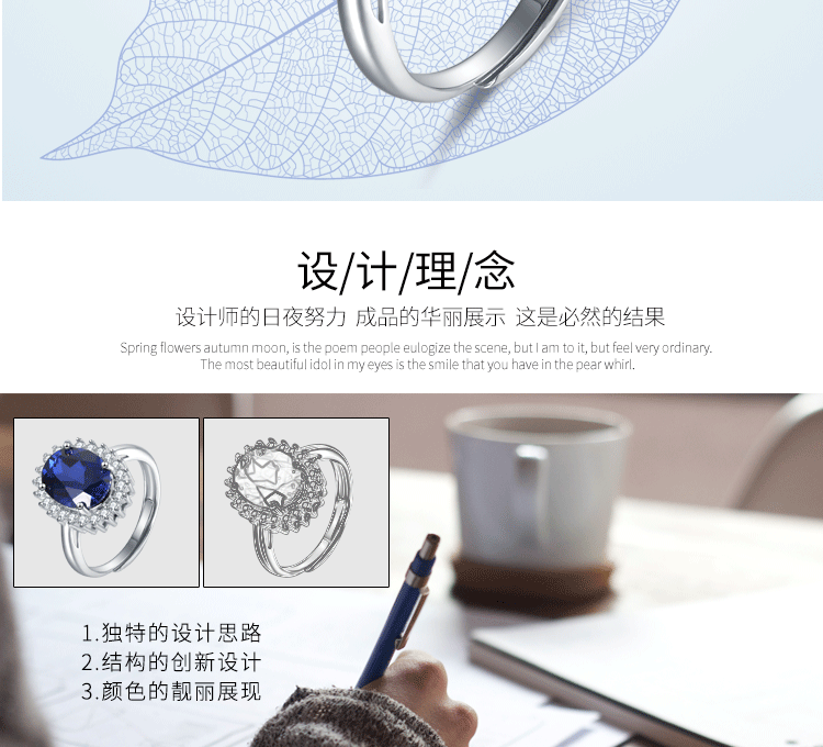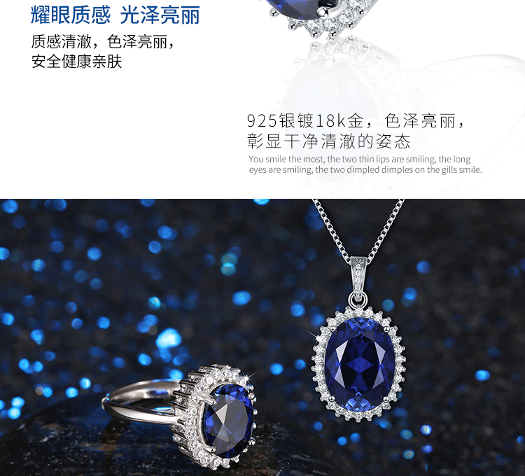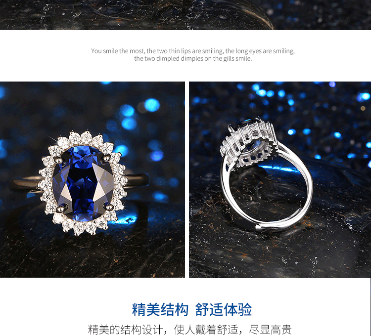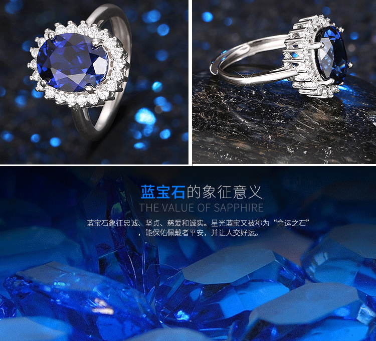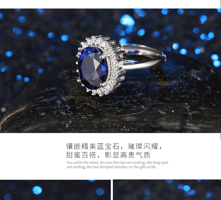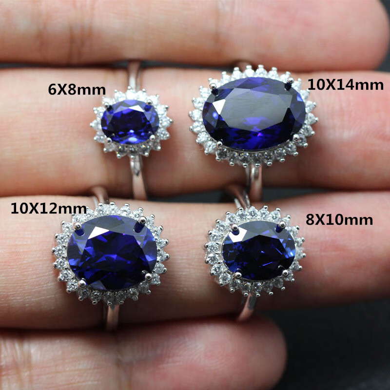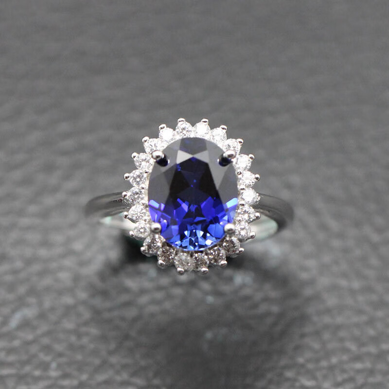 Gepan Princess Diana style sapphire silver ring for women, living classic dark blue color gemstone tanzanite main stone (6X8mm)