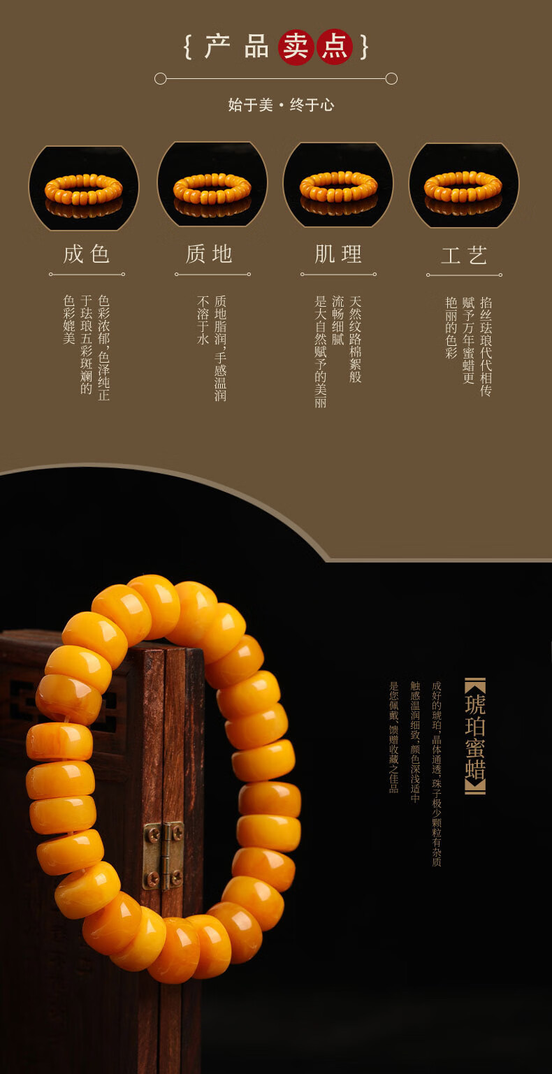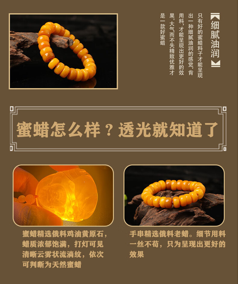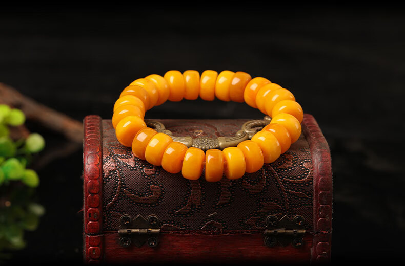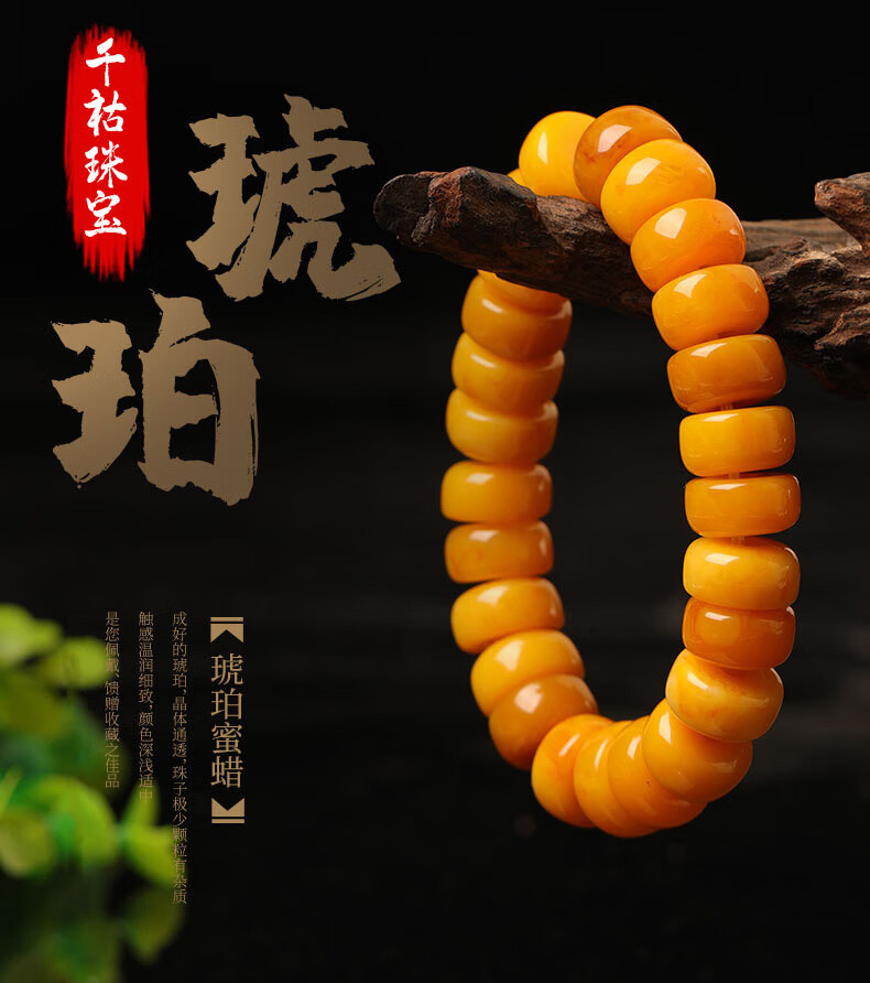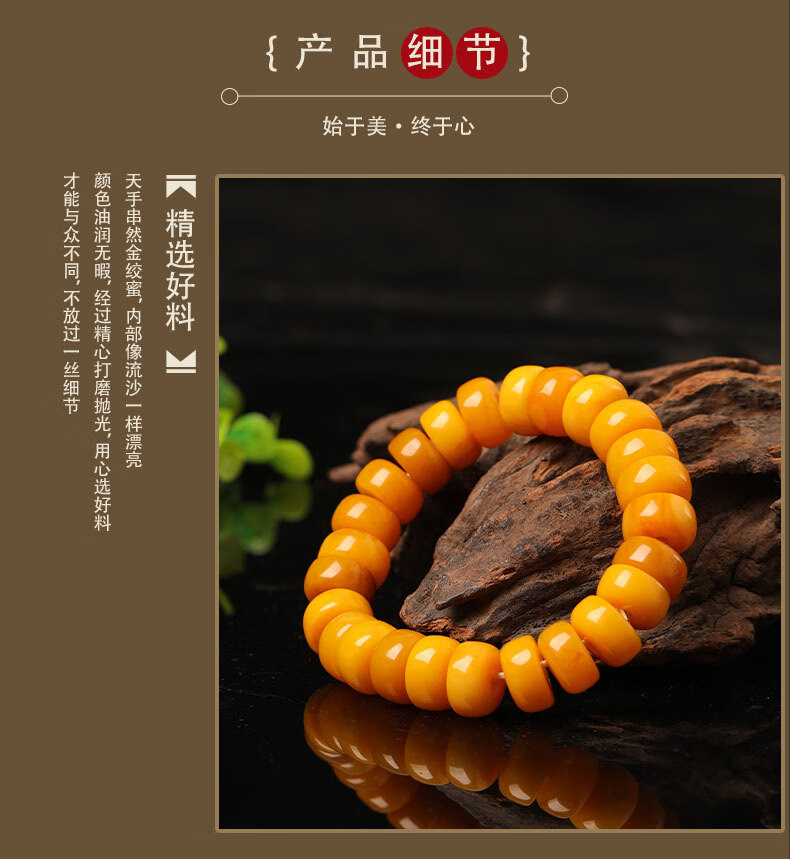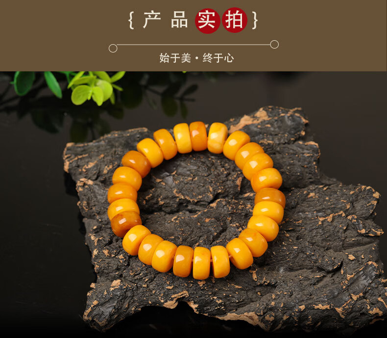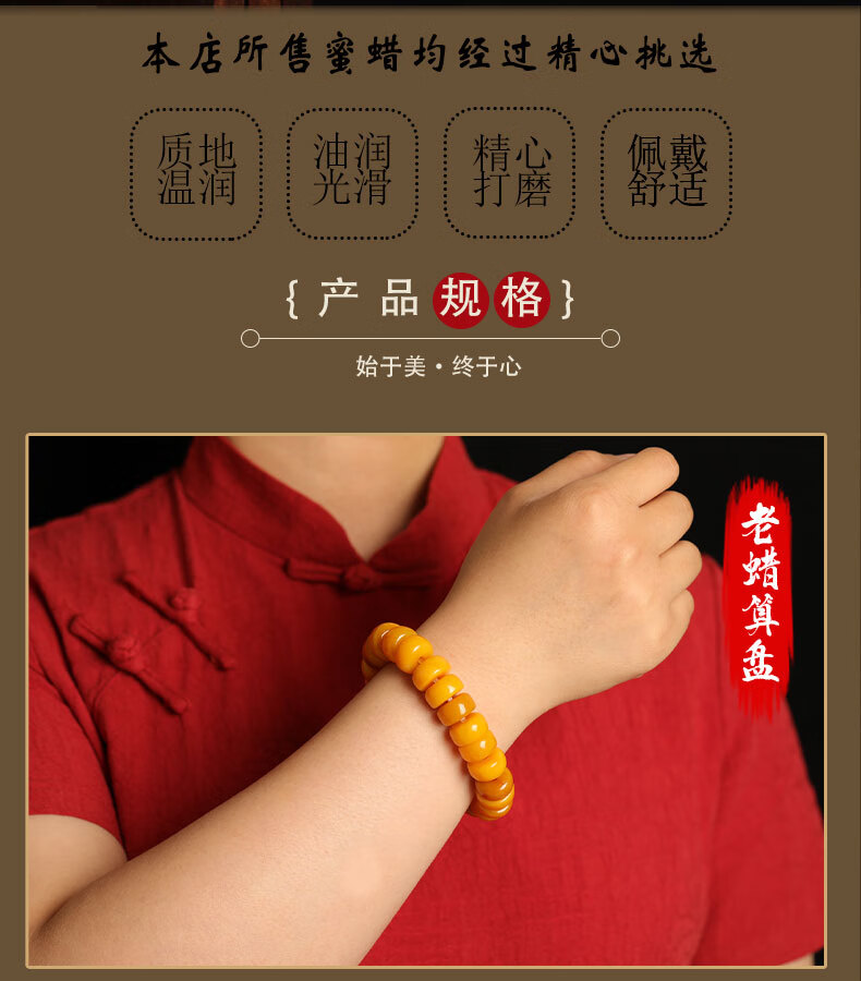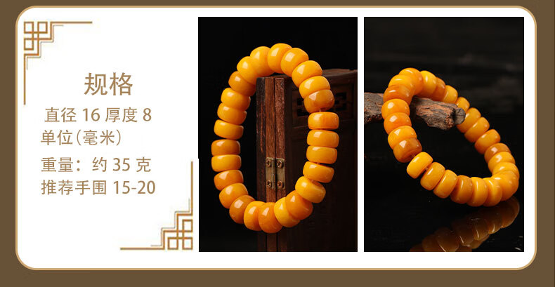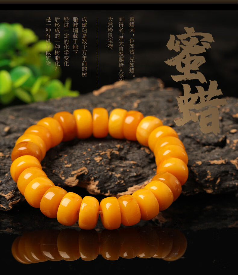 Autumn marks natural old beeswax abacus beads bracelet for men and women high-end raw stone amber chicken fat yellow pancake bracelet single circle abacus beads 16x8mm