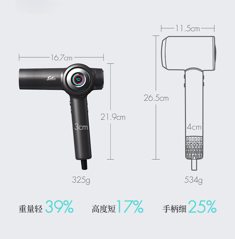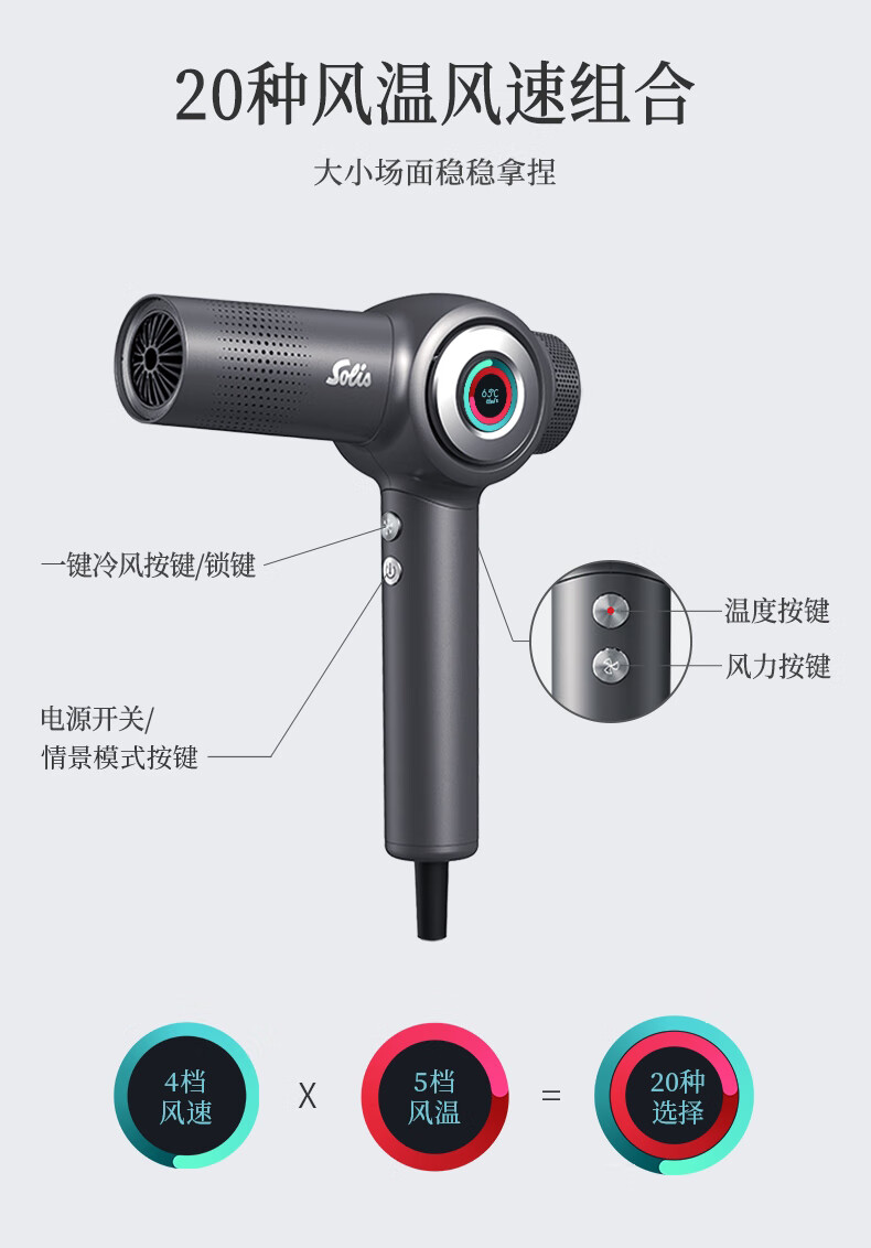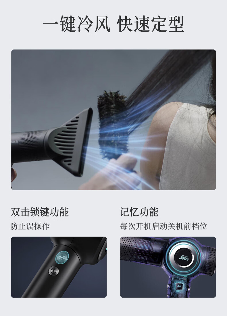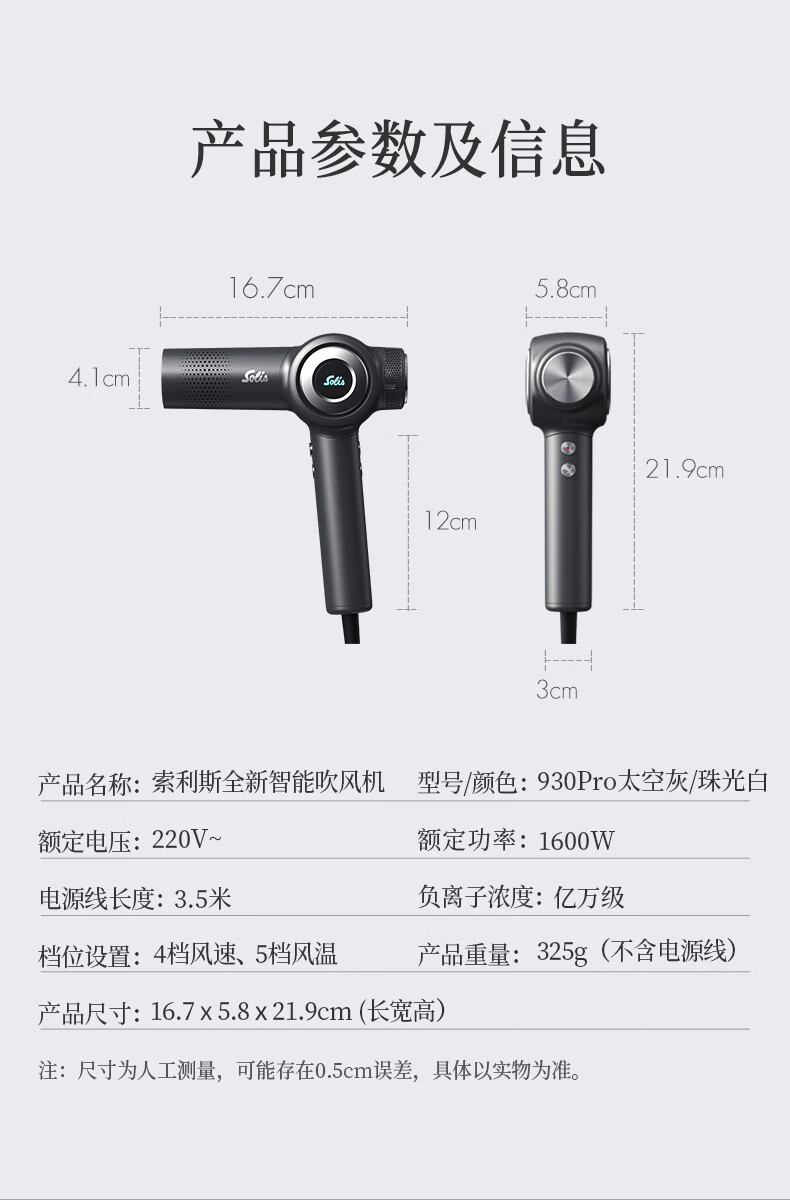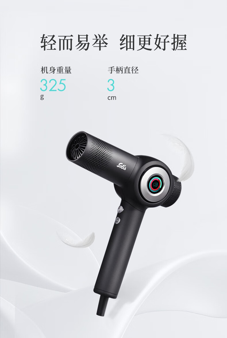 Solis 930Pro Intelligent High-Speed Hair Dryer Home Negative Ion Hair Care Non-Hurting Electric Hair Dryer Professional Edition Pearl White 3.5 Meters