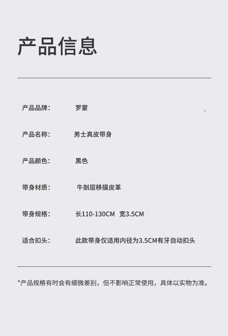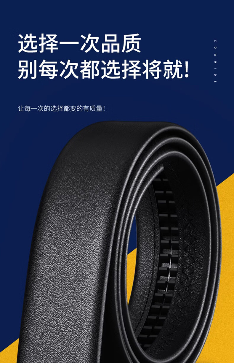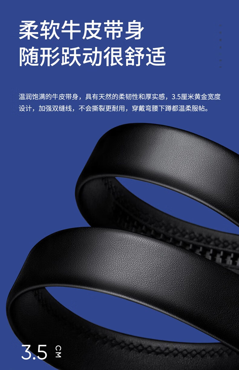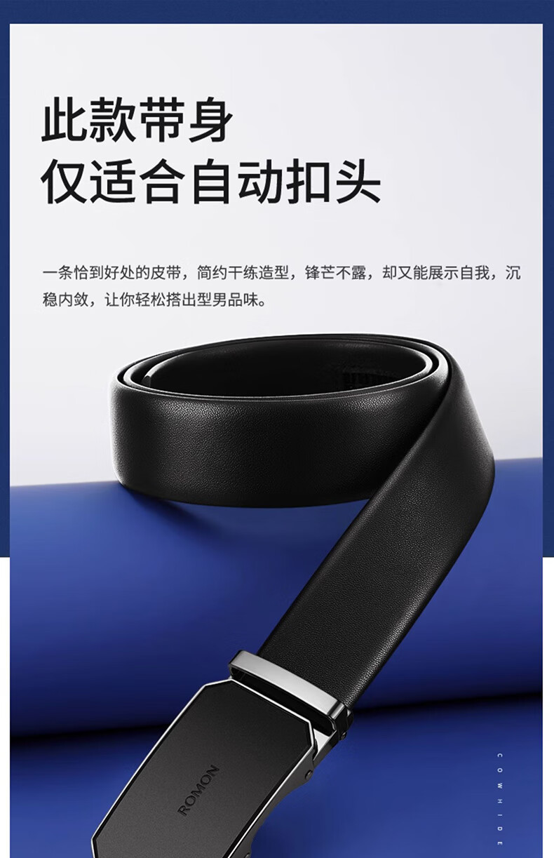 Romon headless belt men's genuine leather without head pure cowhide automatic buckle men's belt does not fall off the belt strip 3.5cm black belt body
