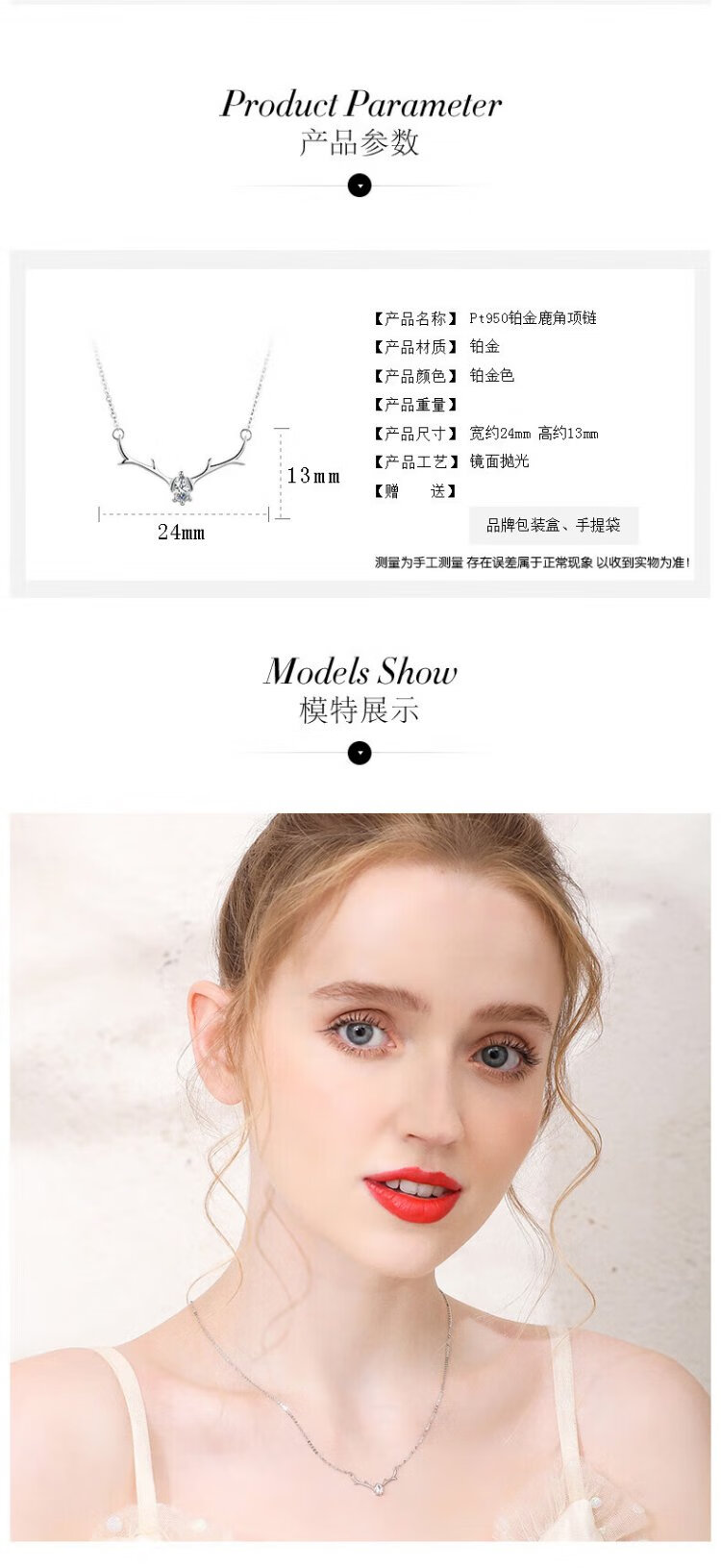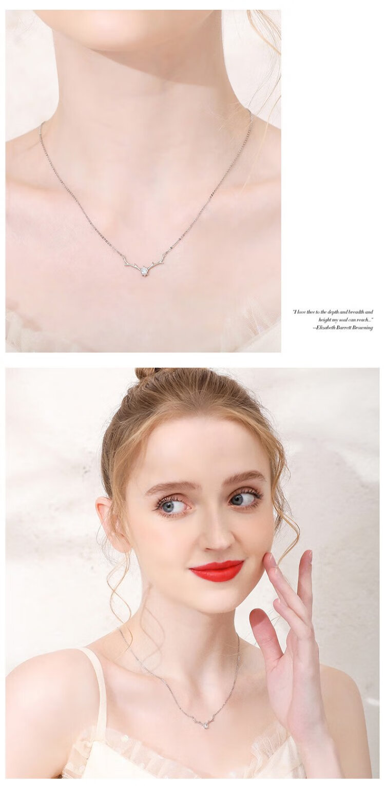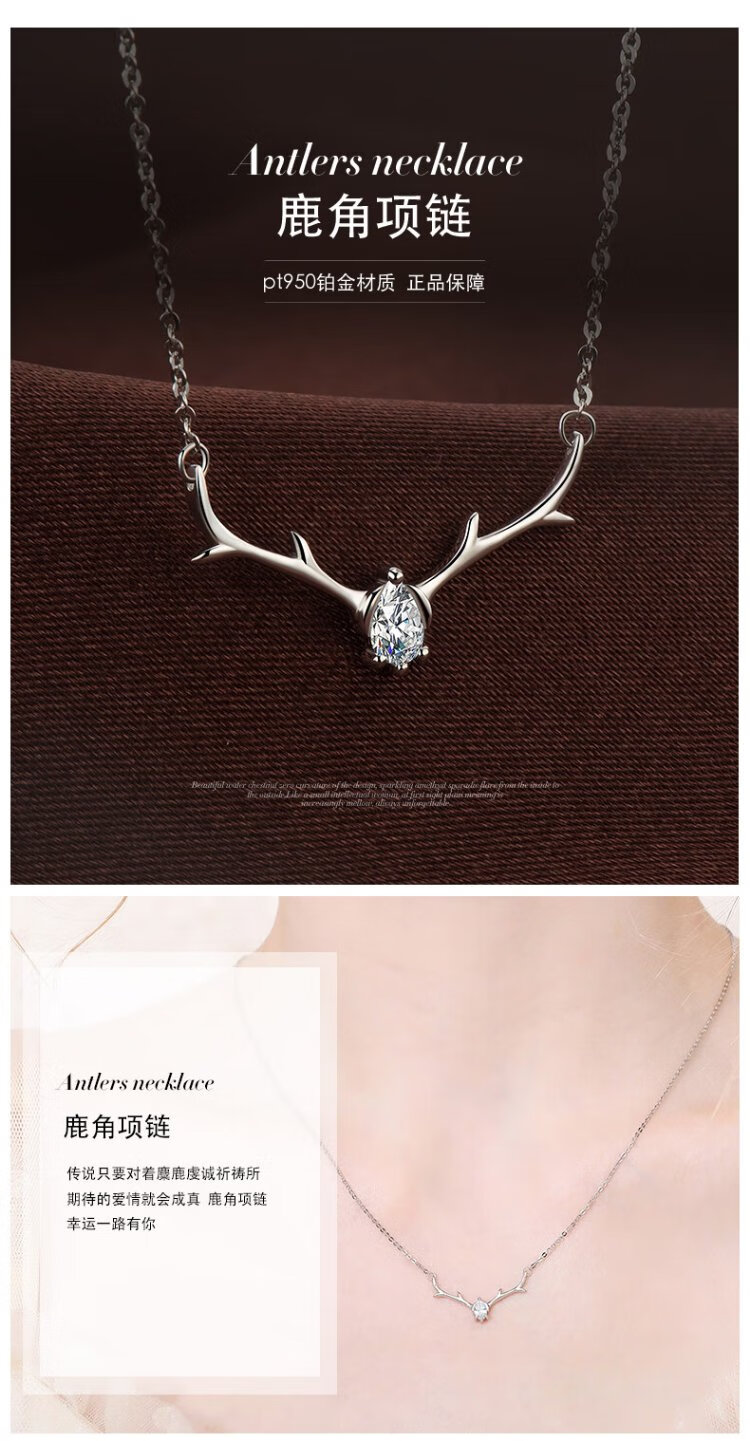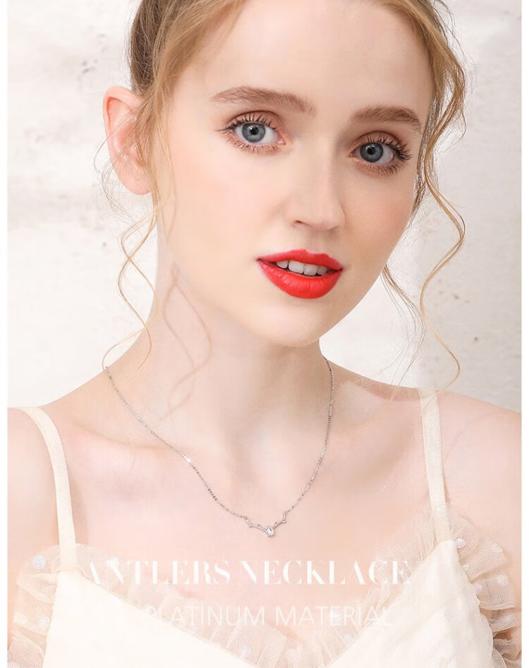 Grace Girl Pt950 Platinum All the Way With You Necklace Women's High Fashion Temperament Antler Pendant Birthday Gift for Girlfriend Pt950 Platinum Antler Set Chain + Rose Gift Box