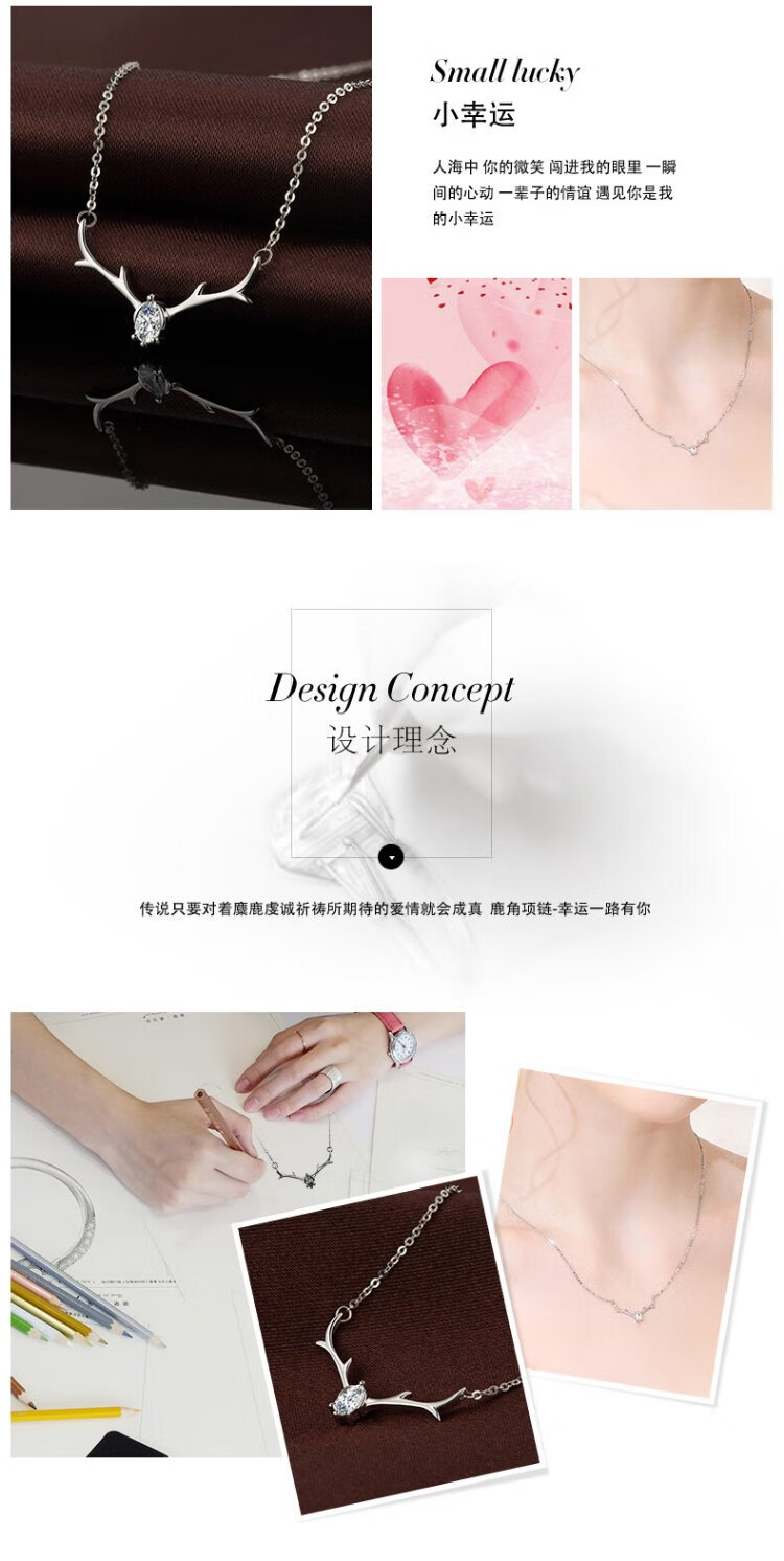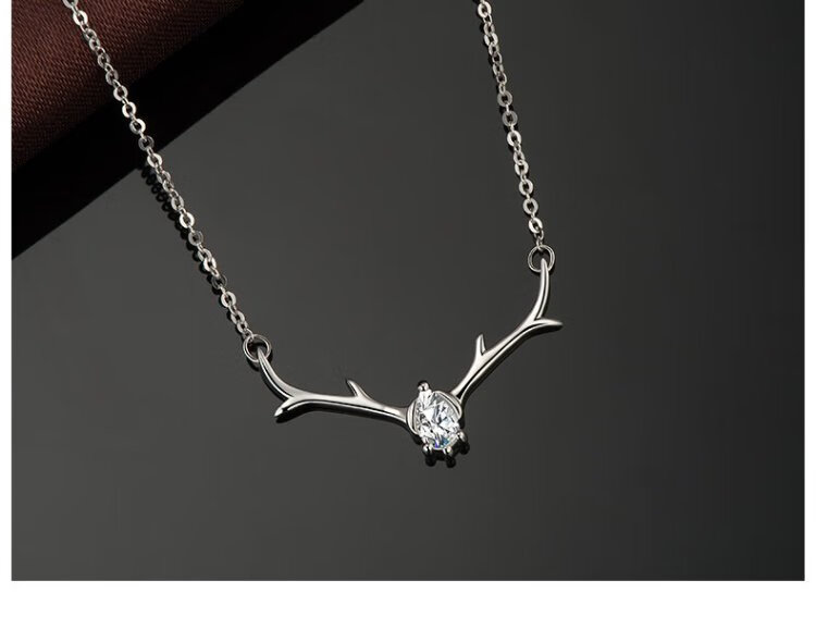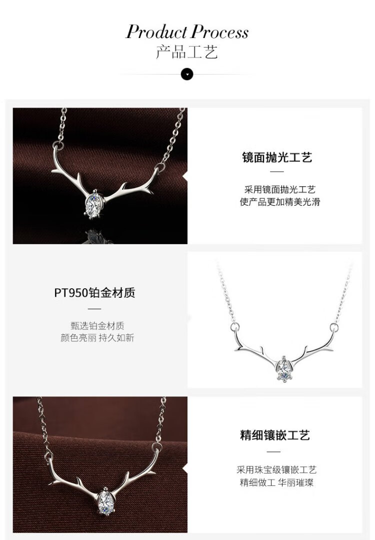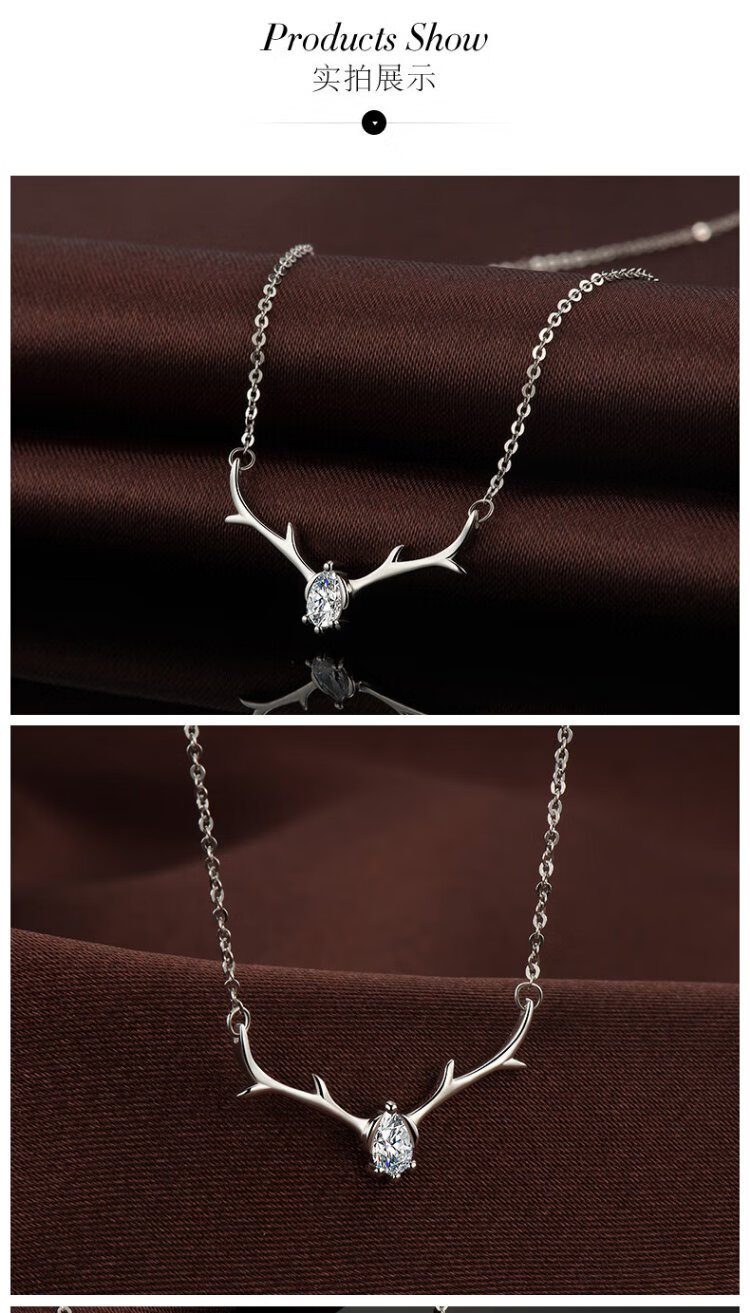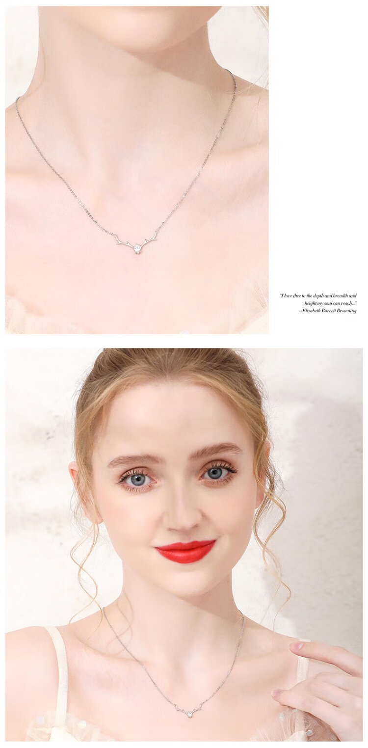 Grace Girl Pt950 Platinum All the Way With You Necklace Women's High Fashion Temperament Antler Pendant Birthday Gift for Girlfriend Pt950 Platinum Antler Set Chain + Rose Gift Box