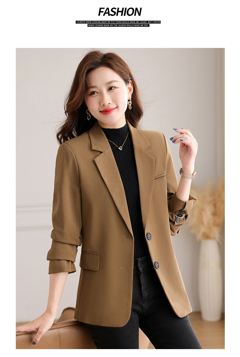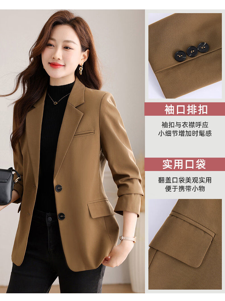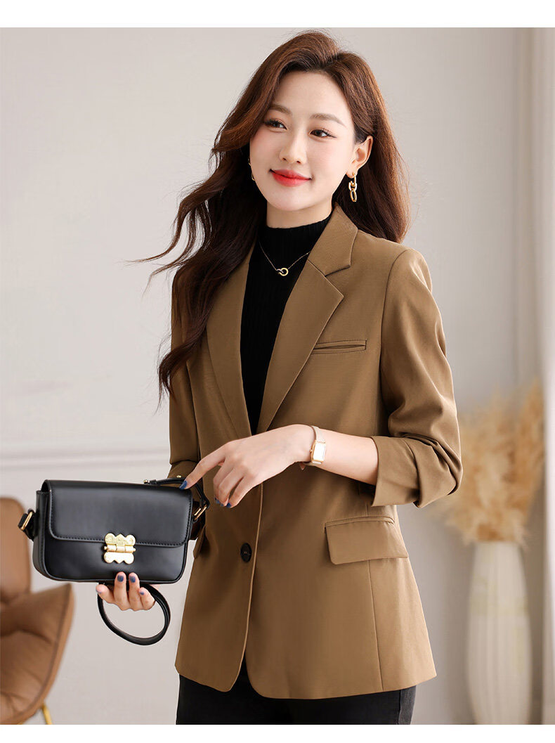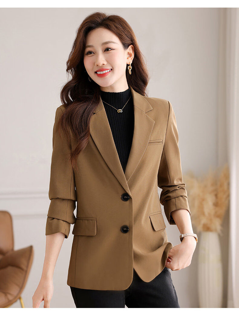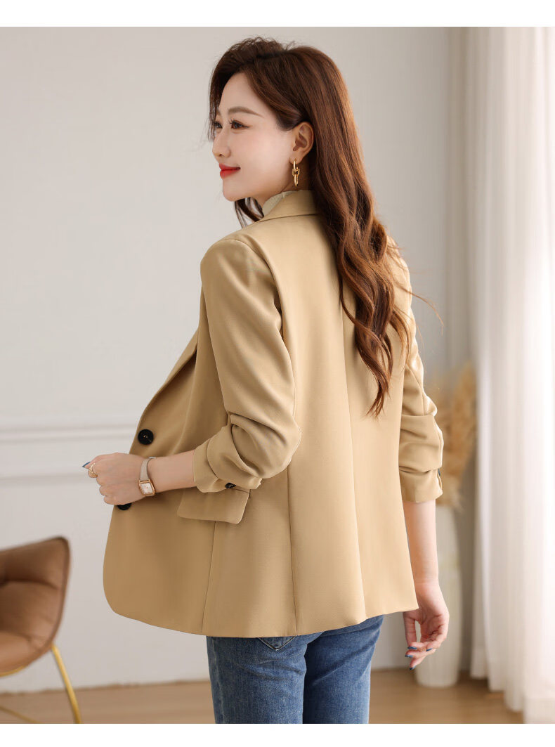 Yu Zhaolin (YUZHAOLIN) out of stock early spring khaki casual suit jacket for women spring and autumn versatile 2026 spring new temperament right shoulder top khaki 3XL (recommended 130-140Jin Jin equals 0.5 kg)