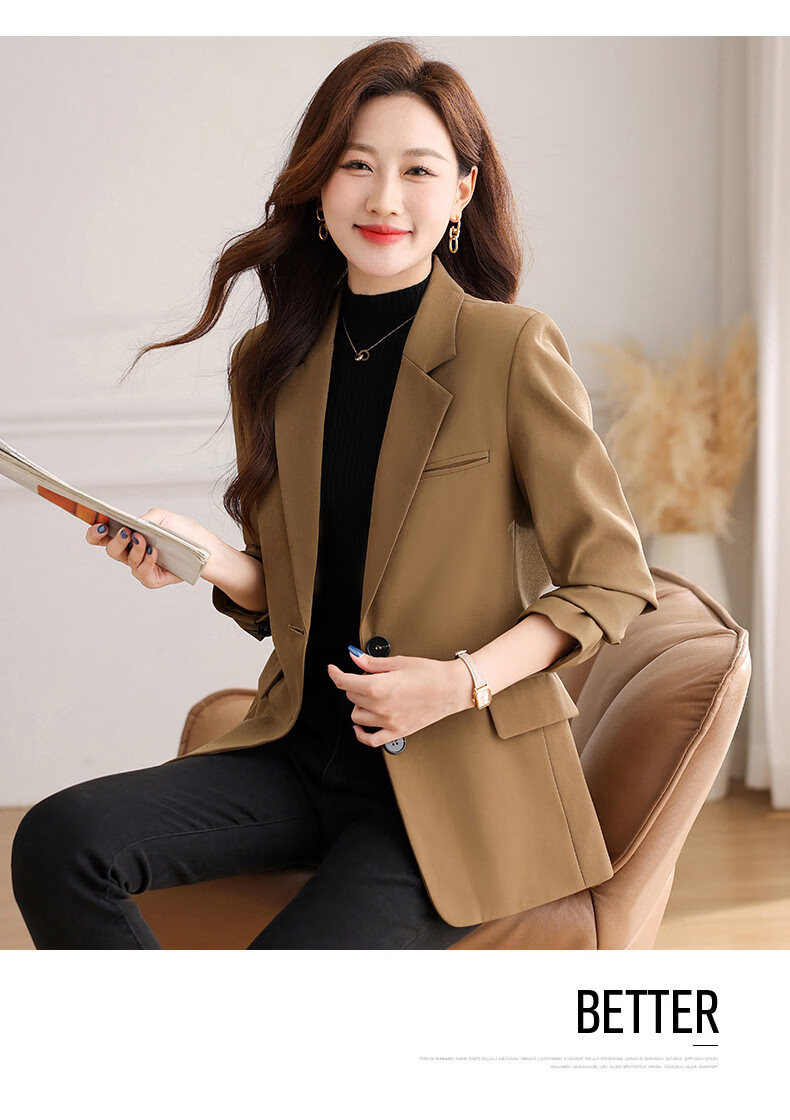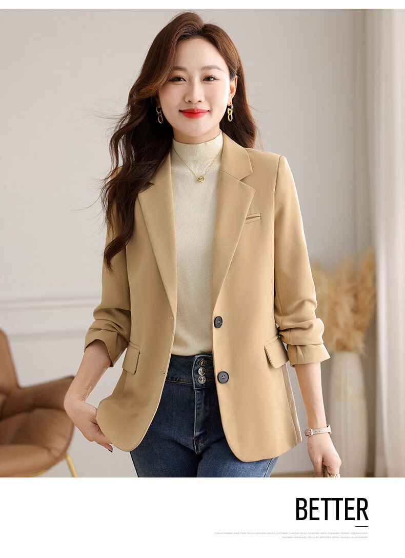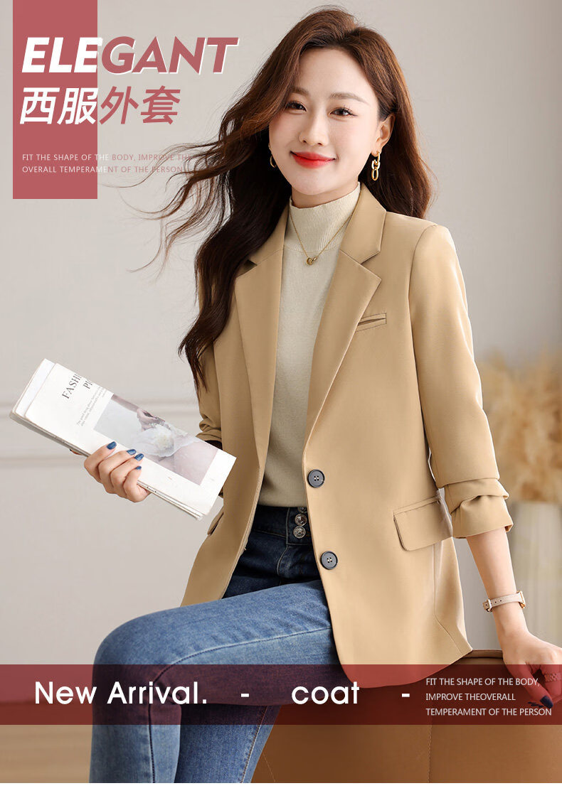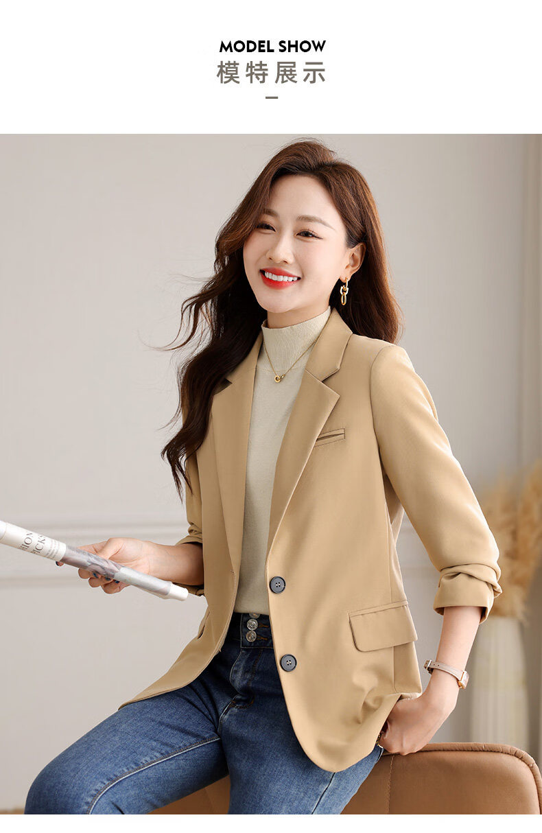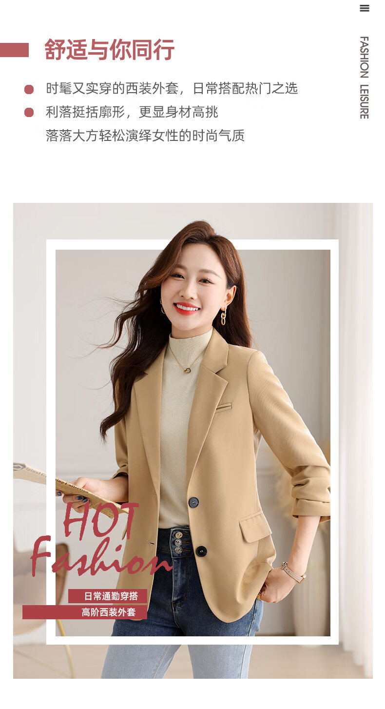 Yu Zhaolin (YUZHAOLIN) out of stock early spring khaki casual suit jacket for women spring and autumn versatile 2026 spring new temperament right shoulder top khaki 3XL (recommended 130-140Jin Jin equals 0.5 kg)