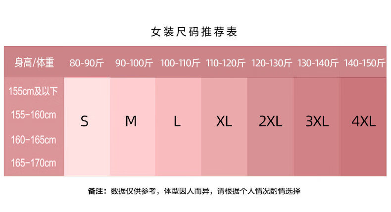 China (cm) 160-165/84-86 165-170 / 88-90 167-172 / 92-96 168-173 / 98-102 170-176 / 106-110