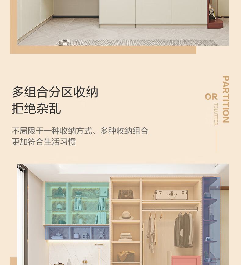 Oppein customized wardrobe Whole house customized Hong Kong style light luxury storage cloakroom TV cabinet wine cabinet entry cabinet Blanca 10 square meters custom cabinet package price