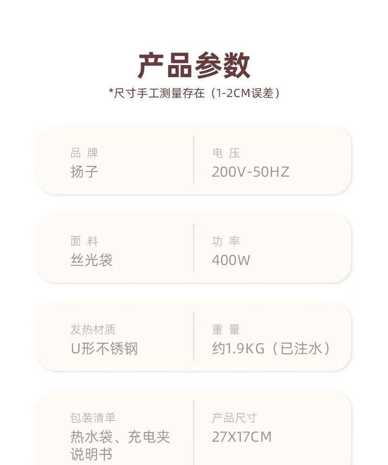 Yangzi Warm Baby Rechargeable Hot Water Bottle Hand Warmer Explosion-proof Quilt Warmer Waist Warmer Electric Heating Water Bottle Special Edition for Bedding Mercerized Cloth - National Standard Explosion-proof