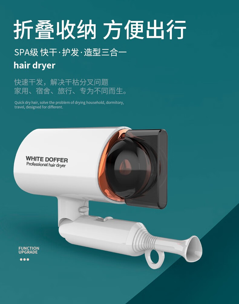 White Doffer hotel hair dryer household high-power wall-mounted hair dryer without punching bathroom hairdryer hotel B&B inn special blue light does not hurt hair white (1800W) package