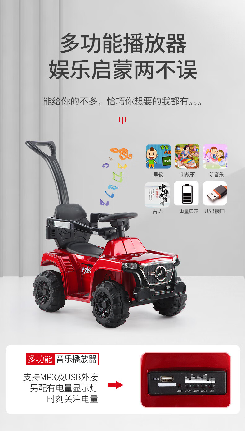Turati children's electric car four-wheel push car charging remote control twist car child male can sit on female baby toy car red electric model + hand push + remote control