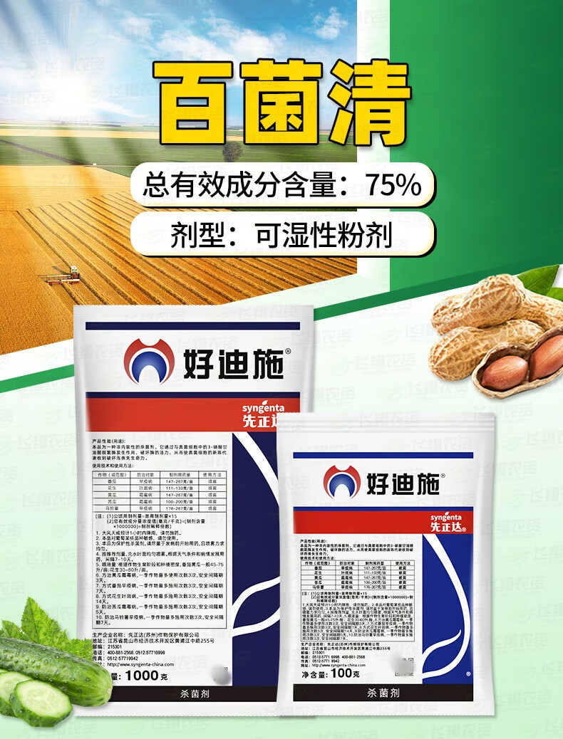 Syngenta Hordisch 75% chlorothalonil vegetable and flower early blight peanut leaf spot downy mildew pesticide fungicide 100g