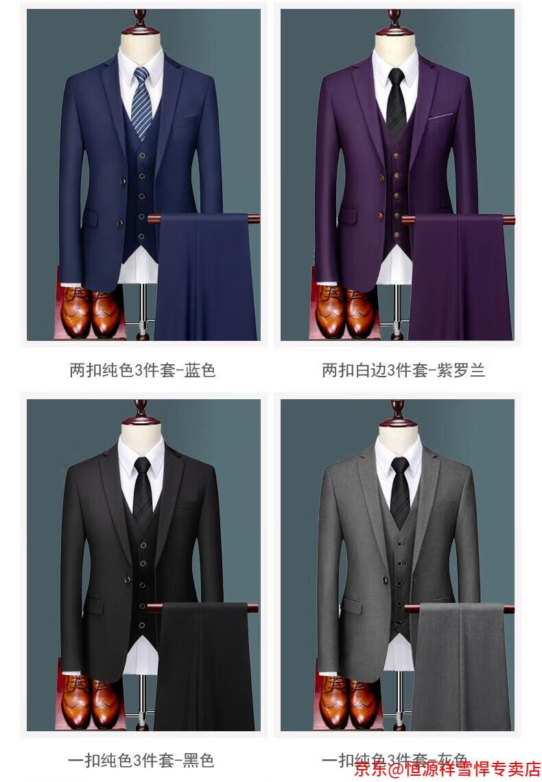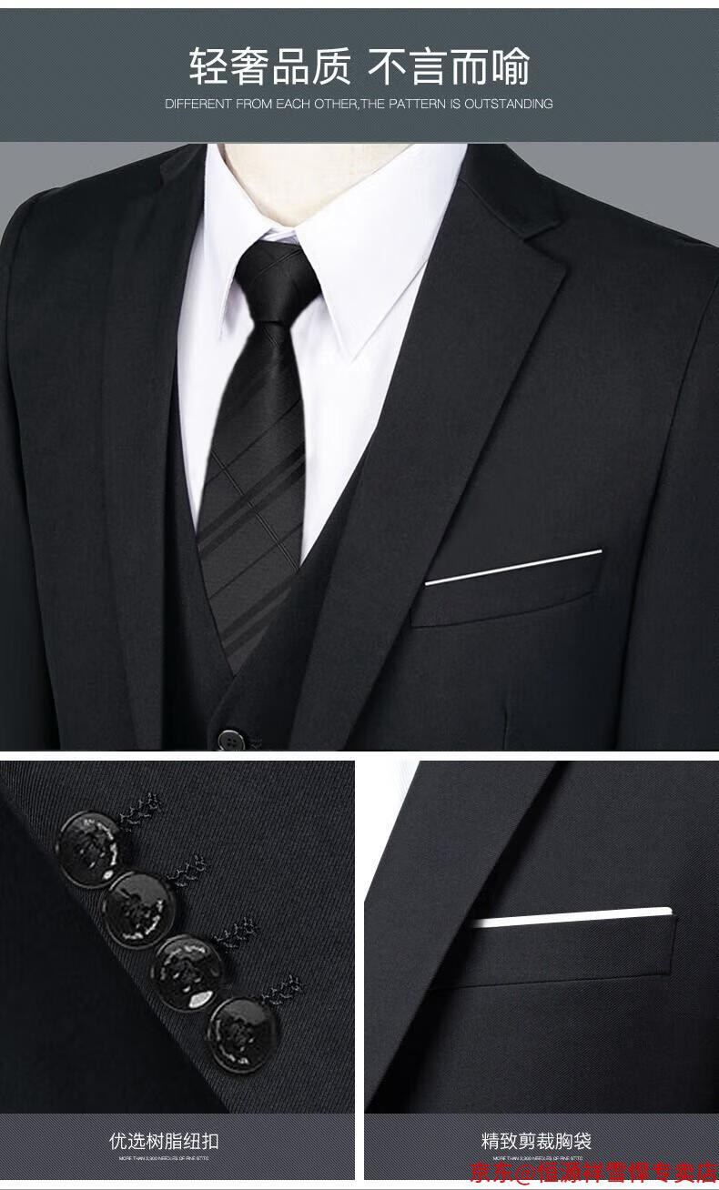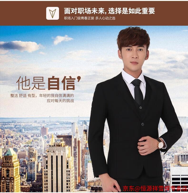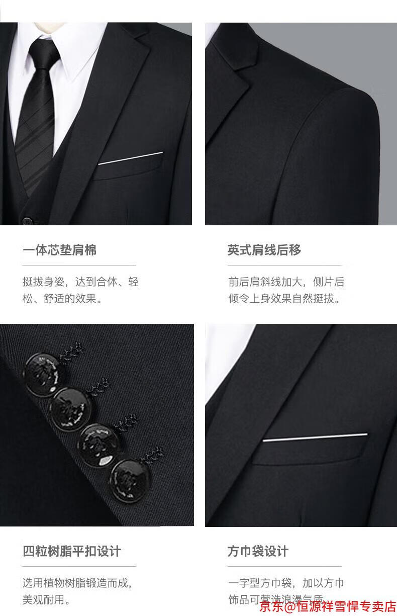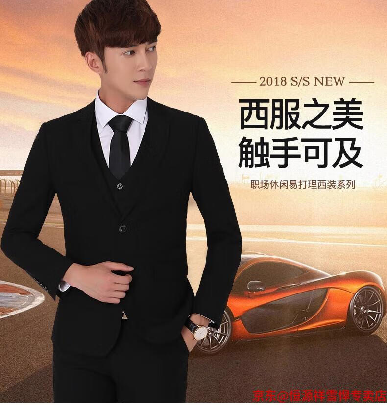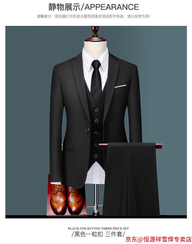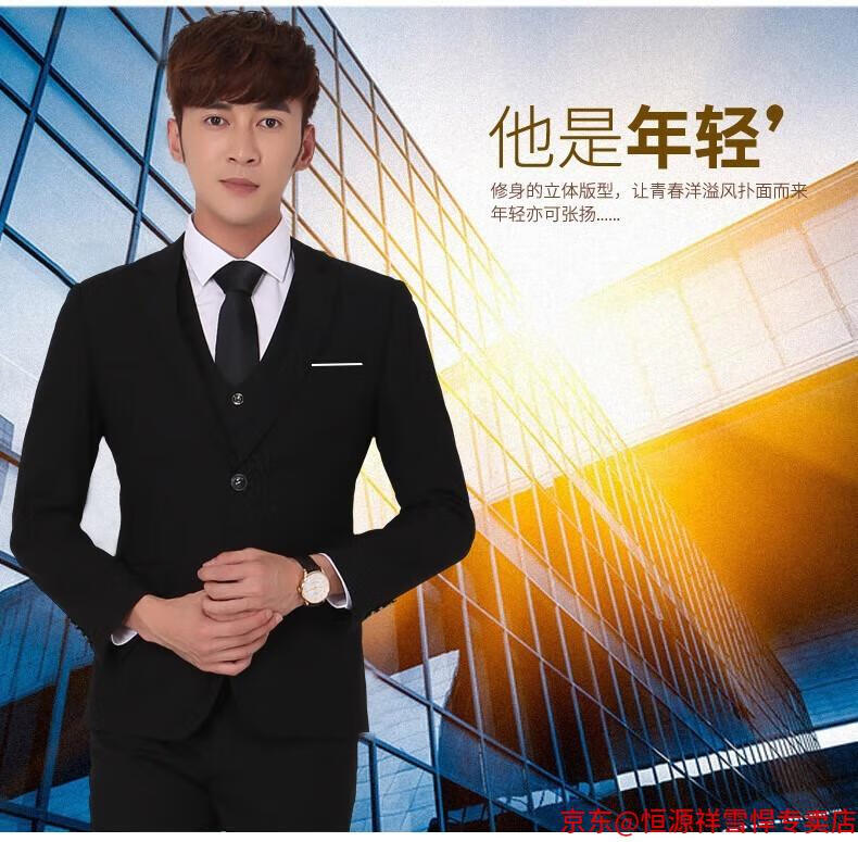 Hengyuanxiang suit men's three-piece business professional formal small suit Korean version slim groomsman and groom wedding dress two-button solid color-black top XL 180/weight 141-155Jin Jin equals 0.5 kg
