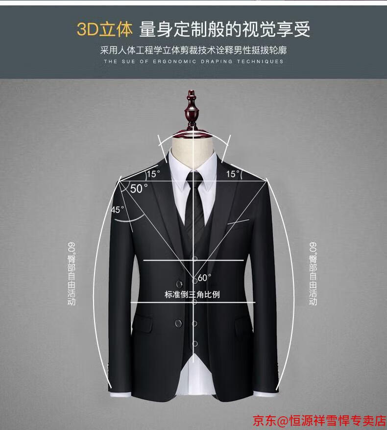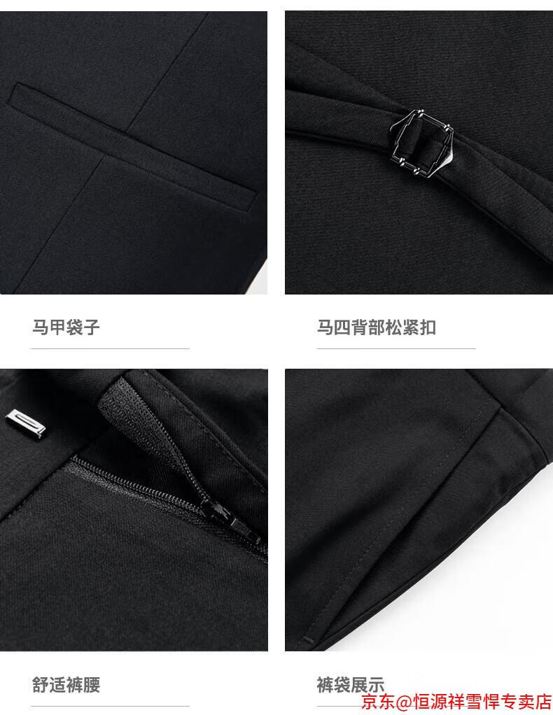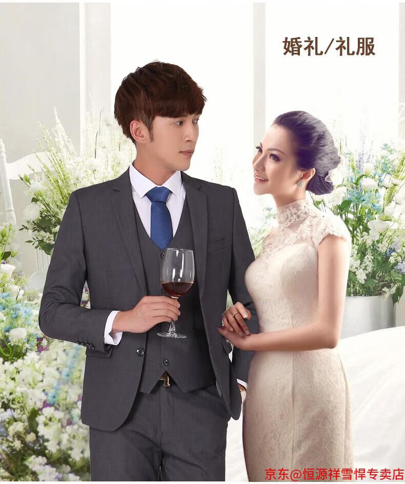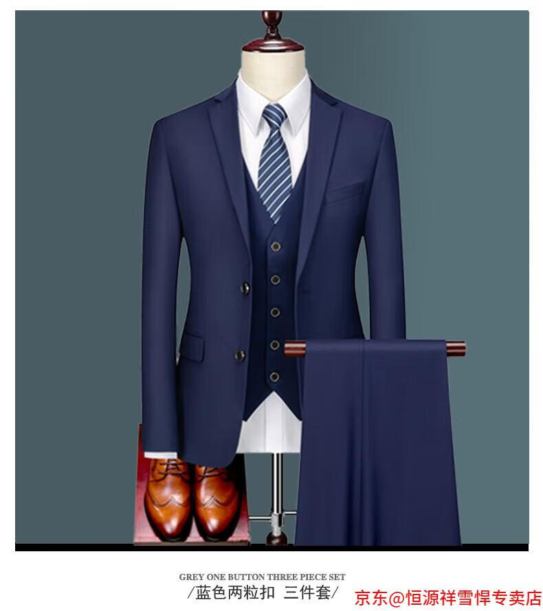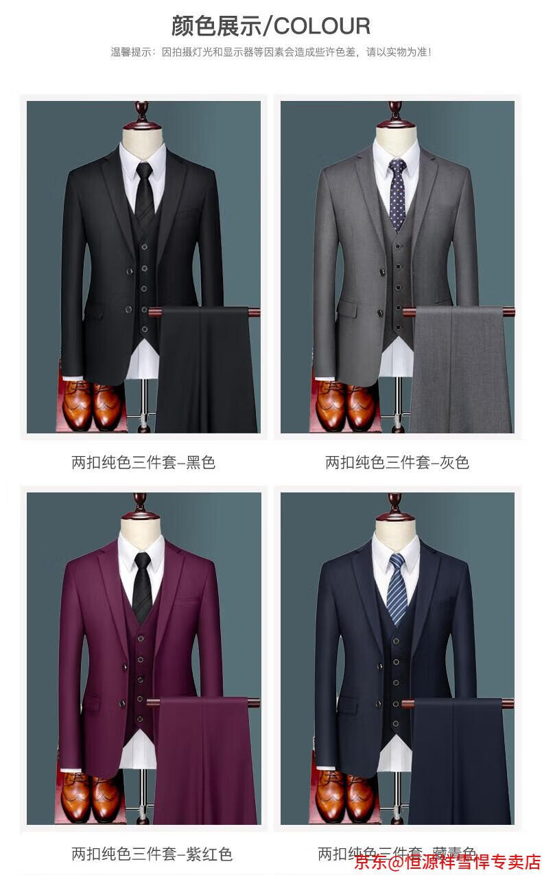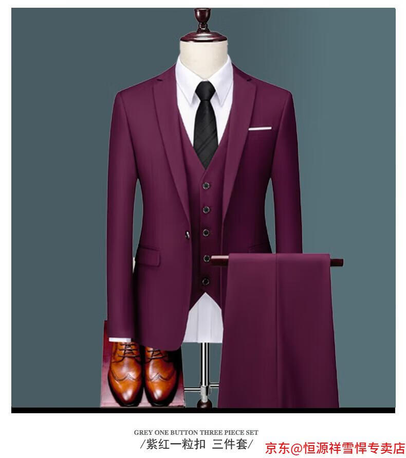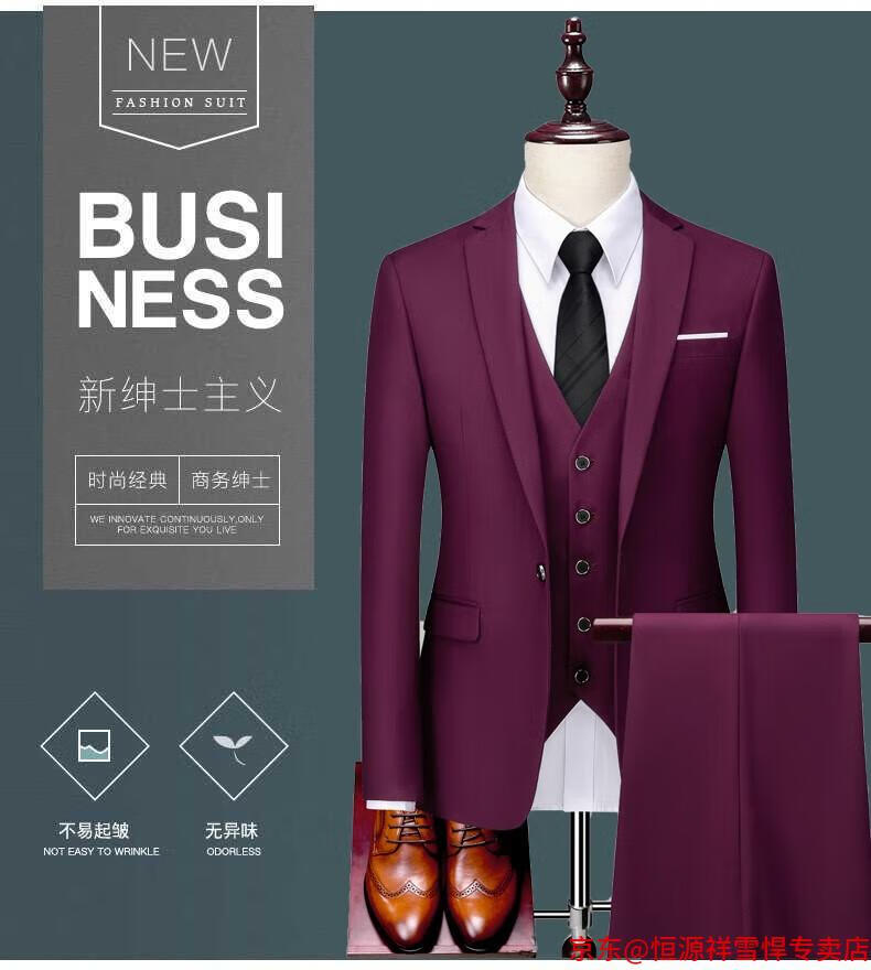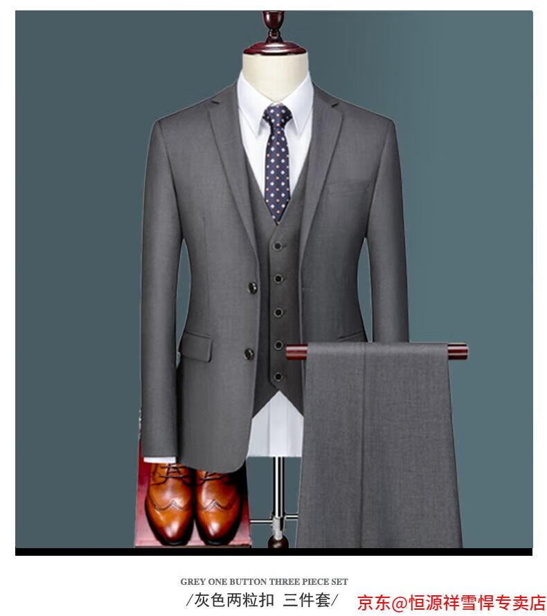 Hengyuanxiang suit men's three-piece business professional formal small suit Korean version slim groomsman and groom wedding dress two-button solid color-black top XL 180/weight 141-155Jin Jin equals 0.5 kg