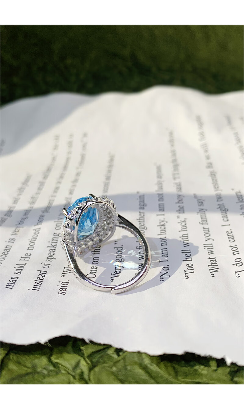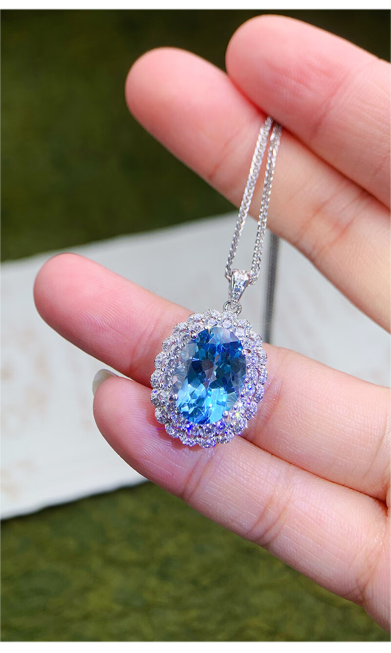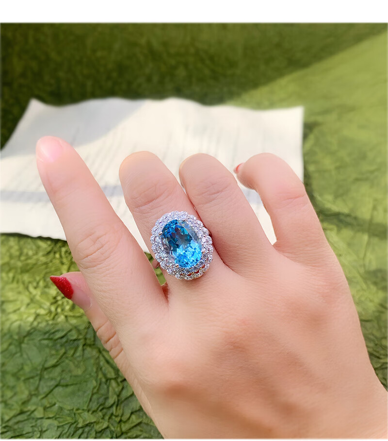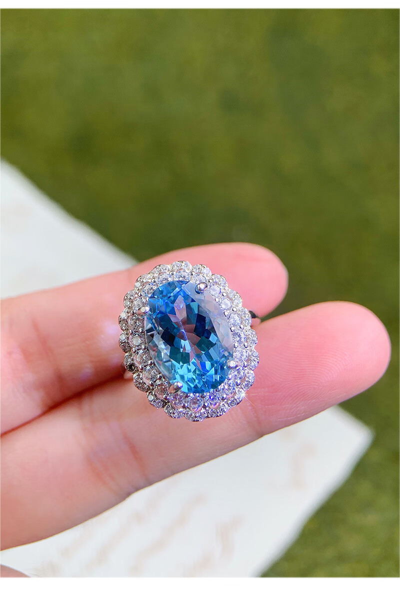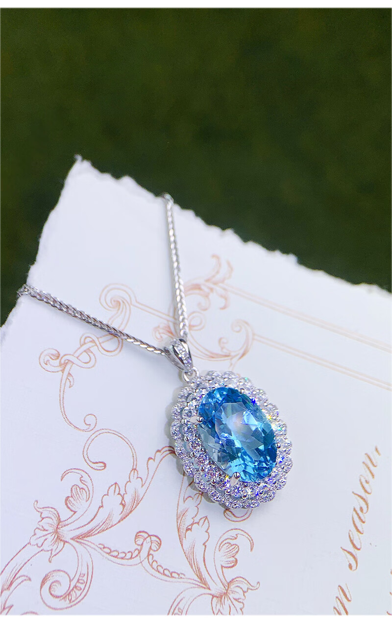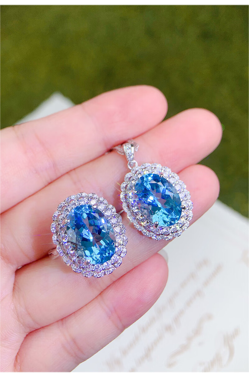 Gepan 9 carat natural topaz set S925 silver pigeon egg ring luxury blue gem pendant women's necklace set (ring + necklace)