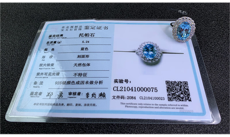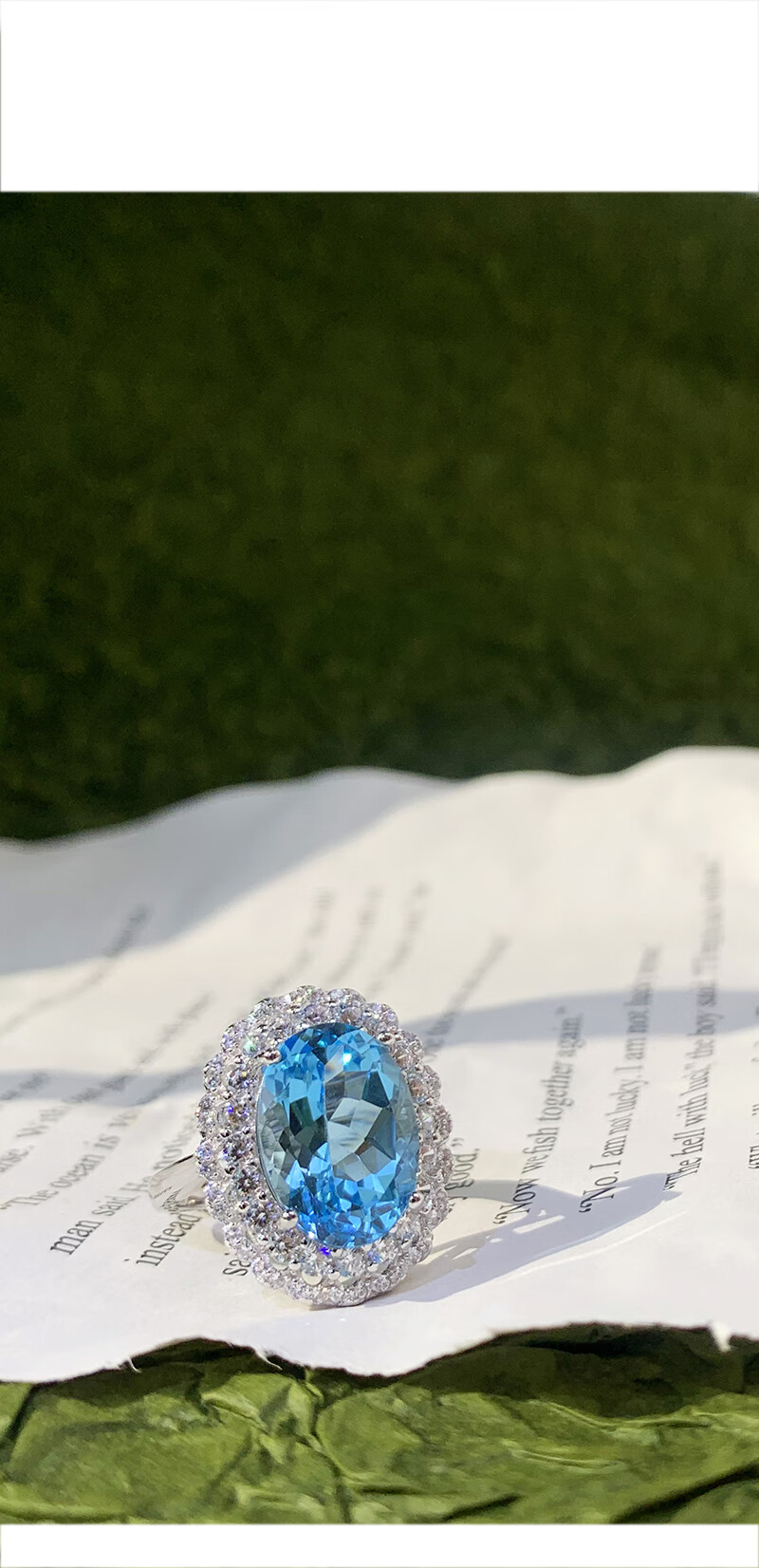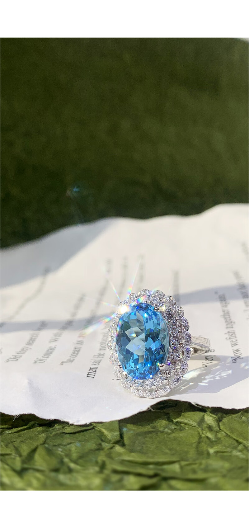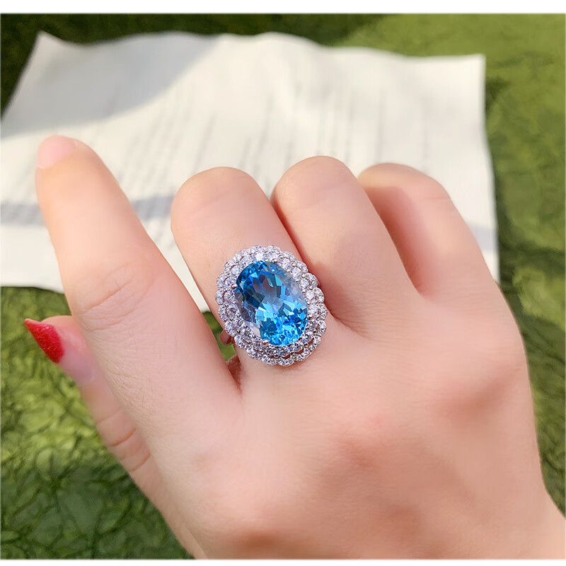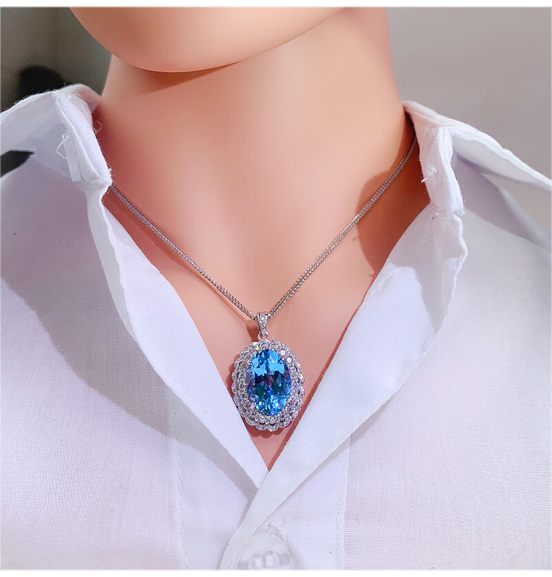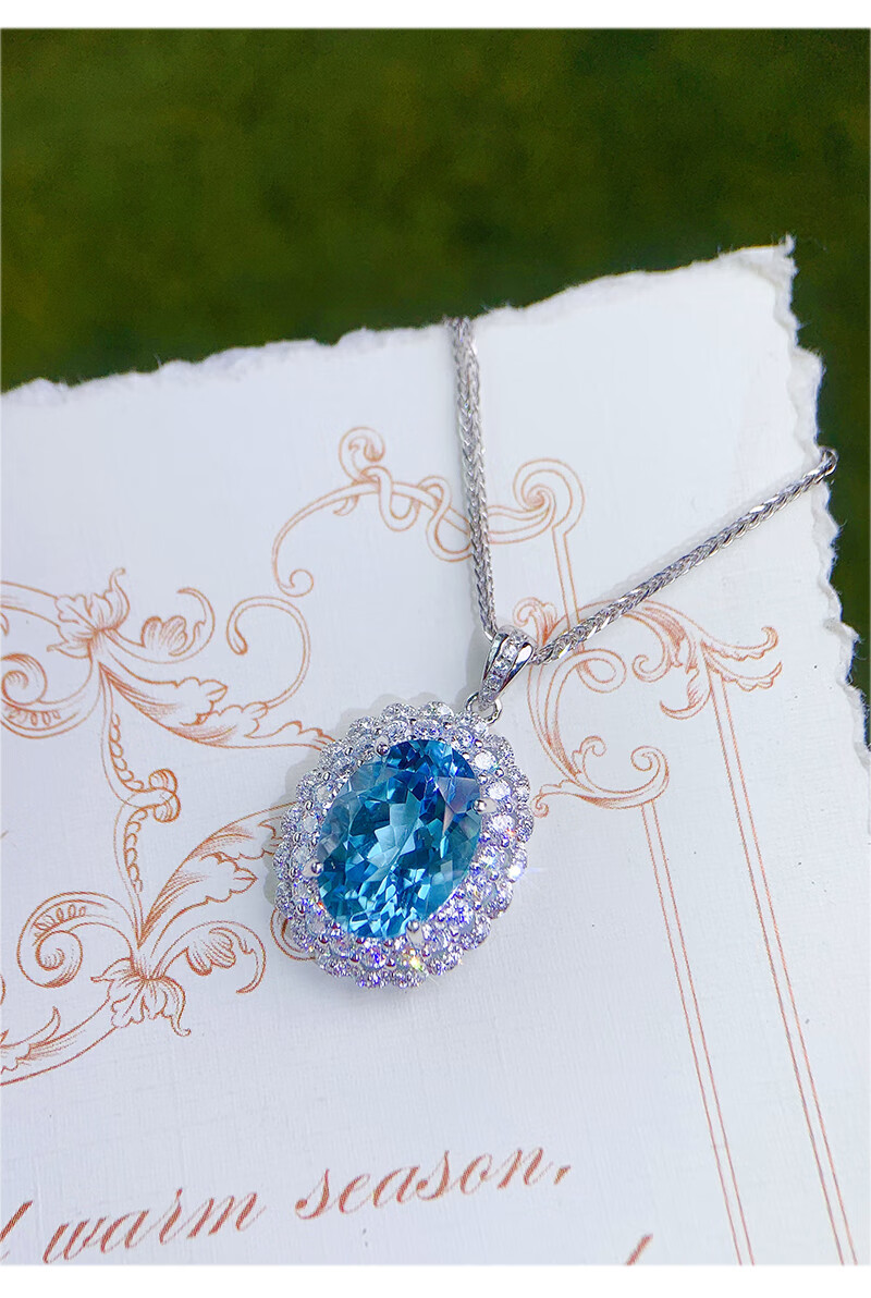 Gepan 9 carat natural topaz set S925 silver pigeon egg ring luxury blue gem pendant women's necklace set (ring + necklace)