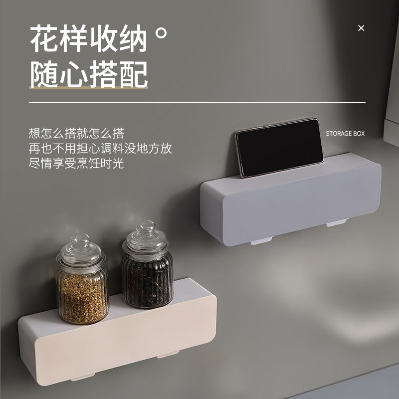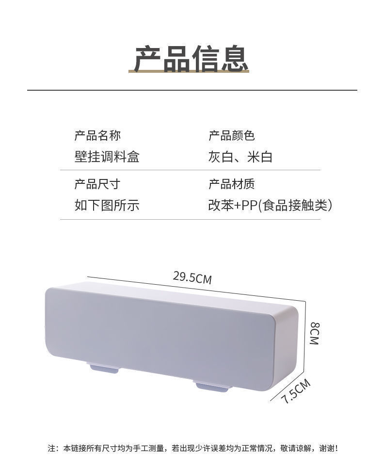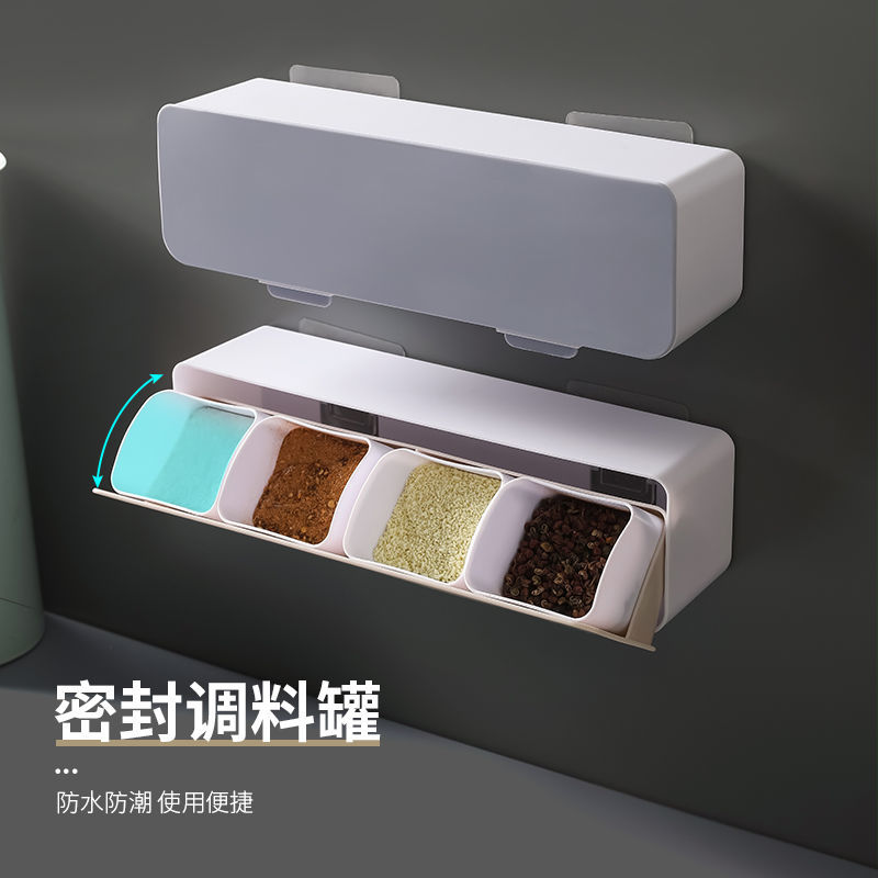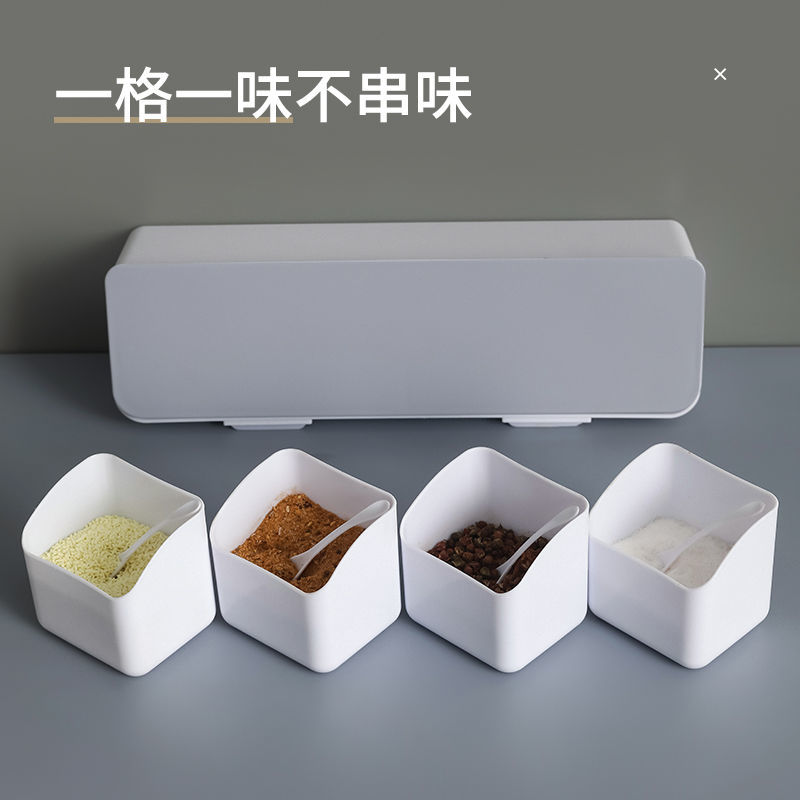 Jidaocook seasoning box set with combined kitchen supplies, salt, sugar, MSG, four-compartment storage body, multi-compartment seasoning jar, second generation gray wall hanging model (with spoon)