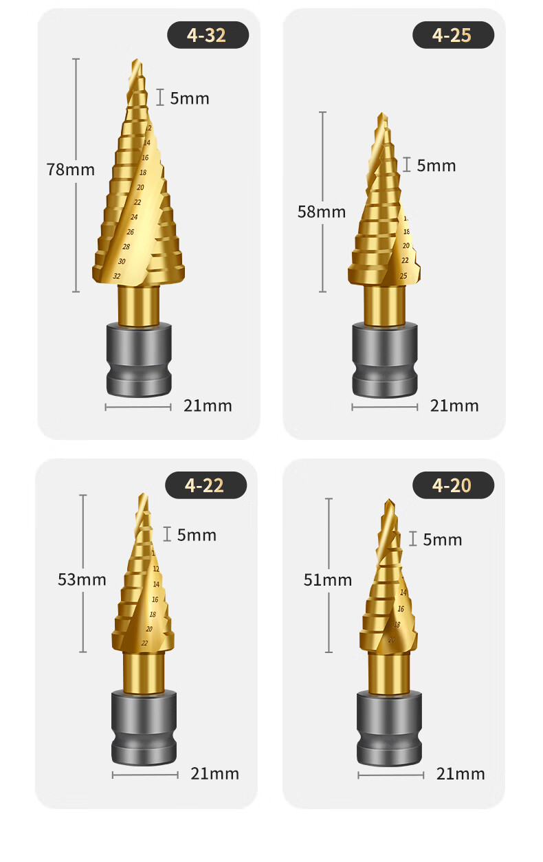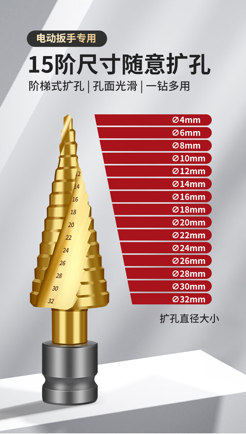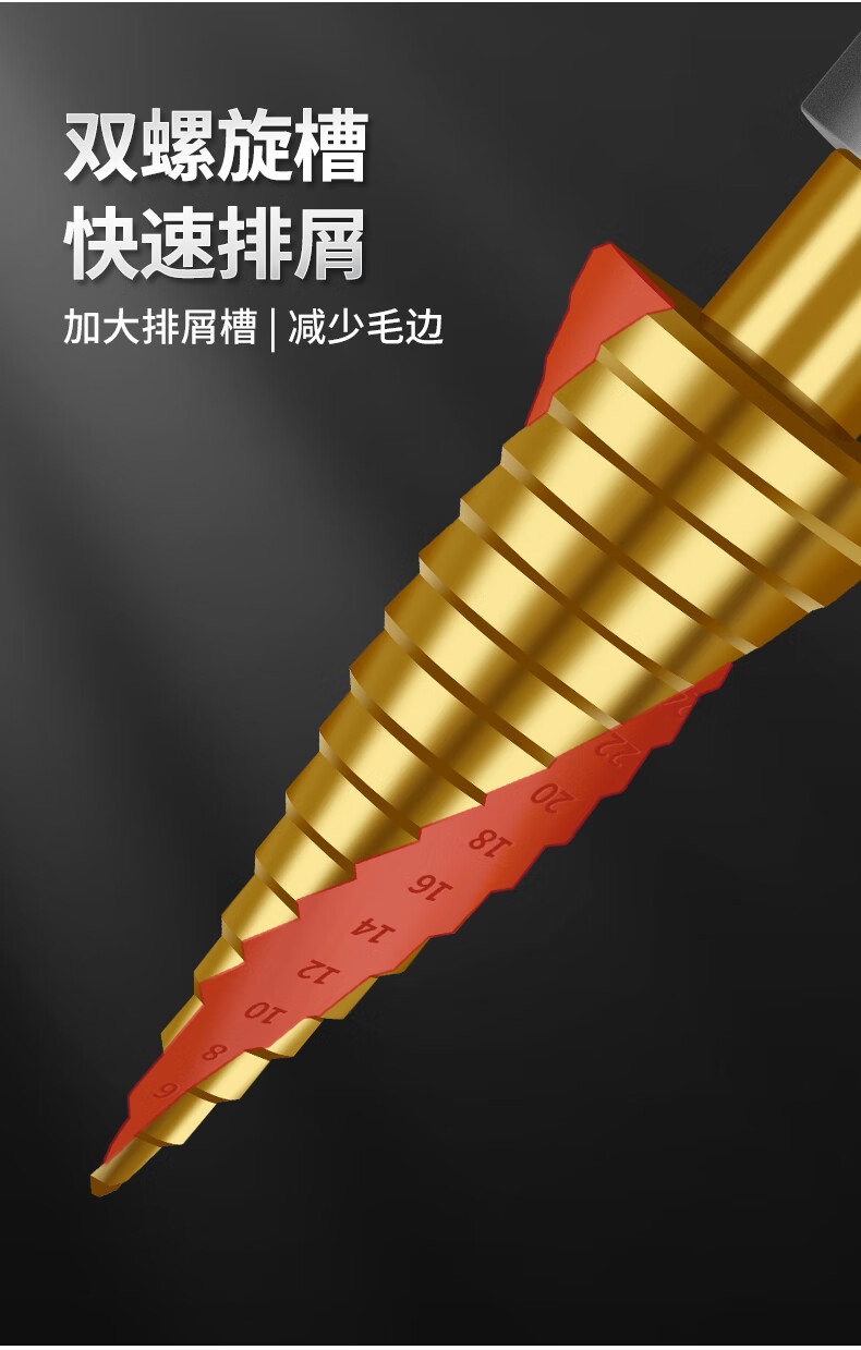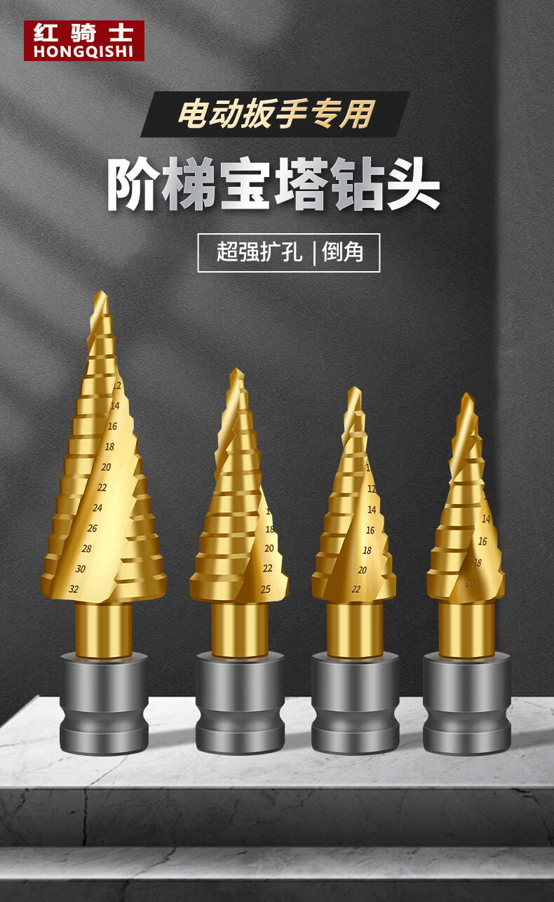 Red Knight Pagoda Drill Electric Wrench Special Metal Woodworking Aluminum Alloy Multifunctional Hole Expander Electric Wrench Step Drill 4-22mm Spiral Groove
