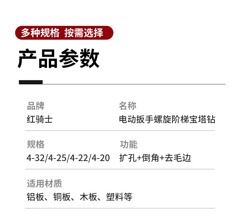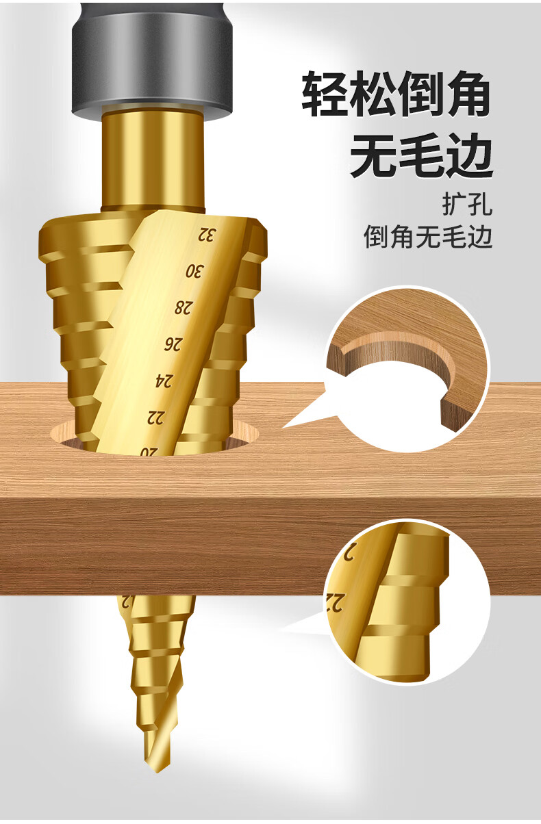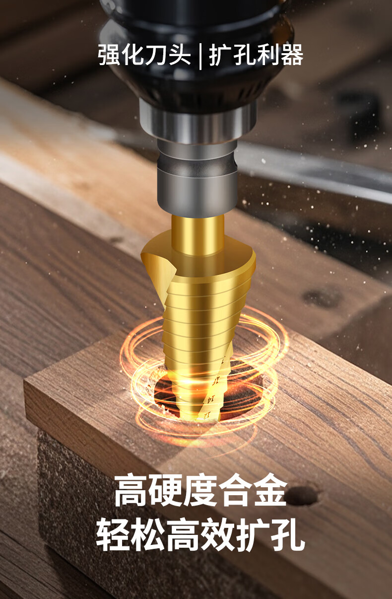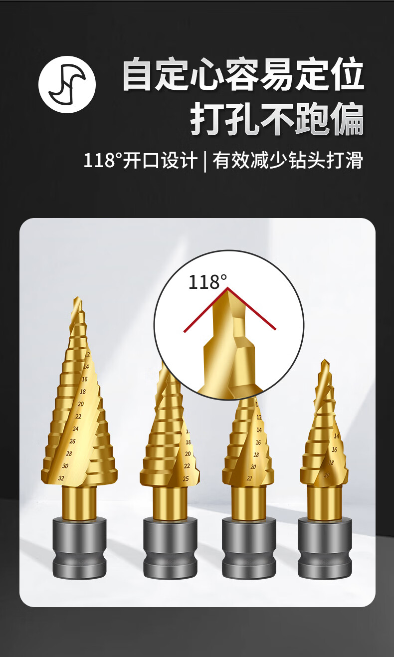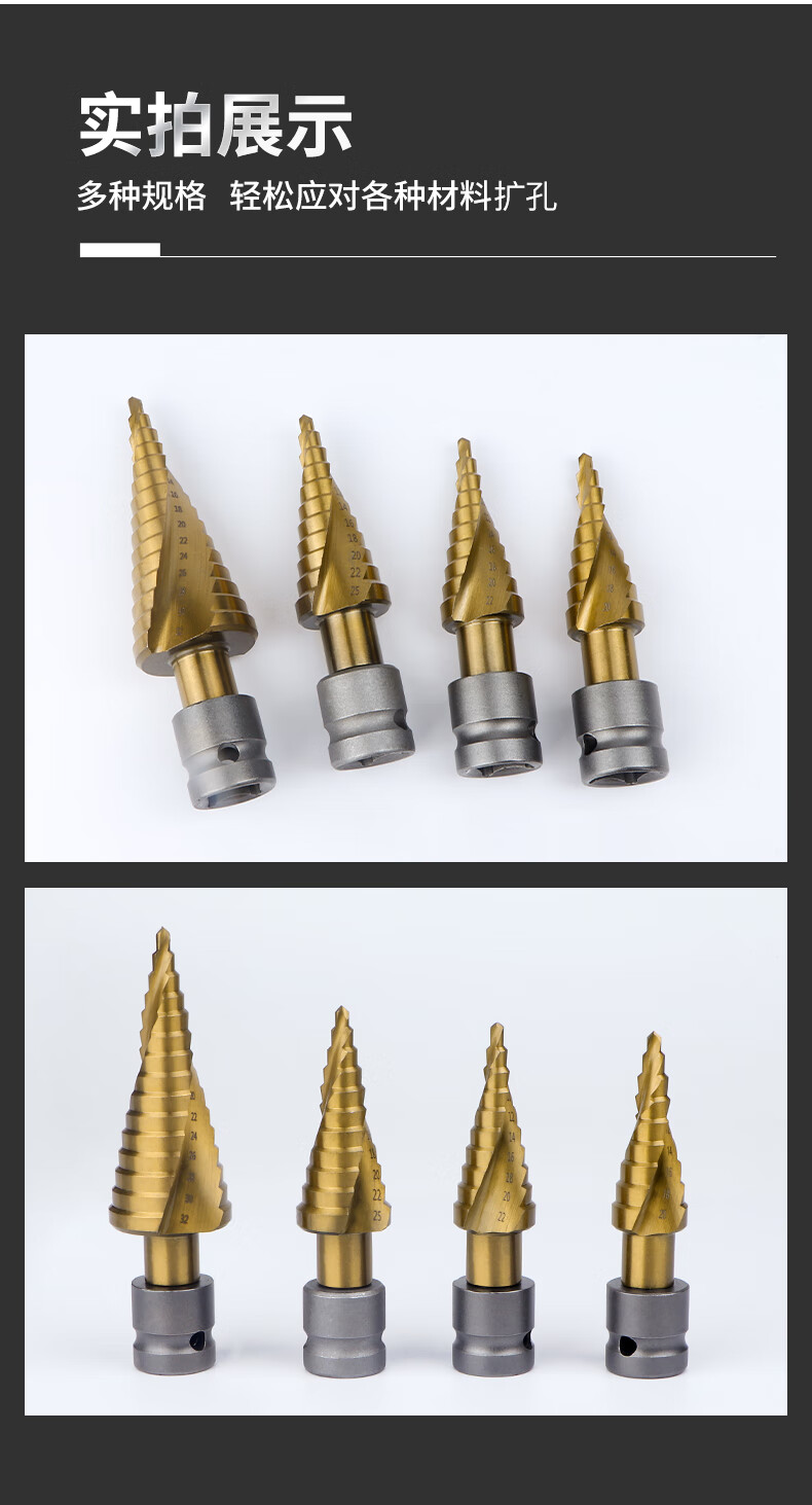 Red Knight Pagoda Drill Electric Wrench Special Metal Woodworking Aluminum Alloy Multifunctional Hole Expander Electric Wrench Step Drill 4-22mm Spiral Groove