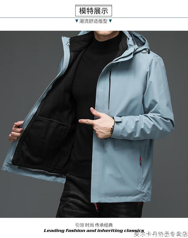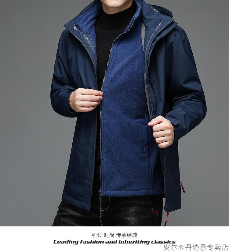 Pierre Cardin Jacket Men's Three-in-One Outdoor Autumn and Winter Thickened Three-Wind Jacket Multi-Wear Jacket Casual Sports Jacket N2251 Navy XL (Recommended 135-150 Jin Jin equals 0.5 kg)
