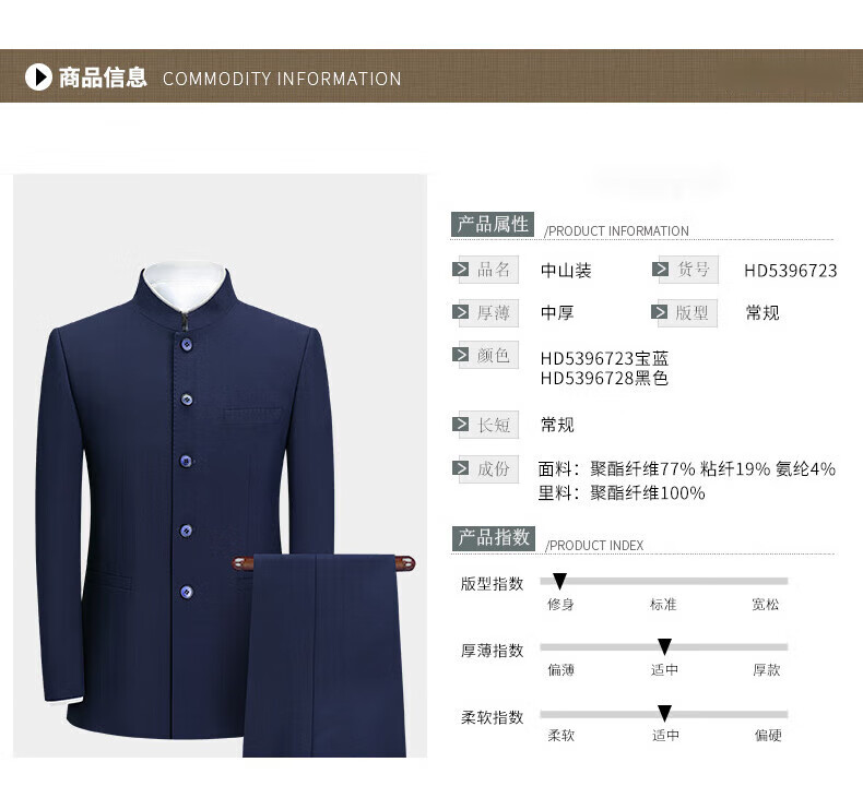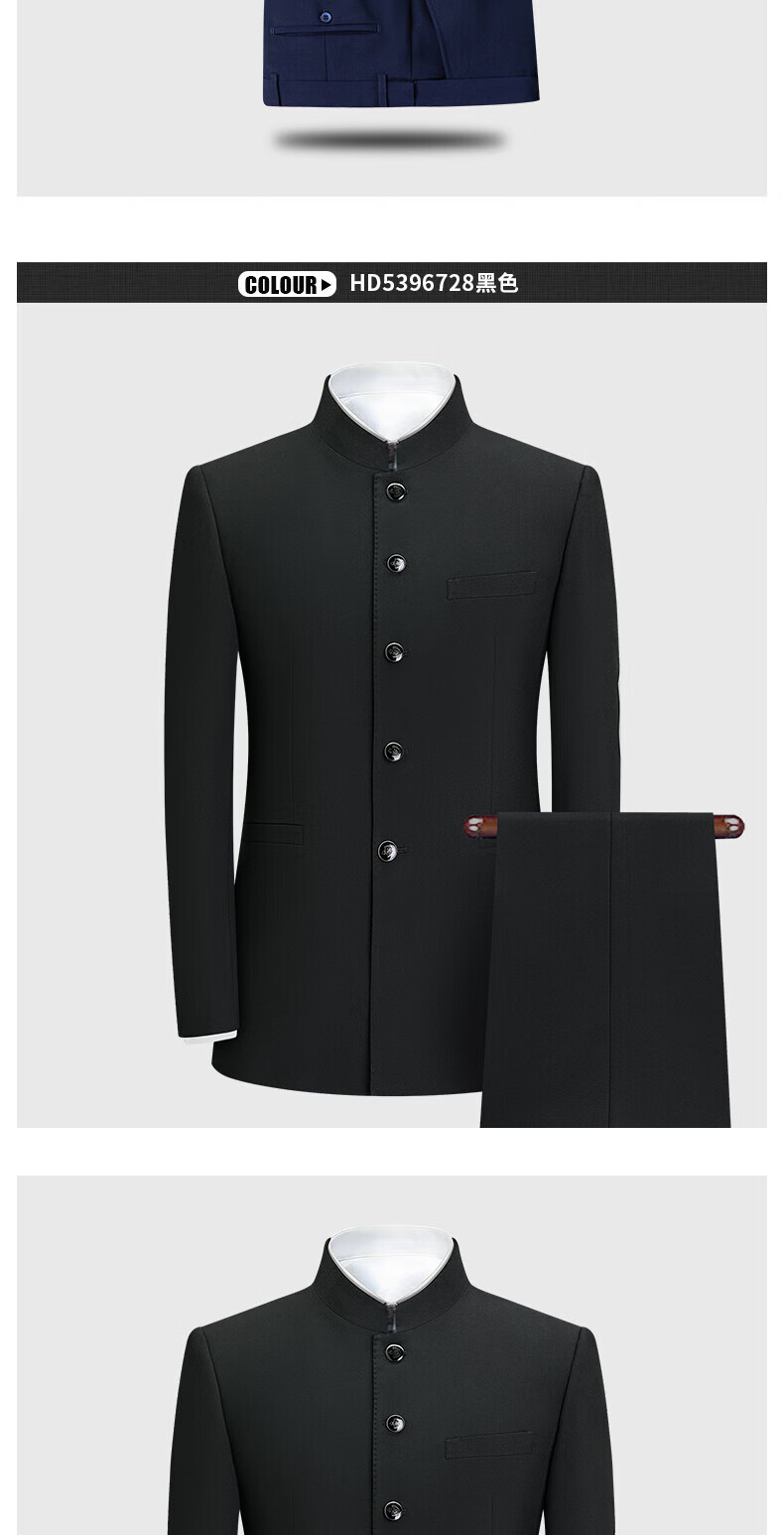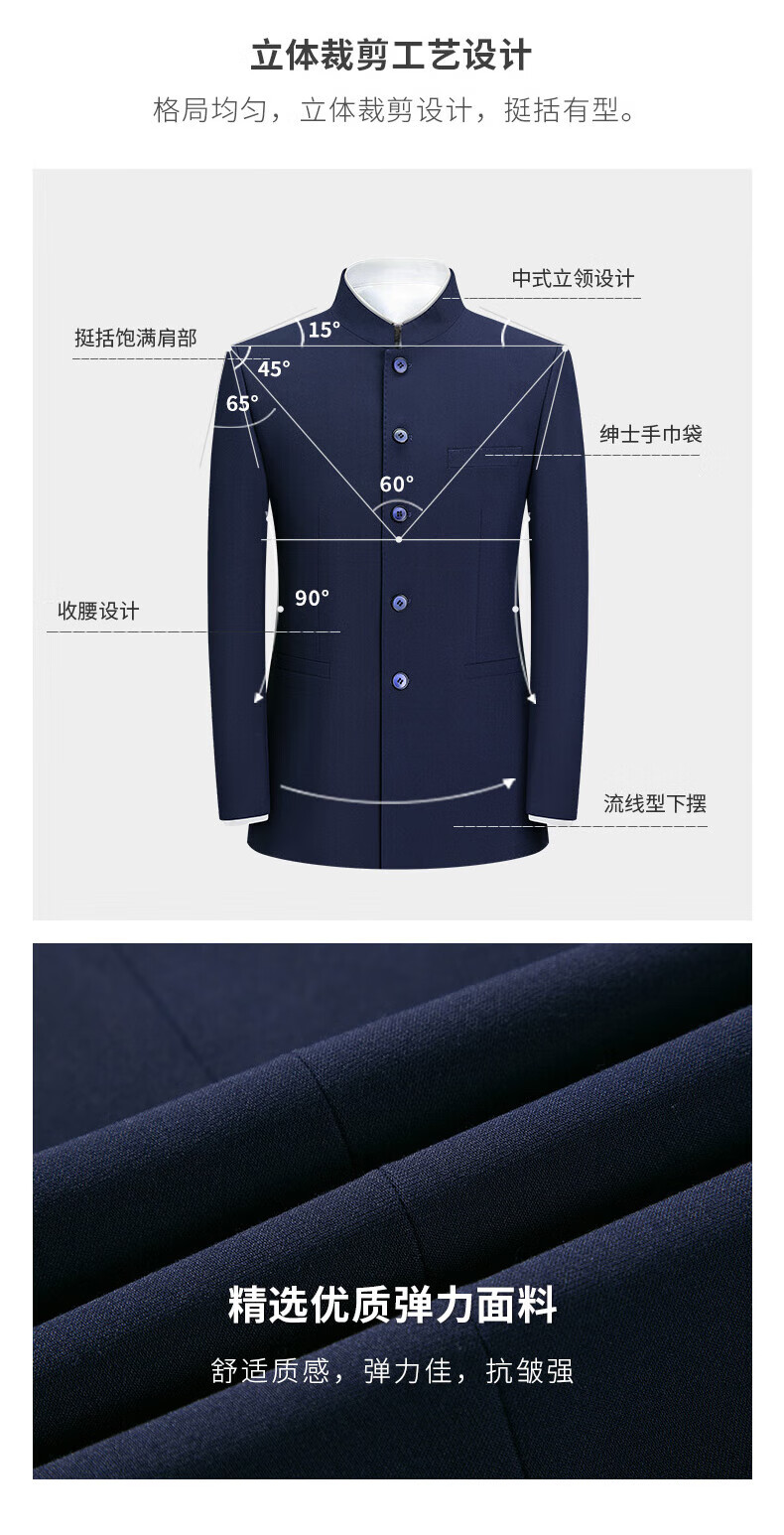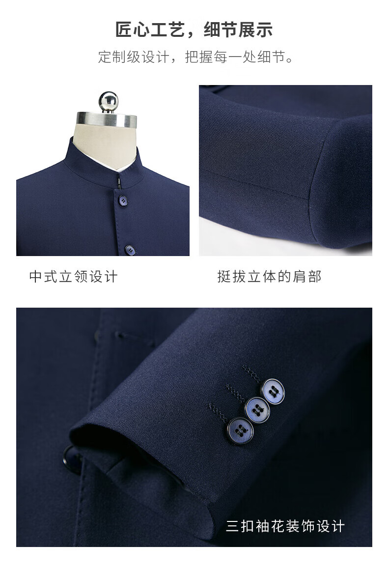 Luo Meng Men's Chinese tunic suit for young men, slim-fitting Chinese stand-collar suit, Tang suit, stretch fabric, Chinese style two-piece suit HD5396723 royal blue top + pants 185C