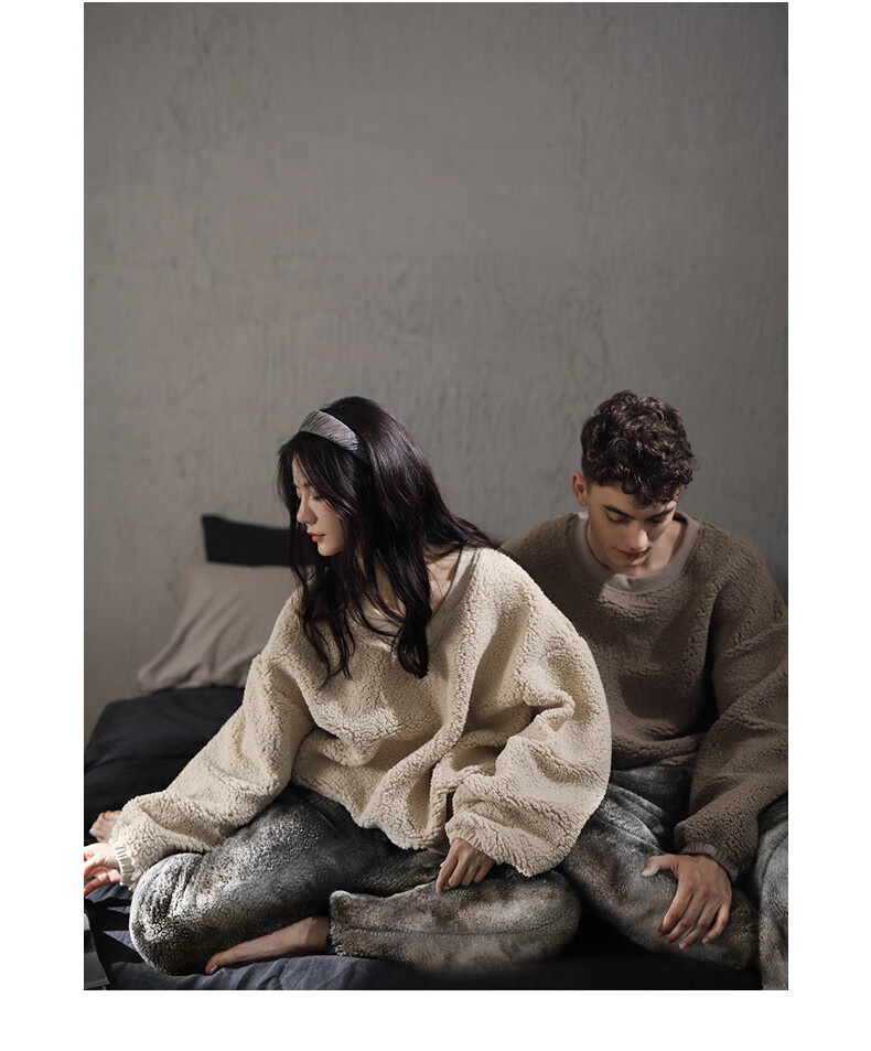Couple pajamas in the same language, autumn and winter thickened coral velvet, warm and velvet, can be worn outside, men's and women's home clothes, winter gifts, women's R1528 M 160 women