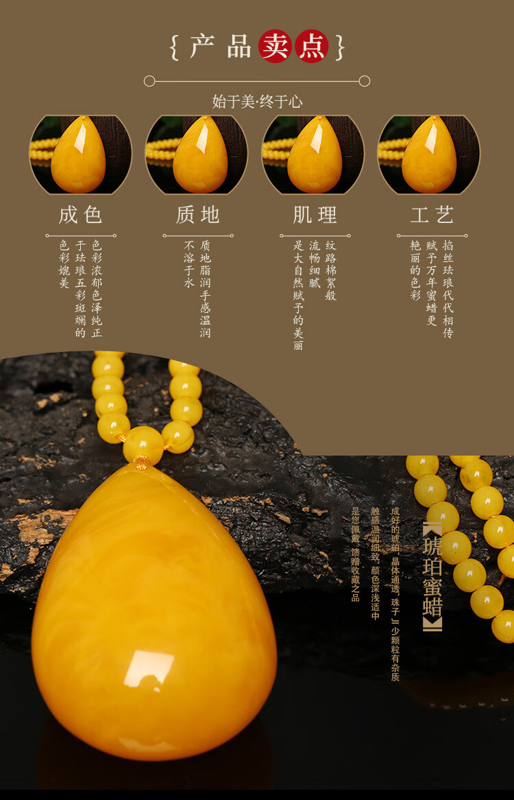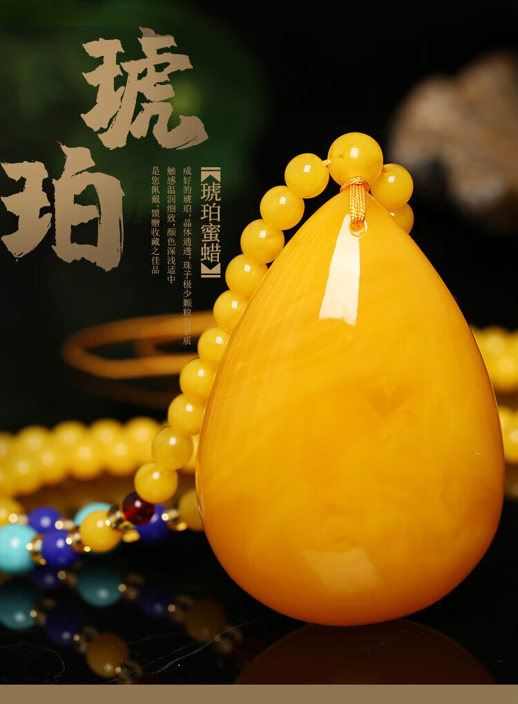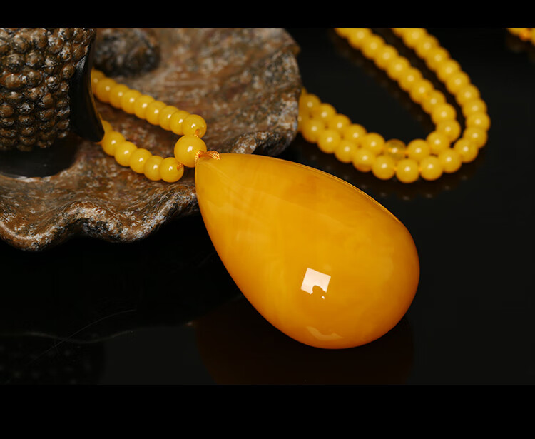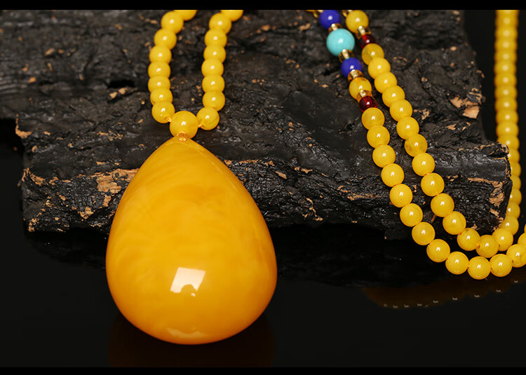 Autumn Marks Chicken Fat Yellow Beeswax Water Drop Pendant Necklace for Men and Women Same Style Natural Raw Stone Amber Old Wax Sweater Chain Pendant Chicken Fat Yellow Water Drop
