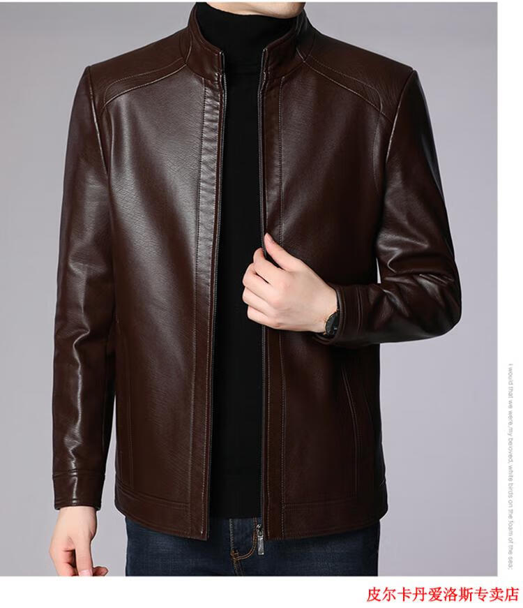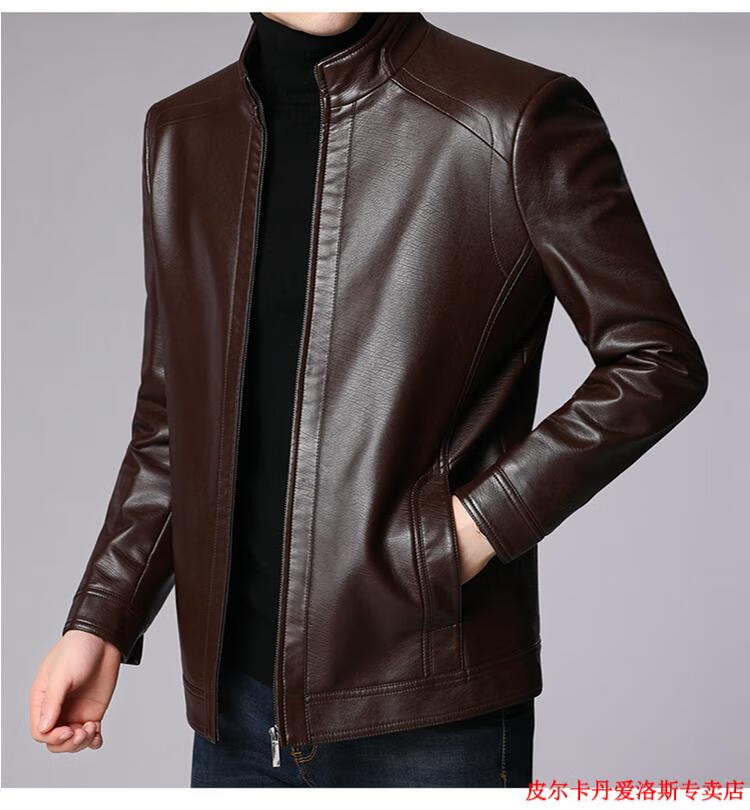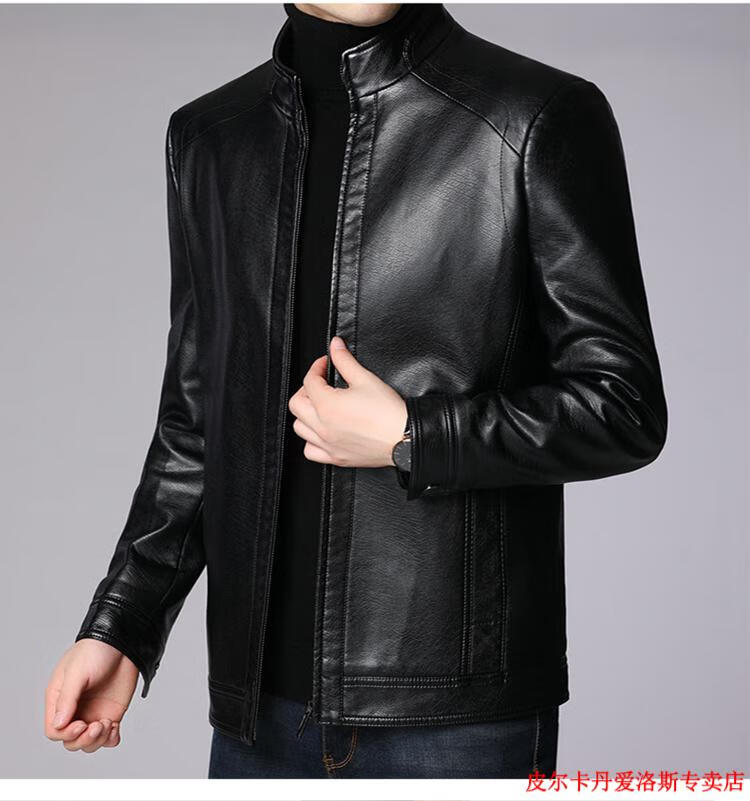 Pierre Cardin high-end sheepskin genuine soft leather jacket men's spring and autumn thickened velvet middle-aged leather jacket dad's leather jacket 1961 black velvet thickened XL 180 (135-150Jin Jin is equal to 0.5 kg)