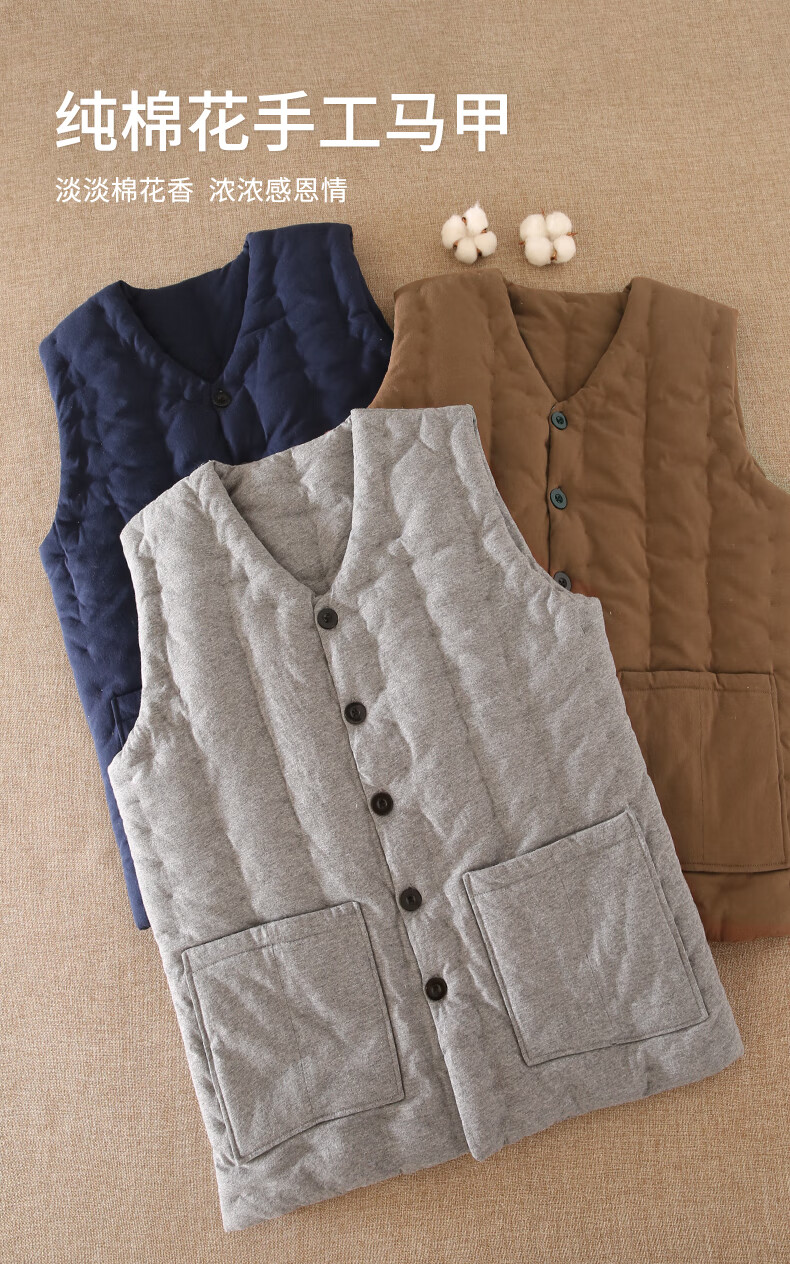 Mukis pure cotton vest for men, grandpa and dad, elders thickened warm vest, middle-aged and elderly cotton vest vest for inner wear in winter, navy blue XXL (recommended 163-175cm/125-140Jin Jin is equal to 0.5kg)
