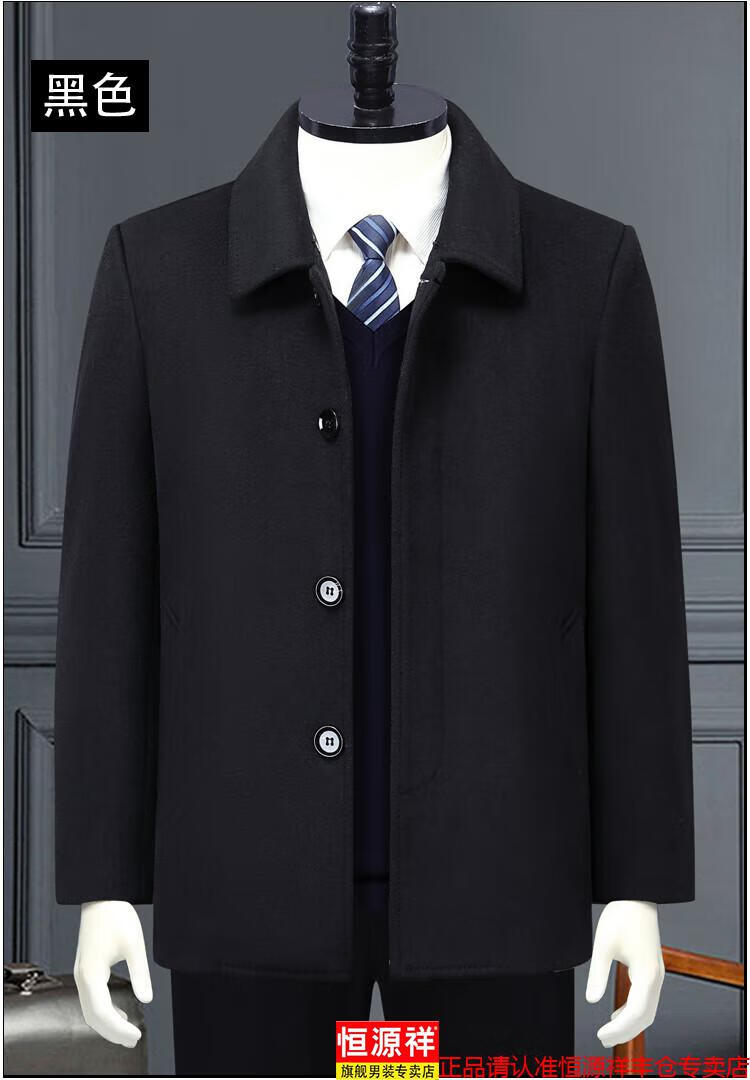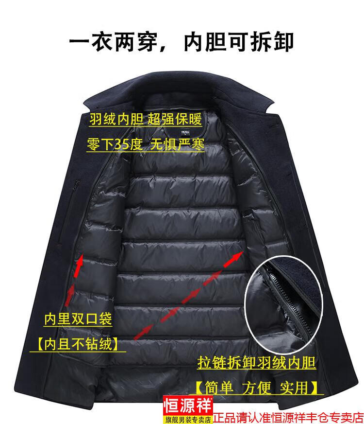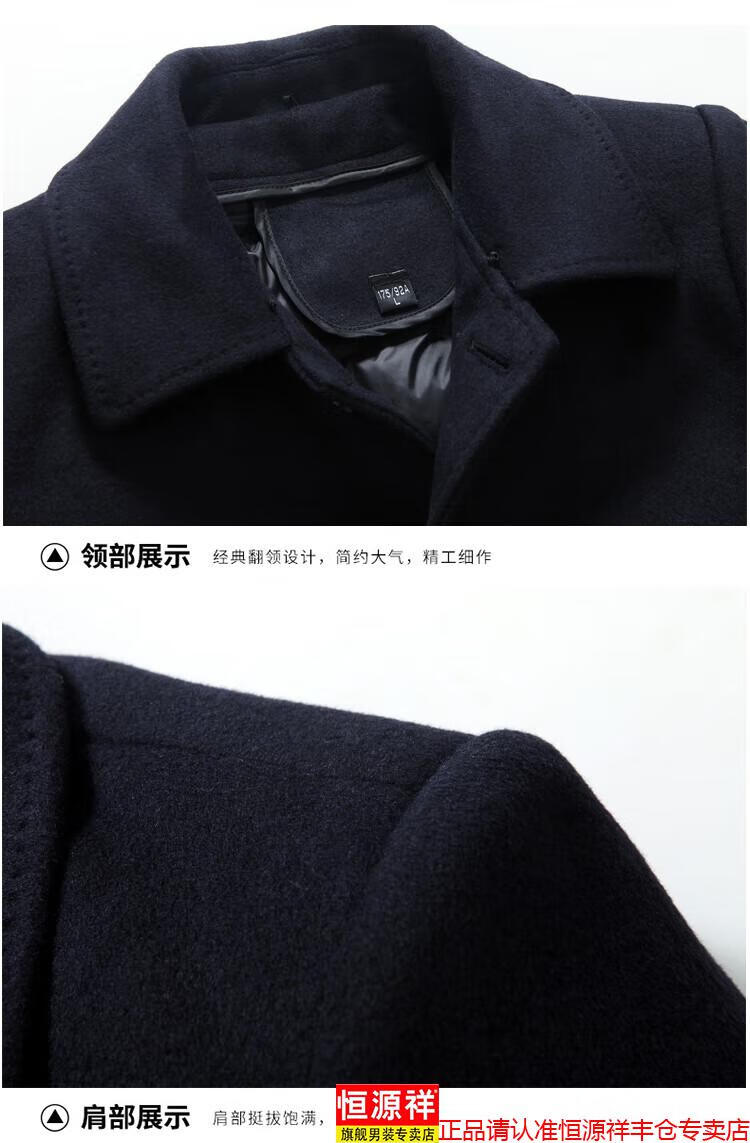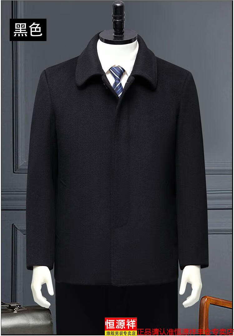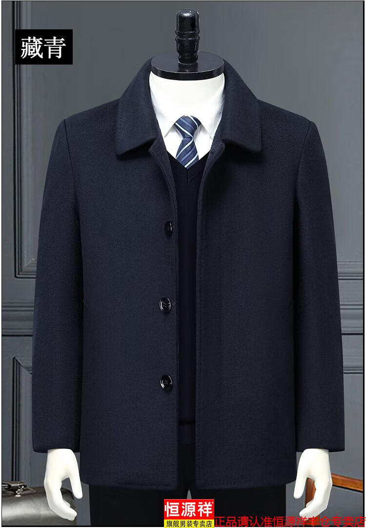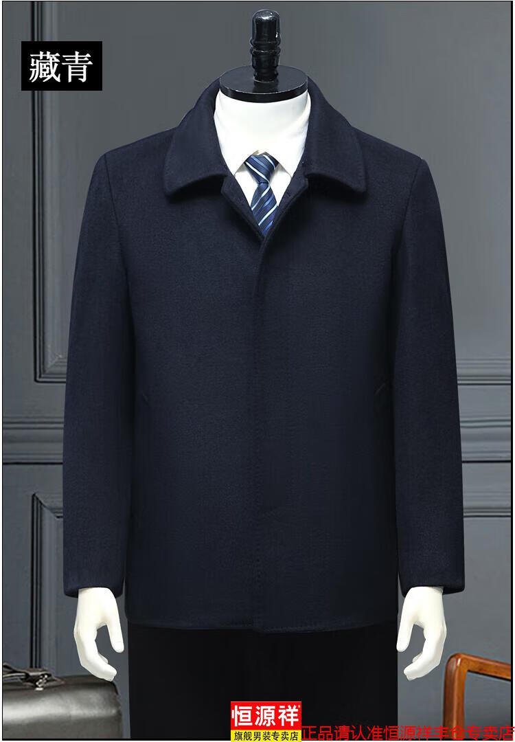 Hengyuanxiang middle-aged and elderly men's cashmere coat winter thickening dad's short woolen windbreaker jacket men's versatile new navy/short/removable liner 185/2XL recommended 150-165Jin Jin equals 0.5 kg