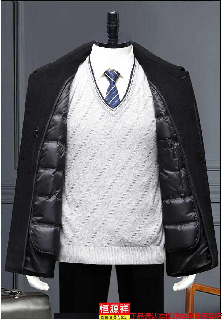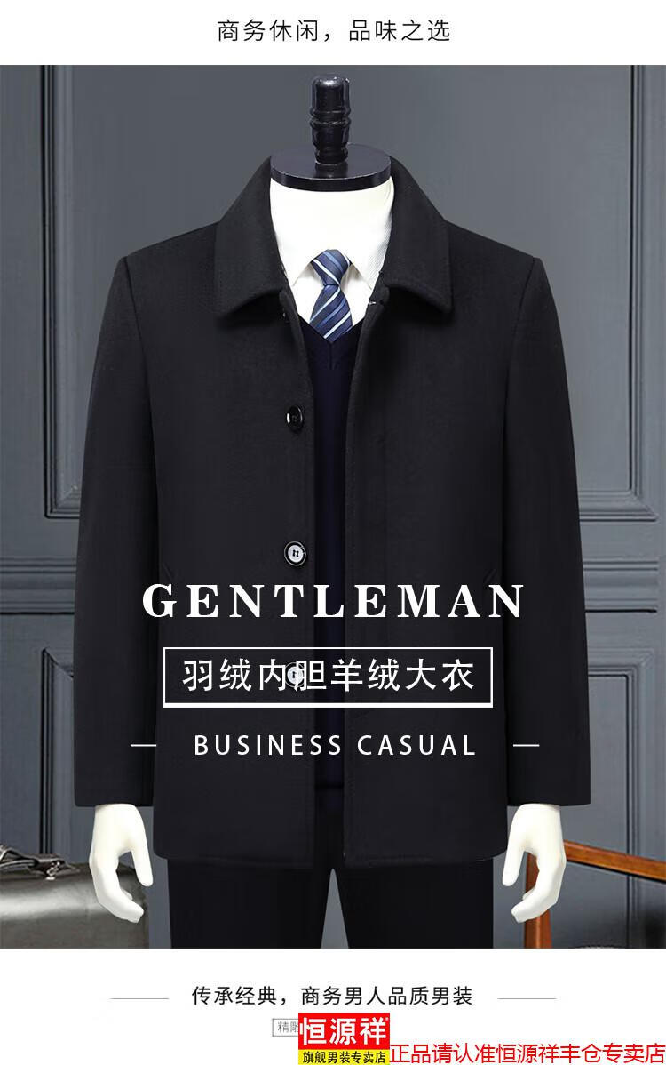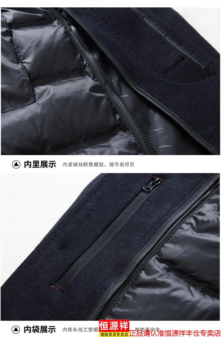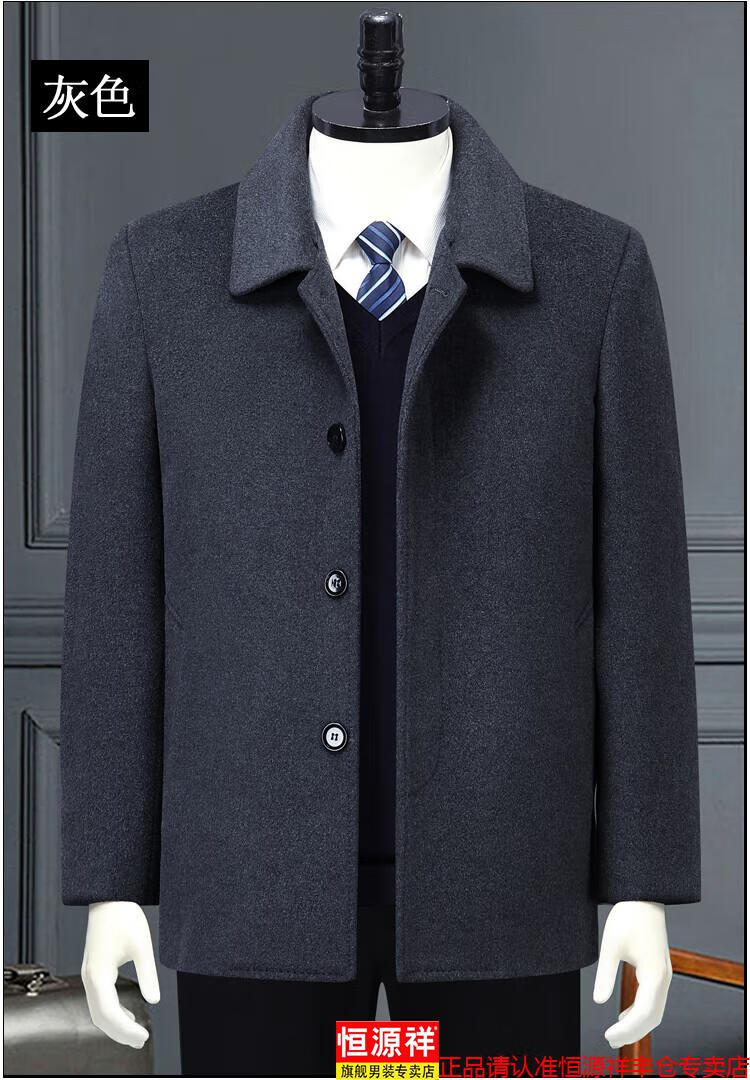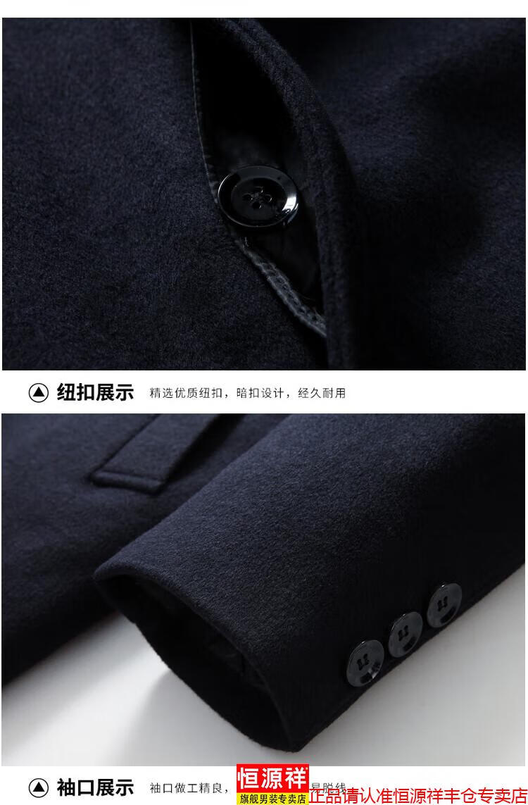 Hengyuanxiang middle-aged and elderly men's cashmere coat winter thickening dad's short woolen windbreaker jacket men's versatile new navy/short/removable liner 185/2XL recommended 150-165Jin Jin equals 0.5 kg