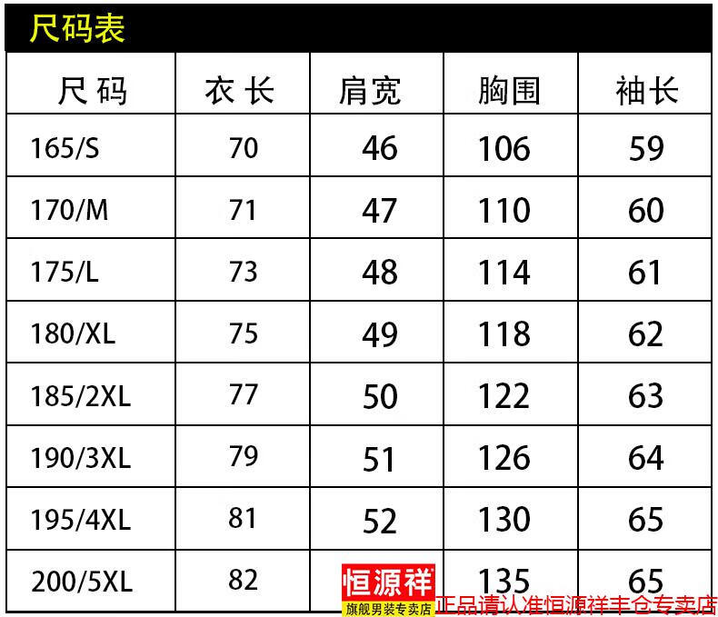 China (cm) 165 / 88-90 170 / 96-98 175 / 108-110 180 / 118-122 185 / 126-130