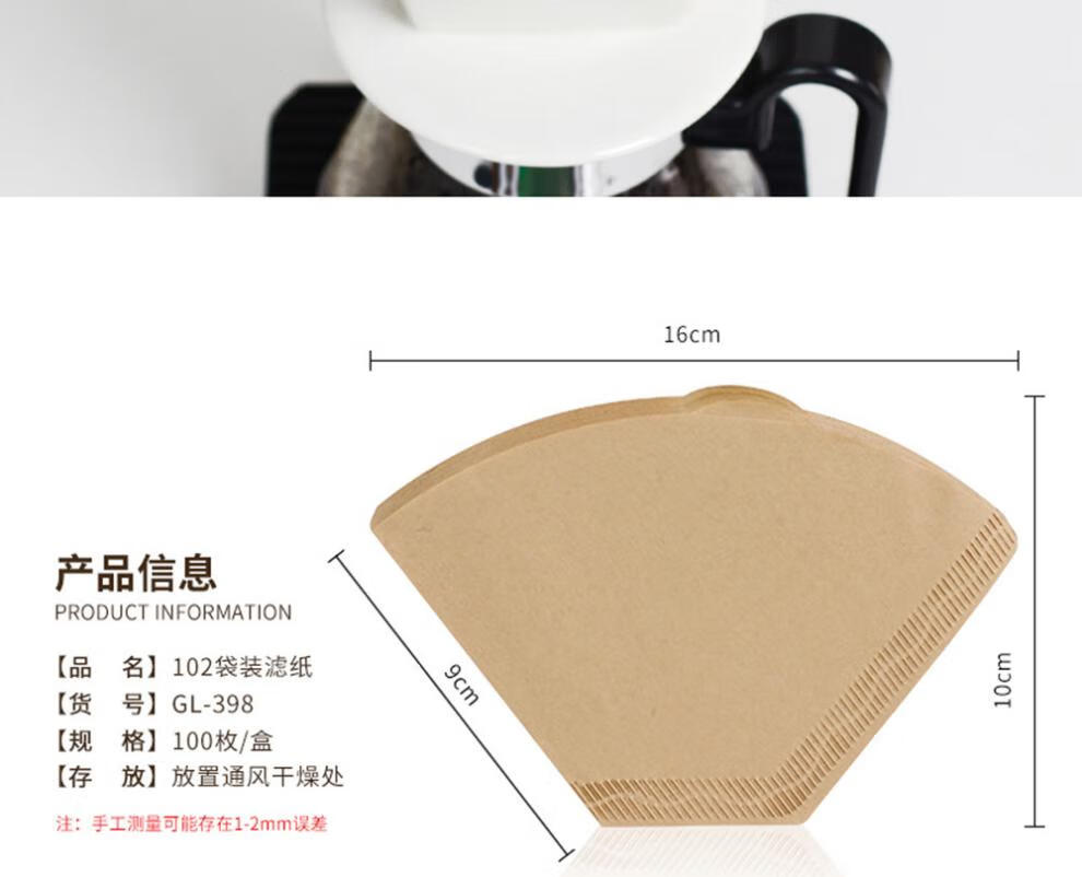 Coffee filter paper fan-shaped coffee filter paper fan-shaped filter paper American drip coffee machine hand-pour filter paper 102 unbleached 100 pieces No. 102 natural color filter paper (transparent bag