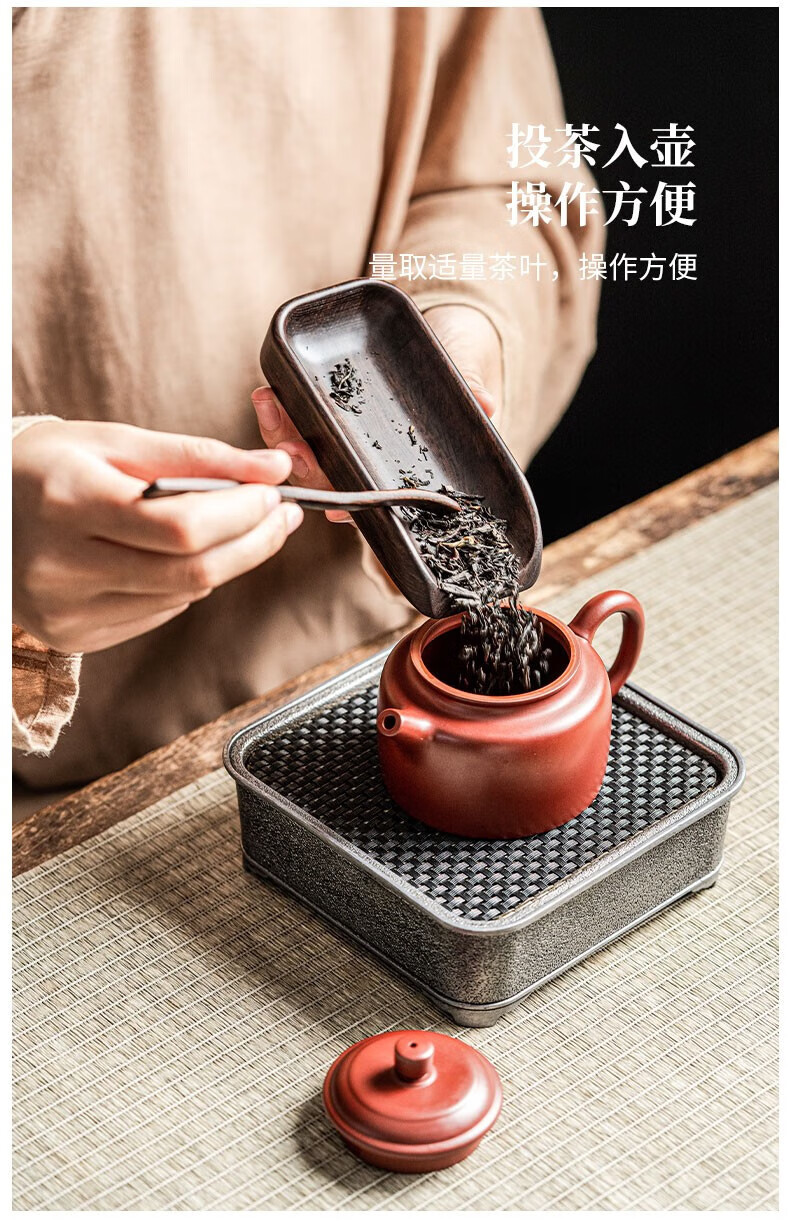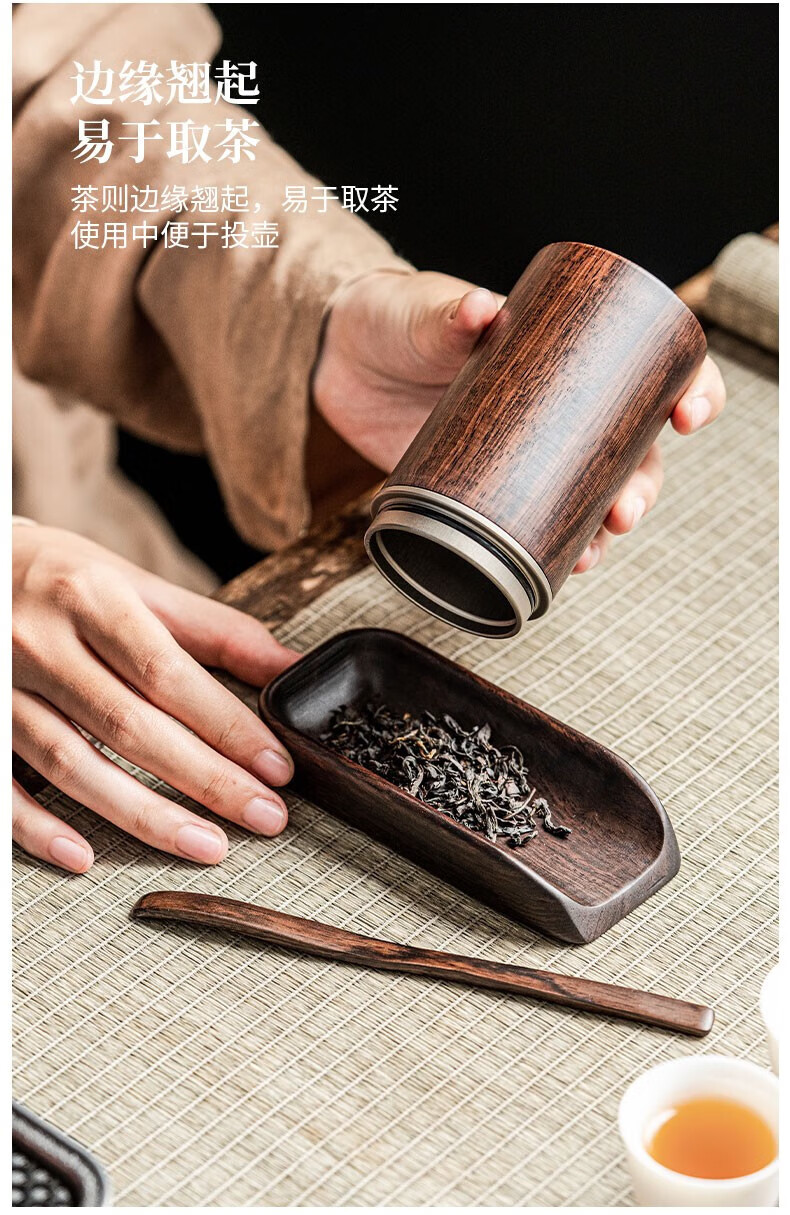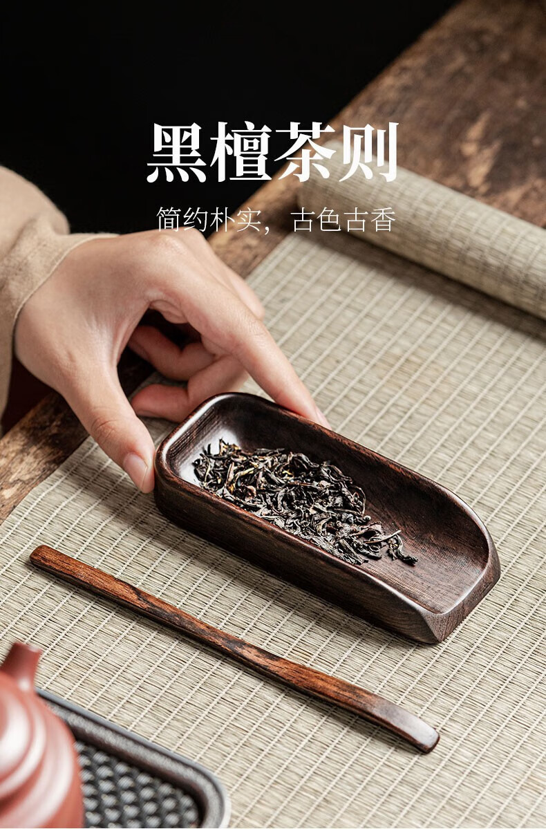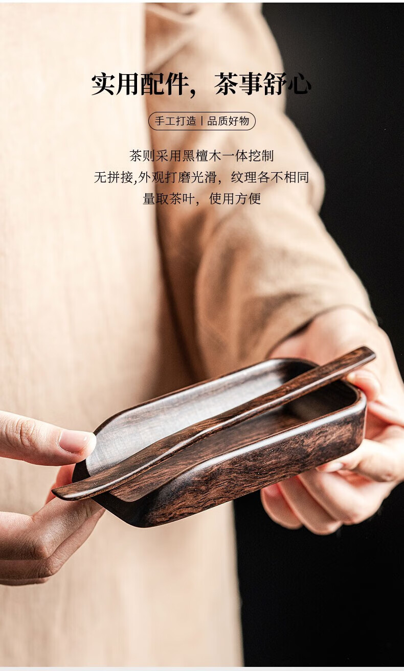 Tang Feng solid wood tea set two-piece new Chinese style retro tea appreciation tea spoon tea divider tea lotus kung fu tea set tea ceremony accessories tea set (long)