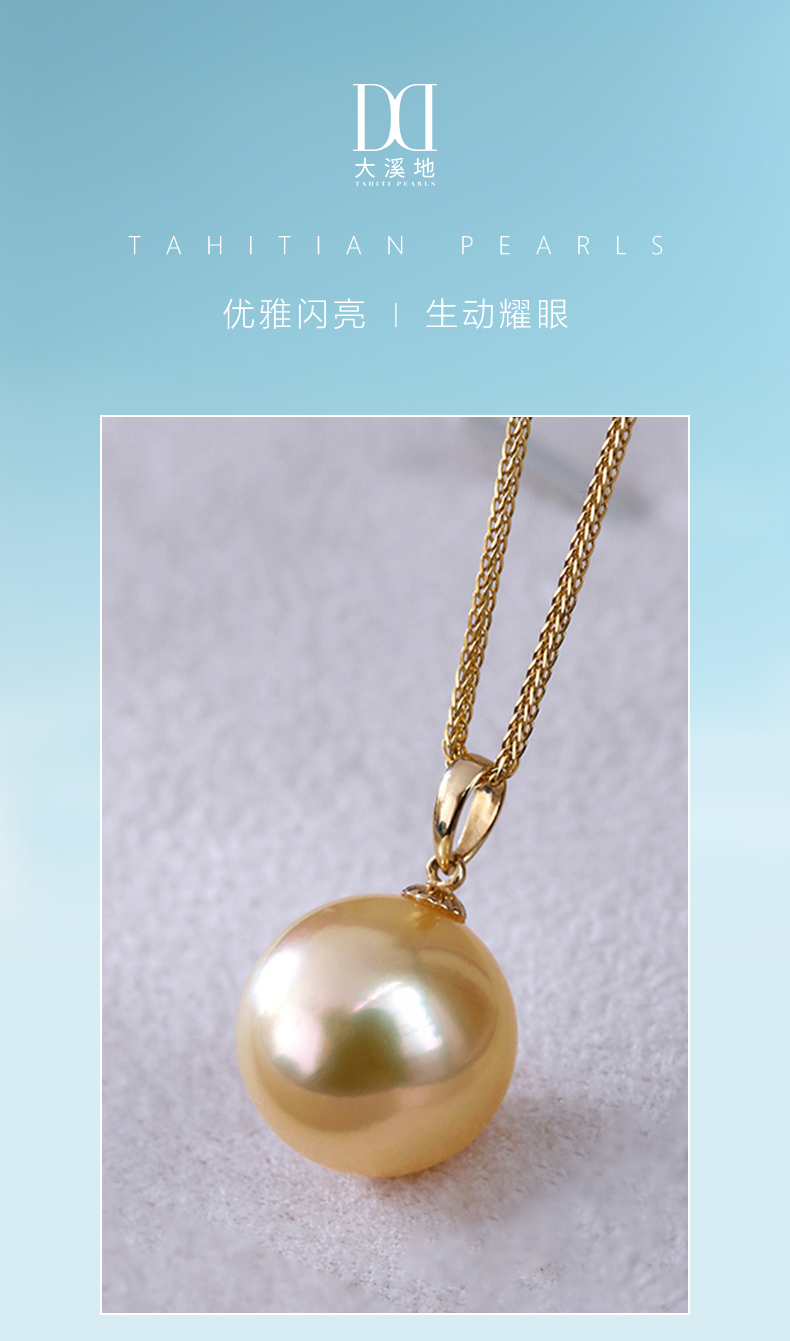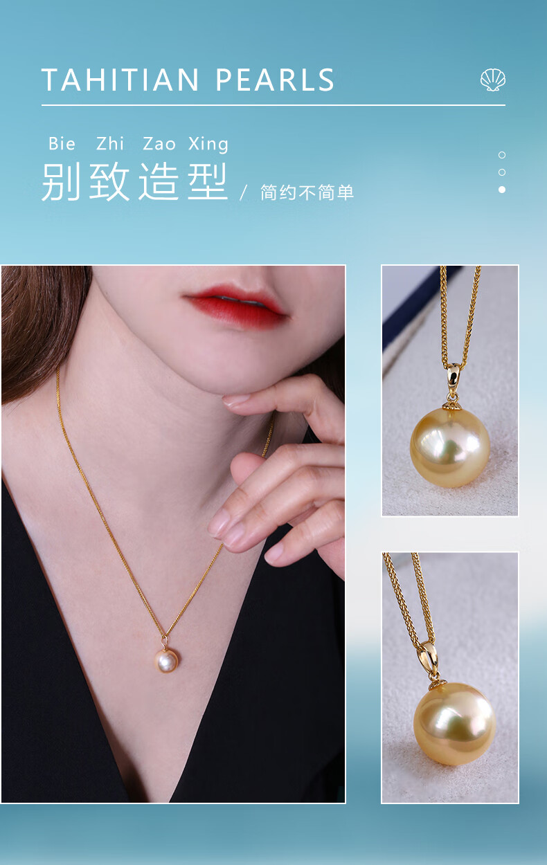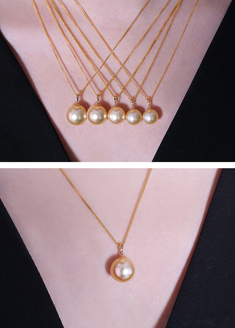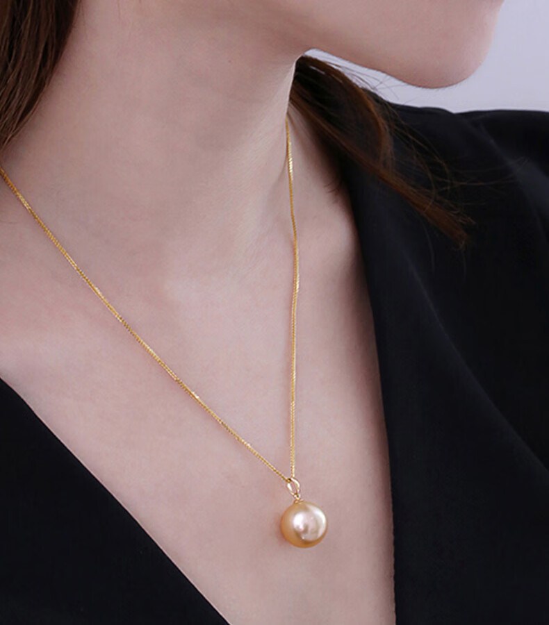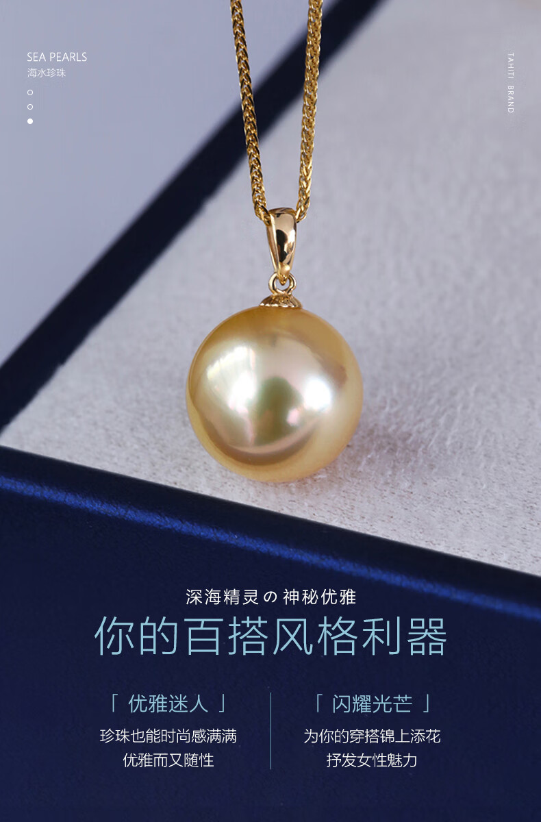 Tahiti 18K gold seawater pearl pendant, round strong light South Sea gold bead necklace, grade A/gold beads 12-13mm +925 silver chain