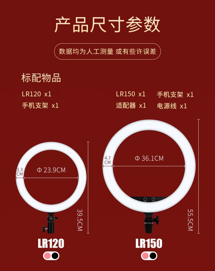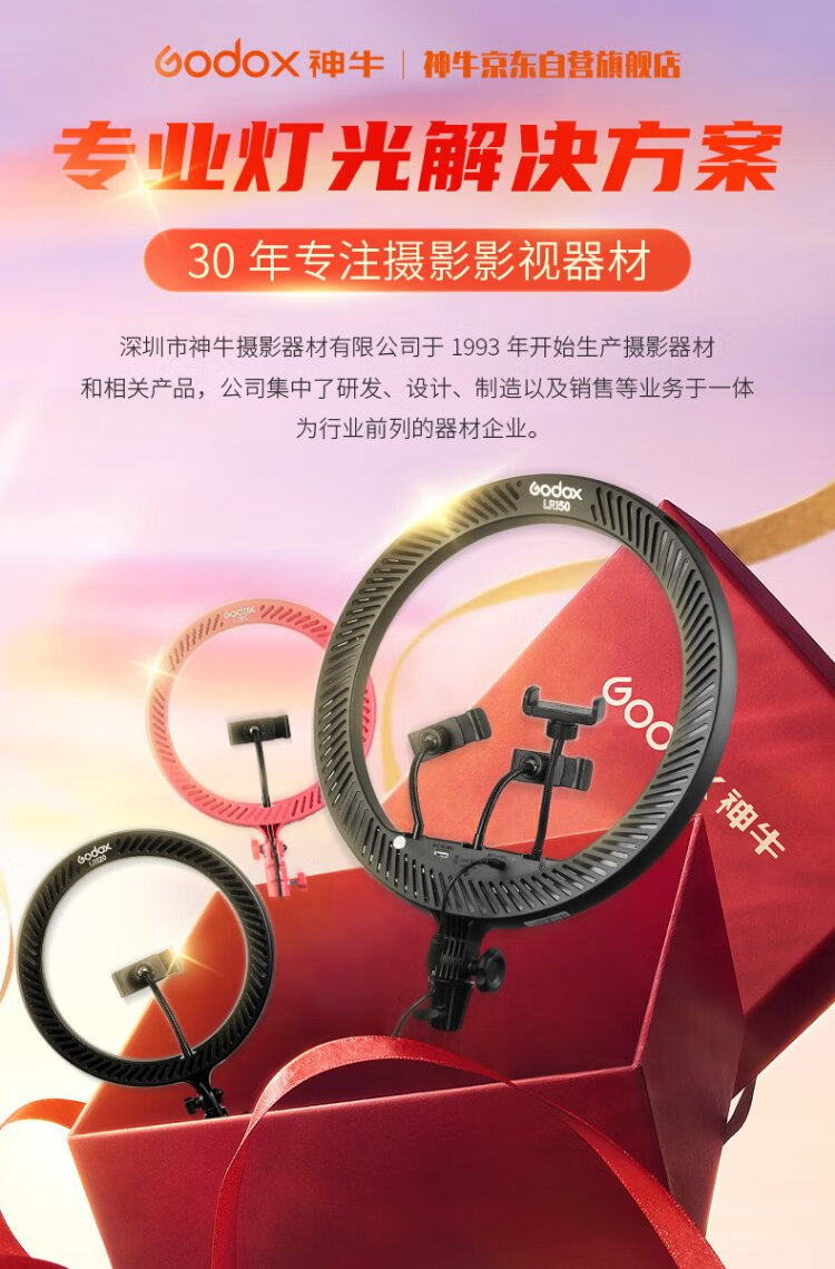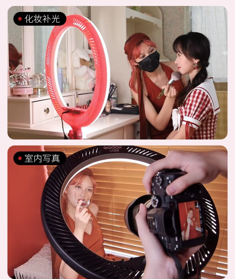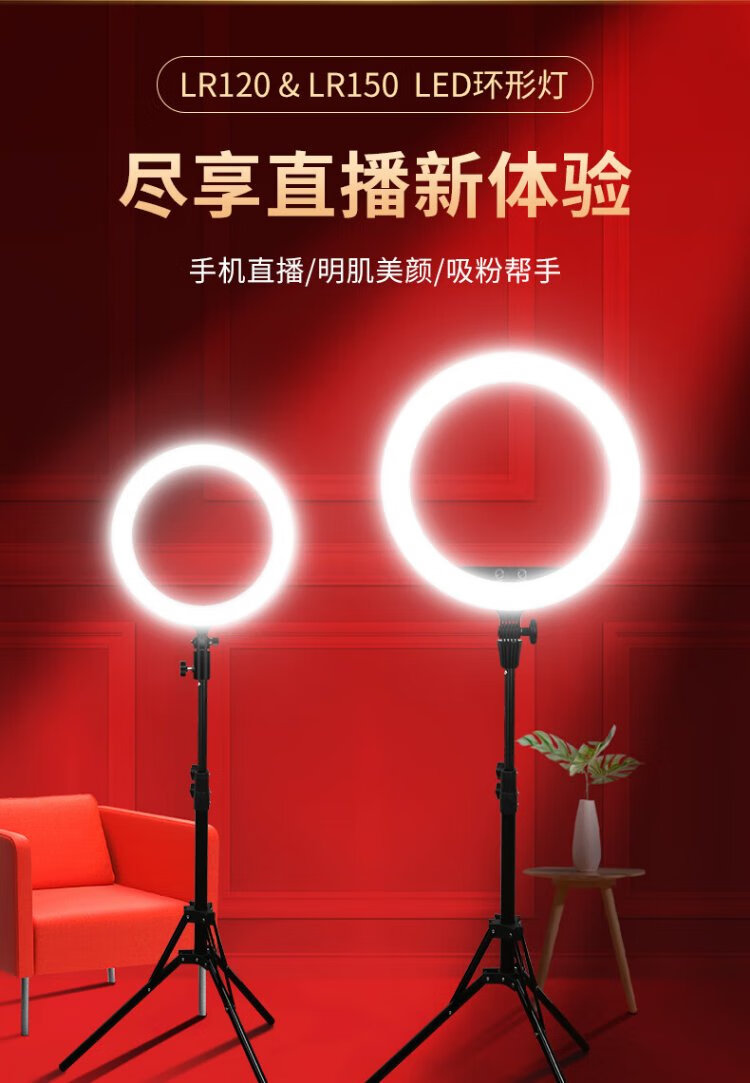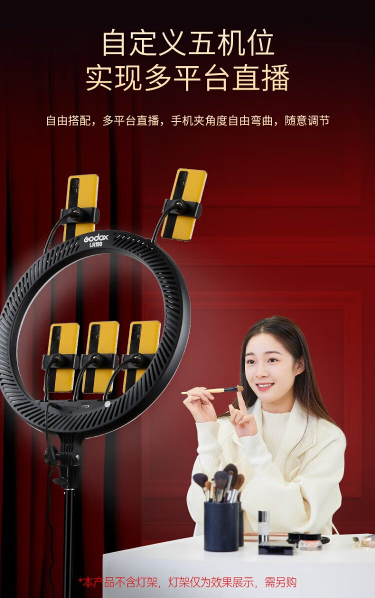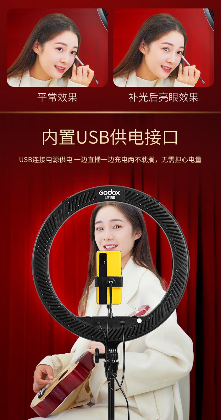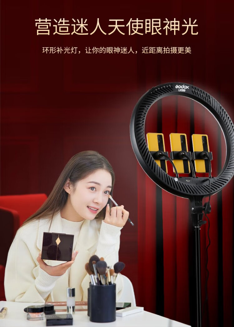 Godox Ring Fill Light Beauty Soft Light LED Outdoor Internet Celebrity Anchor Mobile Live Broadcast Beauty Light Cosmetic Lamp LR150 Black Requires purchase of separate light stand Official standard configuration