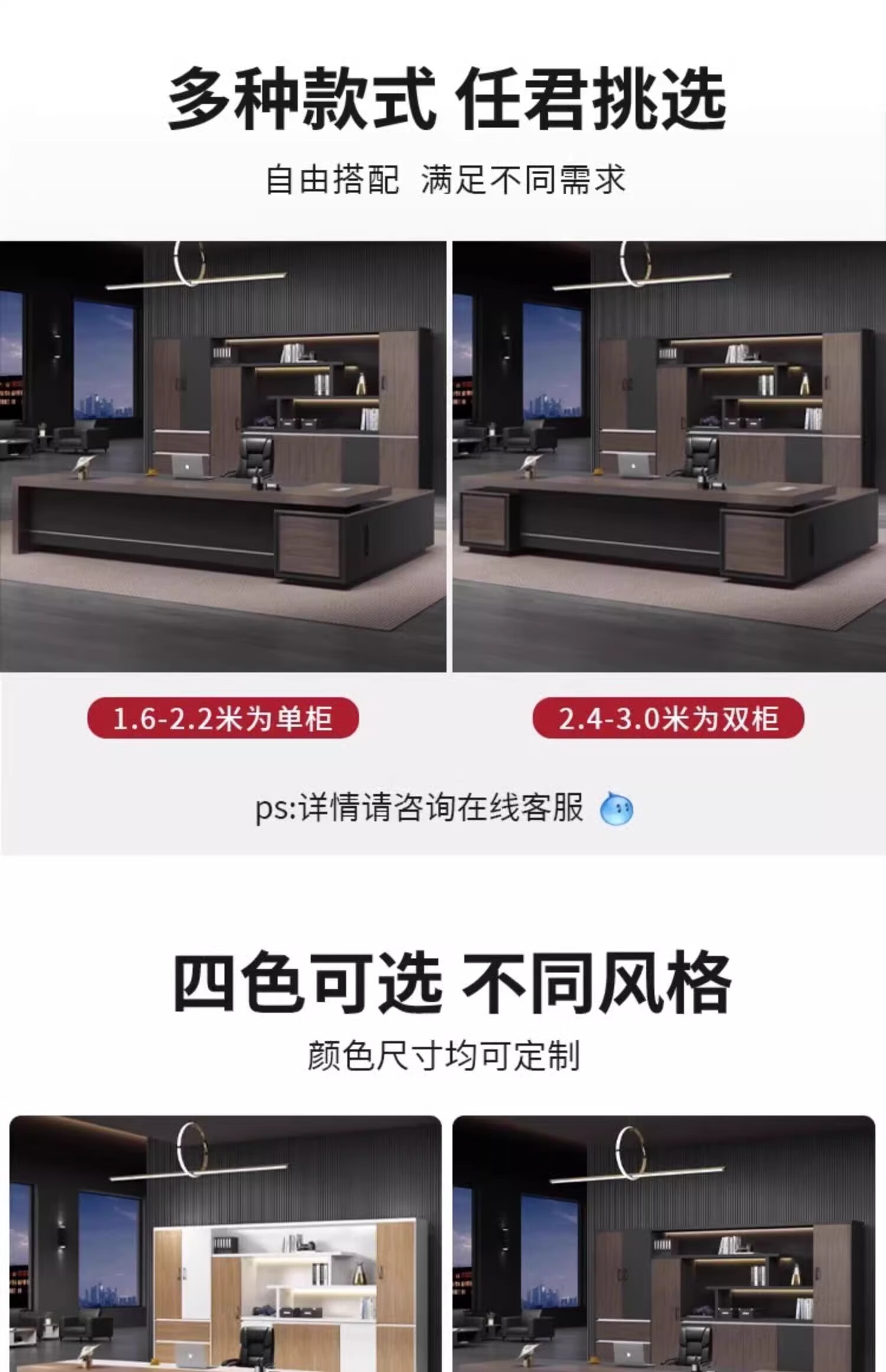 Tiju boss desk and chair desk, simple and modern chairman's office, atmospheric desk, president desk, manager desk, supervisor desk, 2-meter boss desk + single side cabinet, high-end and high quality